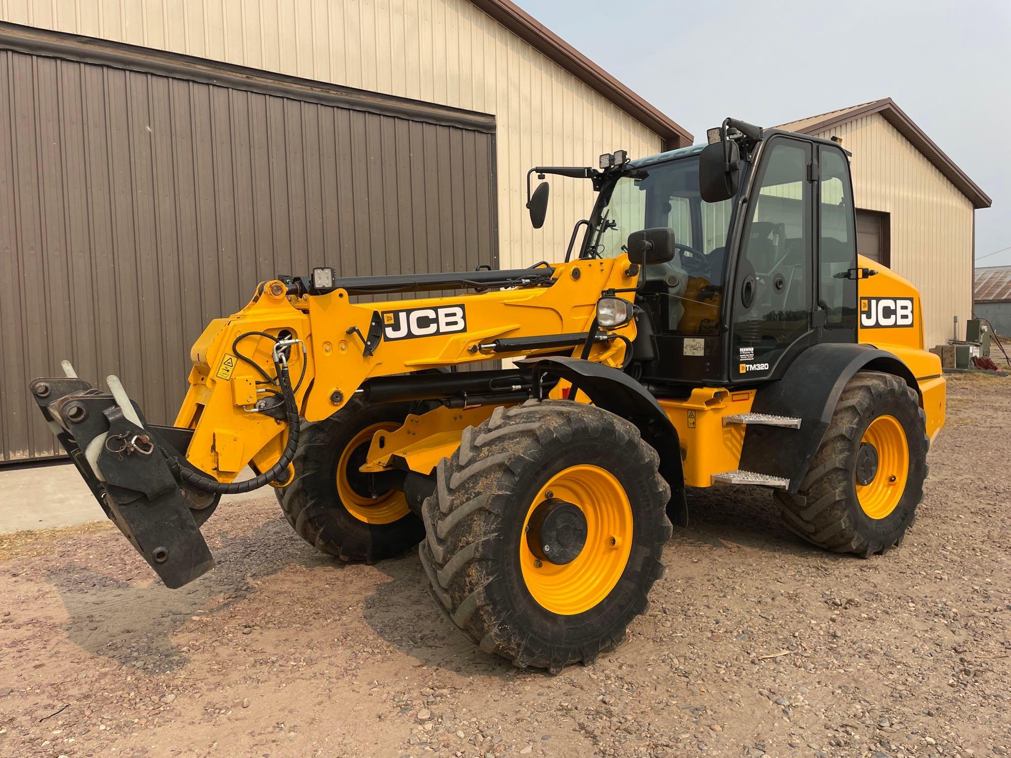 Articulated Telescopic Loader: 2019 JCB TM320 Articulated Telescopic Loader–1 Owner—SN:JCB320TSCK2763987, shows 6,960 actual hours, 6 speed transmission, front fenders, heat/ac, radio, joystick controls, 460/70R24 tires, air ride seat, auxiliary hydraulics, reversing fan
