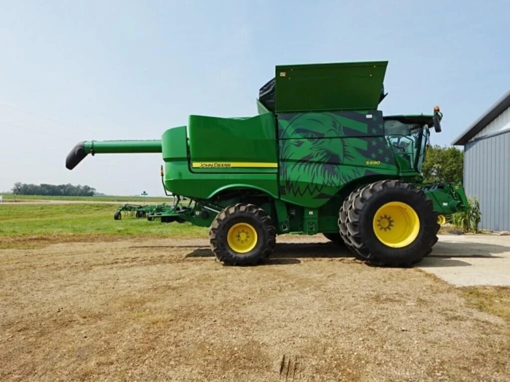 2017 JD S-690, 2554/1704 Hrs, AHC, DAS, F&A, CM, SP Hookup, 5 Speed FH, Power Fold Bin Ext, Powertail Board & Chopper, 28.5’ Hi Cap Unload Auger, PRWD 4×4, GNStar 2630 Display, GY 650/85/R38 Duals, GY 750/650/26 Rears, Lankota Rear Hitch, Leather Cab, Been through the shop the last 3 years, American Eagle Tatoo Edition! Clean! SN: 1HOS690SKH0795251