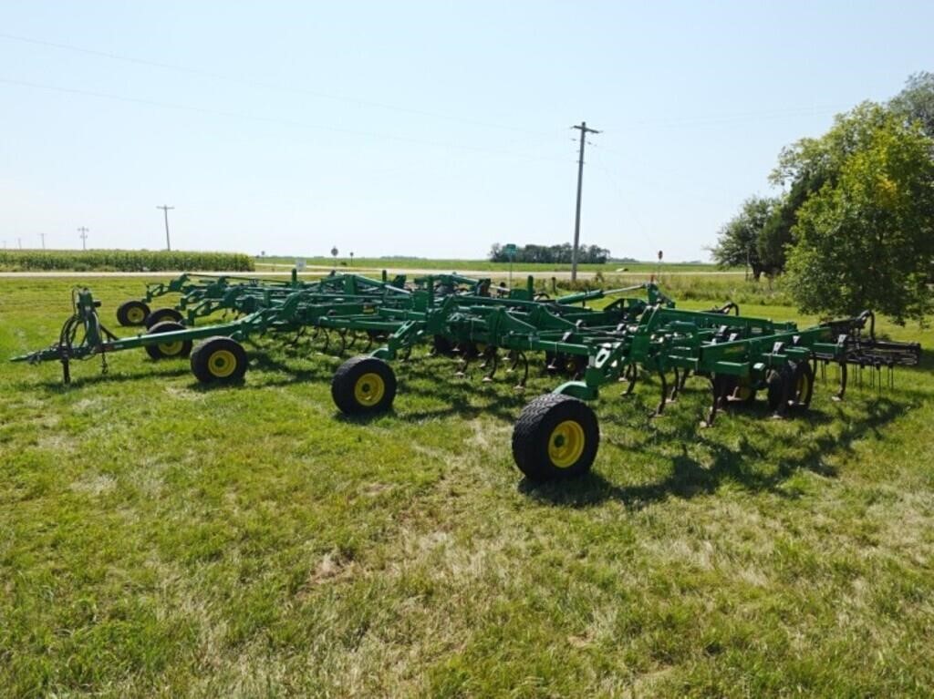 2023 JD 2230 FH 56’6” 5 Section Field Cultivator w/ Pro Finish 3 Bar Harrow & Rolling Baskets, Hyd Lift, Knock Off Sweeps, One Owner, Mint!; SN: 1N02230FCN0800149
