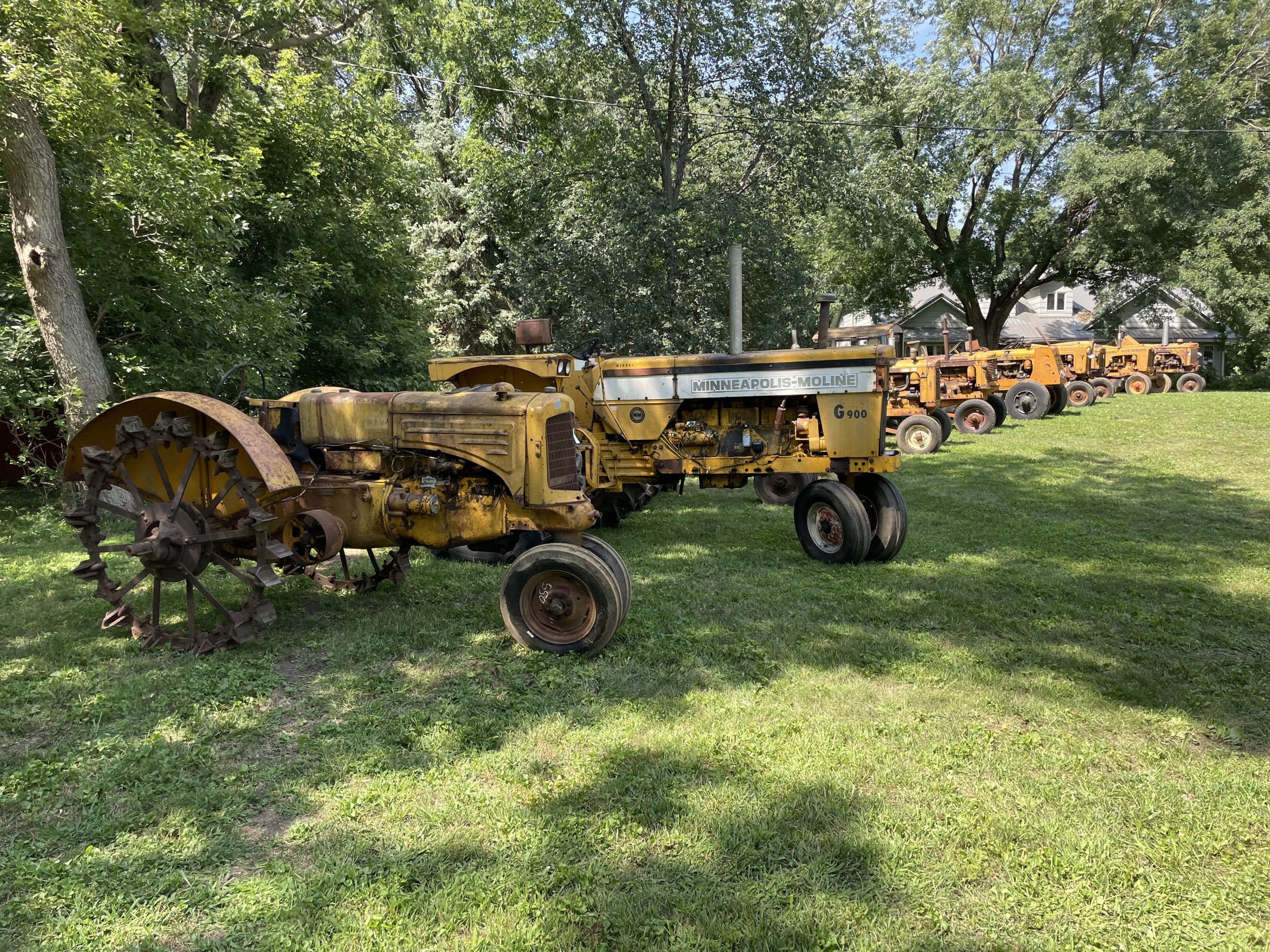Tractors: 1917 Minneapolis Moline D Articulating Tractor : Minneapolis Moline Jet Star 2 Tractor — SN:25800087, wf, 14.9-28 rear tires, one of 1213 Jet Star 2’s built (Information obtained from tractor data.com) : Minneapolis Moline Twin City MTA Tractor — Sn-527121, nf, 12.4-36 rear tires (like new), one of 3225 built (Information obtained from tractor data.com) : Minneapolis Moline Twin City KTA Tractor — Sn-302569, wf, pto, one of 4552 built (Information obtained from tractor data.com) : Minneapolis Moline Model RTS Tractor — Sn-0024900144, wf, pto, one of 906 built (Information obtained from tractor data.com) : Minneapolis Moline Twin City 21-32 Tractor — SN:150880, wide front, rear fenders, one of 7229 built (information obtained from tractor data.com) : Minneapolis Moline Twin City 12-20 Tractor — SN:159-47, wide front, steel wheels : Minneapolis Moline Tractor — SN/Model unreadable, rear fenders, 540 pto, narrow fronts, 13-38 rear tires : Minneapolis Moline Z Tractor w/ Loader —SN:00605949, 540 pto, 12.4-38 rear tires, narrow front : Minneapolis Moline U Tractor w/ Loader — SN: 329937U, model: UTU, 13.6-36 rear tires, nf : Minneapolis Moline Big Mo 400 Backhoe w/ Loader — Model: Minneapolis Moline 1400 Loader, SN: 1GY0042, 14.9-24 rear tires, wide front, 7.50-16 front tires : Minneapolis Moline UTU Tractor — SN:323063U, narrow front, 540 pto : Minneapolis Moline UB Tractor —SN:05901248, model: UB, wide front, 540 pto : Minneapolis Moline RTU Tractor w/ Sickle Mower — SN:0014901562, model RTU, narrow front, 540 pto, one of 25,824 built (information obtained from tractor data.com) : Minneapolis Moline UTU Tractor — model: UTU, 540 pto, narrow front, one of 33,268 built (information obtained from tractor data.com) : Minneapolis Moline ZTU Tractor — SN:569780, model: ZTU, narrow front, 540 pto : Minneapolis Moline UTU Tractor — SN:0114900827, model UTU, narrow front, 540 pto, one of 33,268 built, (information obtained from tractor data.com) : Minneapolis Moline RTU Tractor — SN: 0015001880, Model: R, narrow front, 10-33 rear tires, 540 pto, one of 25,824 built (information obtained from tractor data.com) : Minneapolis Moline UB Tractor — SN:06109187, model UB, wide front, rear fenders, 540 pto : Minneapolis Moline UTU LPG Tractor — SN:3344377, model: UTU, 540 pto, narrow front, rear fenders, belt pulley, one of 33,268 built (information obtained from tractor data.com) : Minneapolis Moline ZB Tractor — SN:06202505, Model ZB, narrow front, rear fenders, 540 pto : Minneapolis Moline ZAU Tractor — SN: 0064901915, model:ZAU, narrow front : Minneapolis Moline UB LPG Tractor — SN:05900370, model: UB, wide front, 540 pto : Minneapolis Moline UB Tractor — SN: 05803092, model:UB, 540 pto, 15.5-38 rear tires, wide front, 6.00-16 front tires : Minneapolis Moline M670 LPG Tractor — SN:29901373, model: M670, rear fenders, 540 pto, 3pt, 18.4-30 rear tires, narrow front, 6.00-16 front tires : Minneapolis Moline UTU Tractor — sn-315936, nf, pto, 13.9-36 rear tires, approx. 1 of 33,268 made(Information obtained from tractor data.com) : Avery Model A Tractor — nf, 540 pto, belt pulley : Minneapolis Moline ZTU Tractor — SN: 569688, nf, 540 pto : Minneapolis Moline UTU Tractor — sn-0114904081, nf, 540 pto, 13.6-38 rear tires, one of approx. 33,268 built (Information obtained from tractor data.com) : Minneapolis Moline GB Tractor — Sn-08904219, wf, pto, rear rims are rusting, 18.4-34 rear tires : Minneapolis Moline ZB Tractor — Sn-06202857, nf, pto, planter sold separate : Minneapolis Moline UB Tractor — SN: 05803906, nf, 14.9-38 rear tires, 540 pto, missing front tire : Minneapolis Moline RTU Tractor — Sn-0014802403, nf, 540 pto, one of 25,824 built (Information obtained from tractor data.com) : Minneapolis Moline UTU Tractor — Sn-323047 U, nf, pto, one of 33,268 built (Information obtained from tractor data.com) : Minneapolis Moline UB Tractor — Sn-05803863, Schwartz front end, pto : Minneapolis Moline RTU Tractor — Sn-414085U, nf, 12.4-36 rear tires, one of 25,824 built : Minneapolis Moline ZTU Tractor — Sn-564769, nf, 11-36 rear tires, pto : Minneapolis Moline M5 LPG Tractor — Sn-17100742, wf, pto, 3pt, : Minneapolis Moline RTU Tractor — Sn-417129U, nf, pto, one of 25,824 built (Information obtained from tractor data.com) : Minneapolis Moline RTU Tractor — SN: 406400, nf, 9.5-36 rear tires, pto, one of 25,824 built (Information obtained from tractor data.com) : Minneapolis Moline KTA Twin City Tractor — SN: 305360, wf, pto, spoke rear wheels, one of 4552 built (Information obtained from tractor data.com) : Minneapolis Moline Model Z Tractor — SN: 00612249, nf, pto, 12.4-38 rear tires : Minneapolis Moline LPG Tractor — SN:00610235, pto, nf, 12.4-38 rear tires, model unreadable : 1950 Minneapolis Moline ZA Tractor : SN: 00609400, wf, pto : Minneapolis Moline UTU Tractor — SN:313034, nf, 10-36 rear tires, pto, one of 33,268 built (Information obtained from tractor data.com) : Minneapolis Moline GB LPG Tractor — SN:08901673, wf, 540 pto, 18.4-34 rear tires : 1941 Minneapolis Moline UTS Tractor — SN: 05000696, cab, wf, 540 pto : Minneapolis Moline UBI Tractor — SN: 07200108, wf, mis match rear tires, : Minneapolis Moline 4 Star Tractor — SN: 16600681, nf : Minneapolis Moline Twin City 21-32 Tractor — steel wheels, one of 7229 built (information obtained from tractor data) : Minneapolis Moline ZTU Tractor — SN:569825, nf, steel rear wheels : Minneapolis Moline Twin City Model JT Tractor — SN:554955, steel rear wheels, nf, 540 pto, one of 6244 built (Information obtained from tractor data.com) : 1917 Minneapolis Moline Twin City 17-28 Tractor — SN:30022, steel wheel, one of 15,000 built (Information obtained from tractor data.com) : Minneapolis Moline Super U302 LPG Tractor — SN:2760966, wf, rear fenders, 540 pto, 15.5-38 rear tires : 1952 Minneapolis Moline UB LPG Special Tractor — SN:09701041, front e