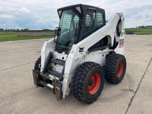 Skidloaders: Bobcat S250 Skidloader–SN:530913388, shows 3011 hours, foot controls, auxiliary hydraulics, like new 12-16.5 tires, 2 speed, power bob-tach, ac does not work