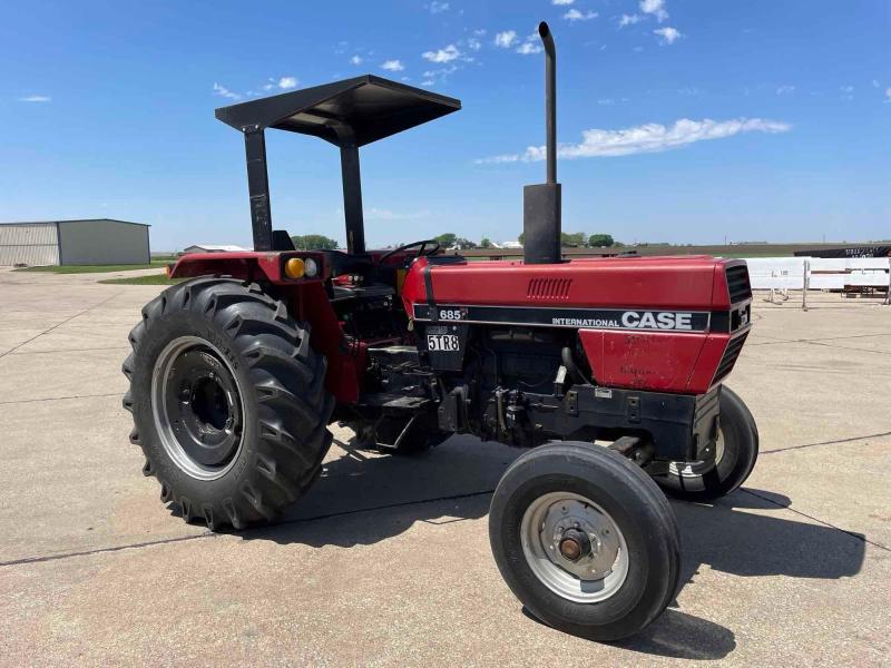 Case International 685 Tractor–SN:B510231B025110, shows 2373 hours, canopy, 2 rear remotes, 540 pto, 3pt, 16.9-30 rear tires, 7.50-16 front tires, 2 sets of rear wheel weights