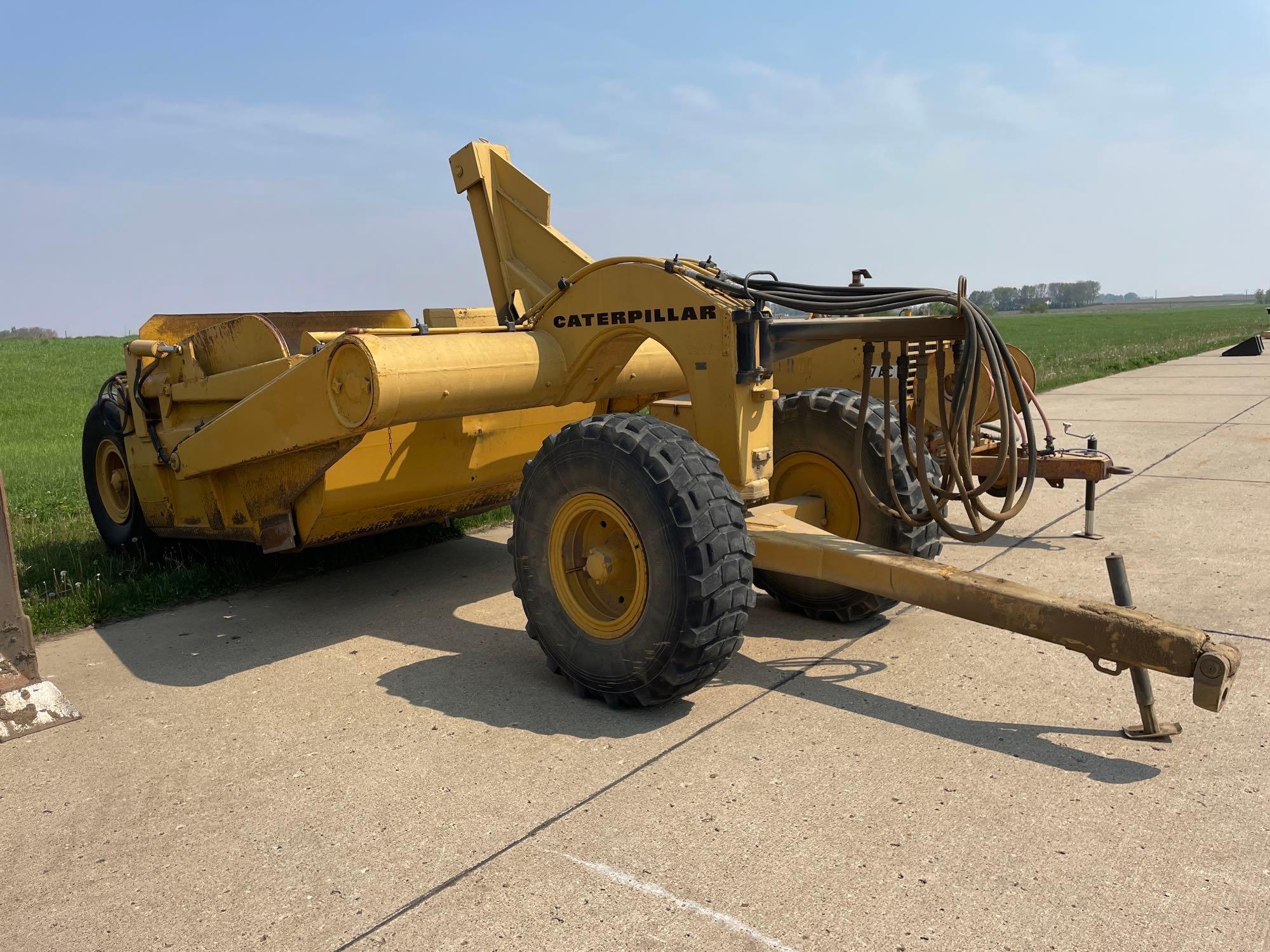 Dirt Scrapers: 1974 Caterpillar 621B Self Propelled Dirt Scraper–SN:45P712, shows 1816 hours, newer 3406 diesel engine, new batteries, recent oil change, 33.25-29 tires, door included, brakes need work, machine runs/operates good