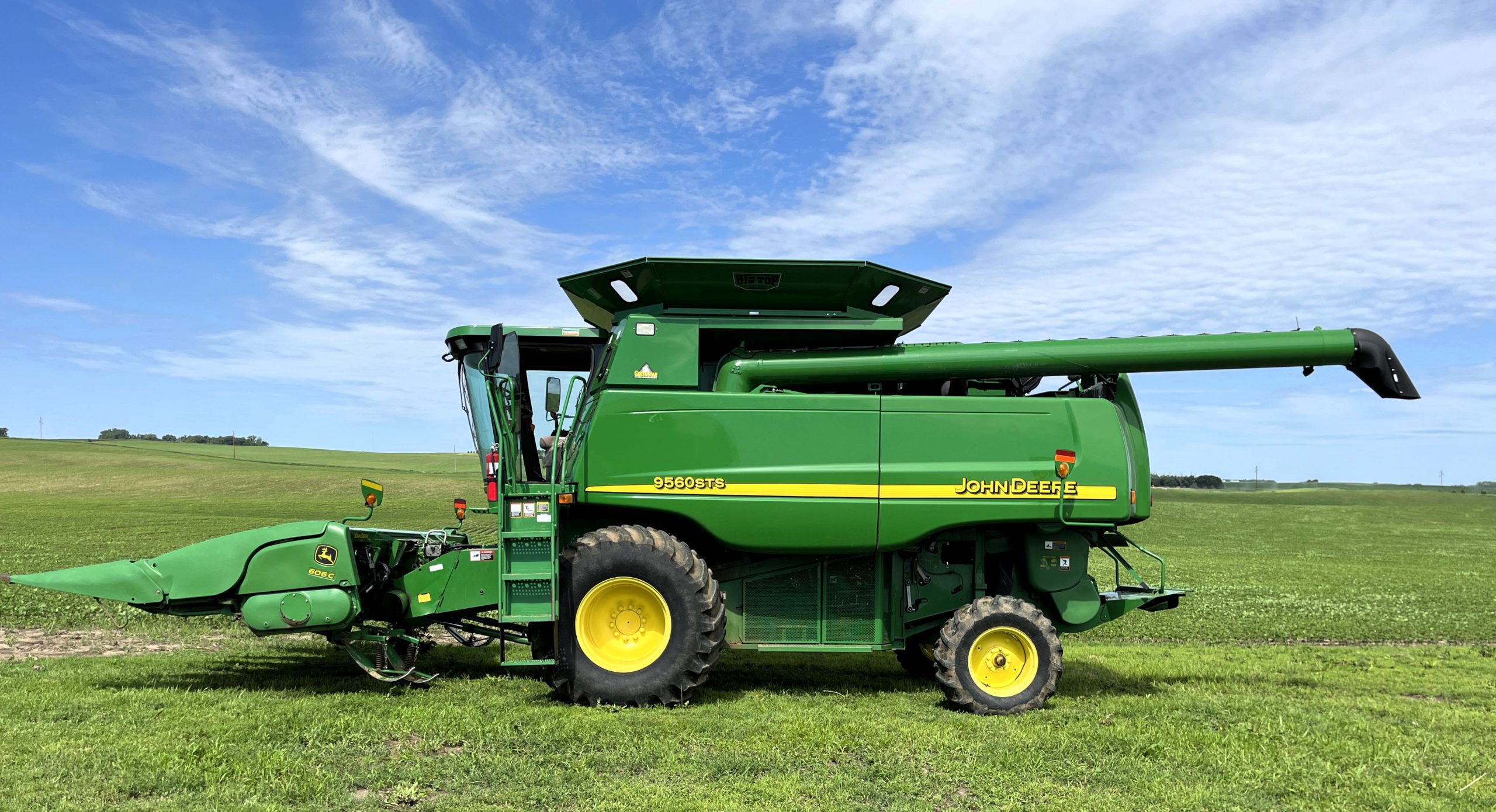 Combine/Harvest Equipment: 2004 JD 9560 combine, 2,634/1,659 hours, grain tank extension, 30.5-32 tires, deep tooth chaffer, Touchset concave; JD 606C corn head, HH, good condition; JD 625 bean head, single point hyd.; Horst header cart, 4-wheel; Demco 650 gravity wagon; Brent 544 gravity wagon; 540 gravity wagon; Westfield 100-51 auger, electric motor, nice; Brandt 1060 auger, hopper, salvage due to auger being bent; Chevy C50 grain truck, not running.