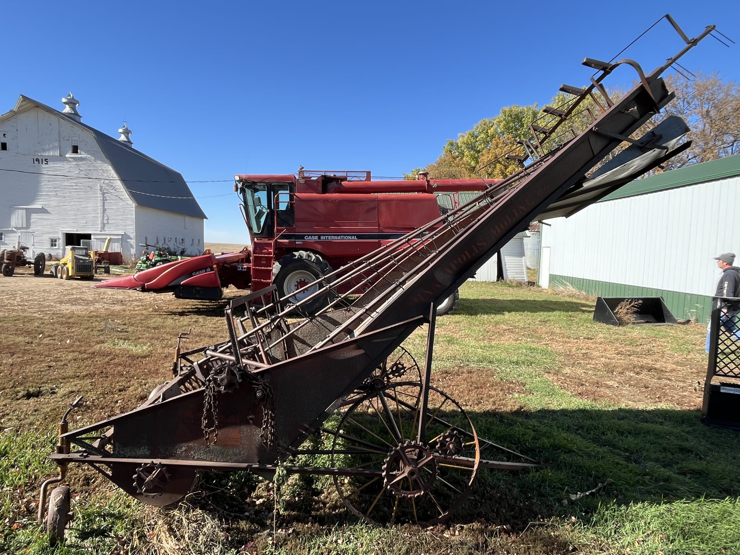 Misc: MDS 3 pt trailer mover; Tractor mounted buzz saw, w/blade, off Farmall H; MM antique hay loader 1 bottom horse plow; drag section; steel fence posts; 4- 5 gal pails of Case IH 15w/40 oil, new; measuring wheel; 2- electric motors, working; Fast Hitch drawbar; milk cans; oil barrel, w/hand pump; 2- roll away chicken nests; 2 live traps; high tensile wire; Ash wood, cut into boards; 2 tubs of soybeans left over from this year; 2- steel runner sleds; antique lightning rods, w/balls; marker for end gate seeder; 2- antique 2 person saws; 60’s life magazines; plus more.
