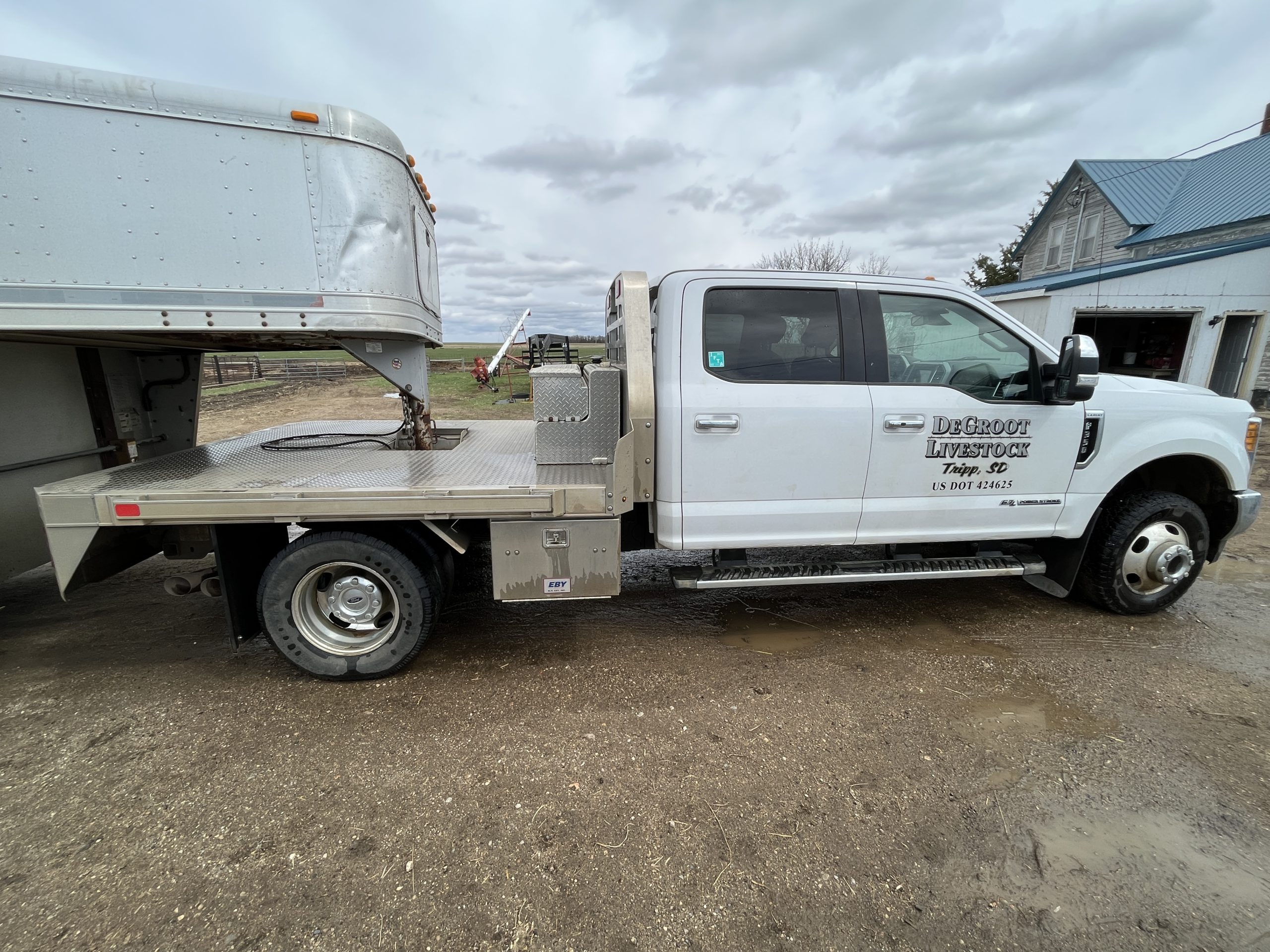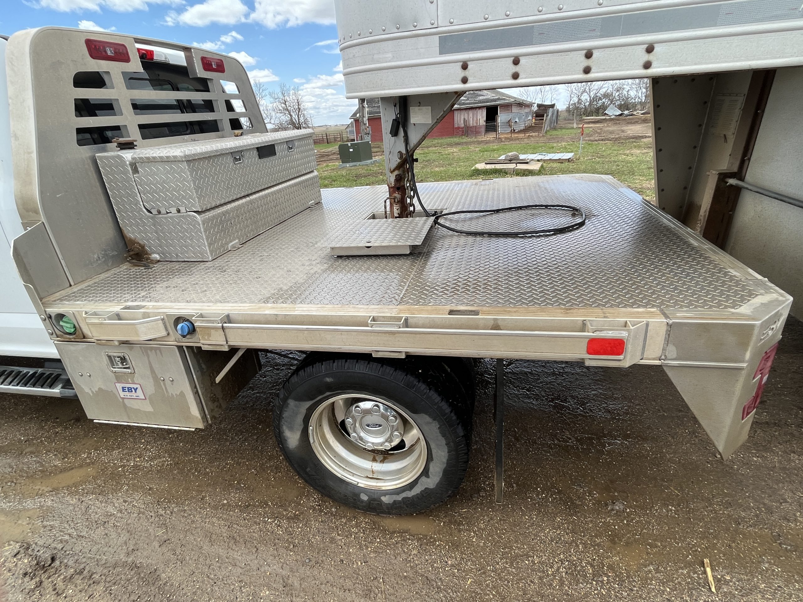 Pickup/Livestock Trailer: 2017 Ford F-350, Dually, Diesel 229,000 miles, with EBY Flatbed 45 gal aux fuel tank; VIN: 1FT8W3DT5HEB61594, 2006 Featherlite Double Deck 8’x36′ Livestock Trailer, 3-8k axles, VIN: 4FGB236376C090822.