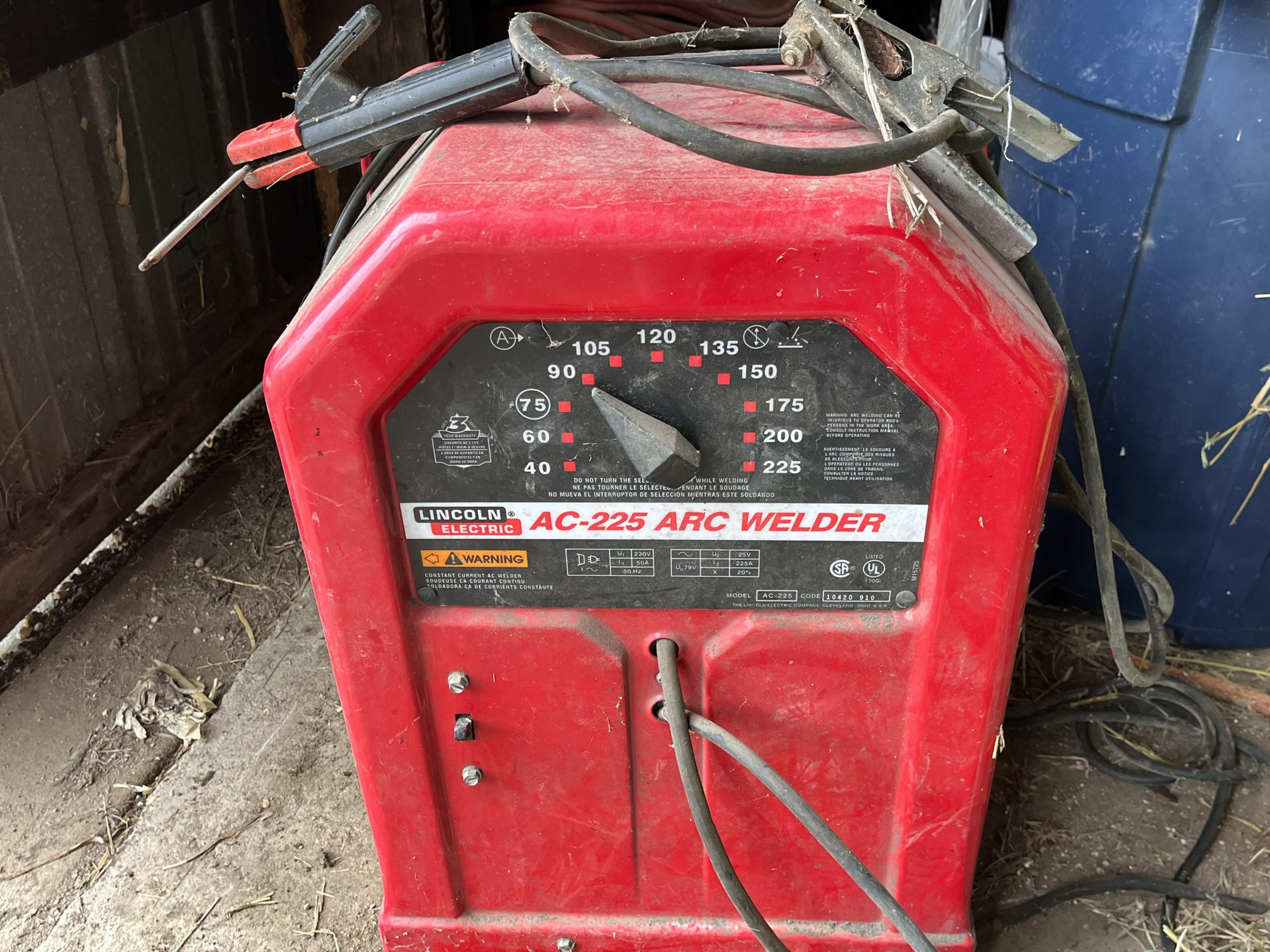 blade; 3pt post auger; 2 section drag; stick welder; bench drill; air compressor; tractor chains;