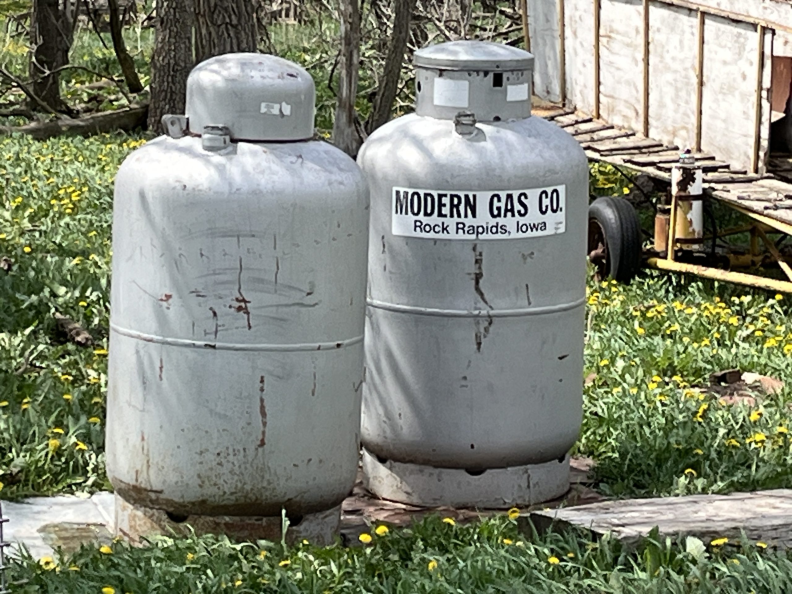 LP heater; steel and plastic posts; telephone poles; bridge timbers; JD 5’ 3pt rotary mower;
