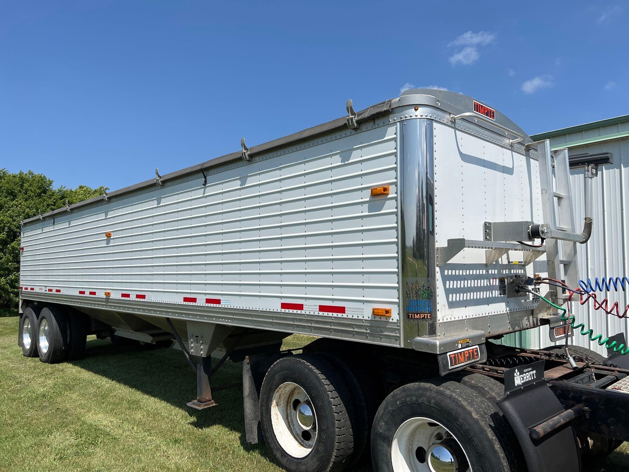 Grain Trailers: 2012 Timpte Super Hopper 34ft Aluminum Semi Grain Trailer—1 Owner, VIN-1TDH3352-6-CB135773, 4500 series shurco roll tarp, 11R24.5 tires, Ag hoppers, GVWR-65,000#, aluminum rims, air ride, less than 20,000 miles total on this trailer: 2008 Mauer 28ft Steel Semi Grain Trailer—VIN-1M9KG2823S5152583, GVWR-54,000#, 285/75R24.5 tires, brand new shurco elec roll tarp, spring ride, ag hopper: