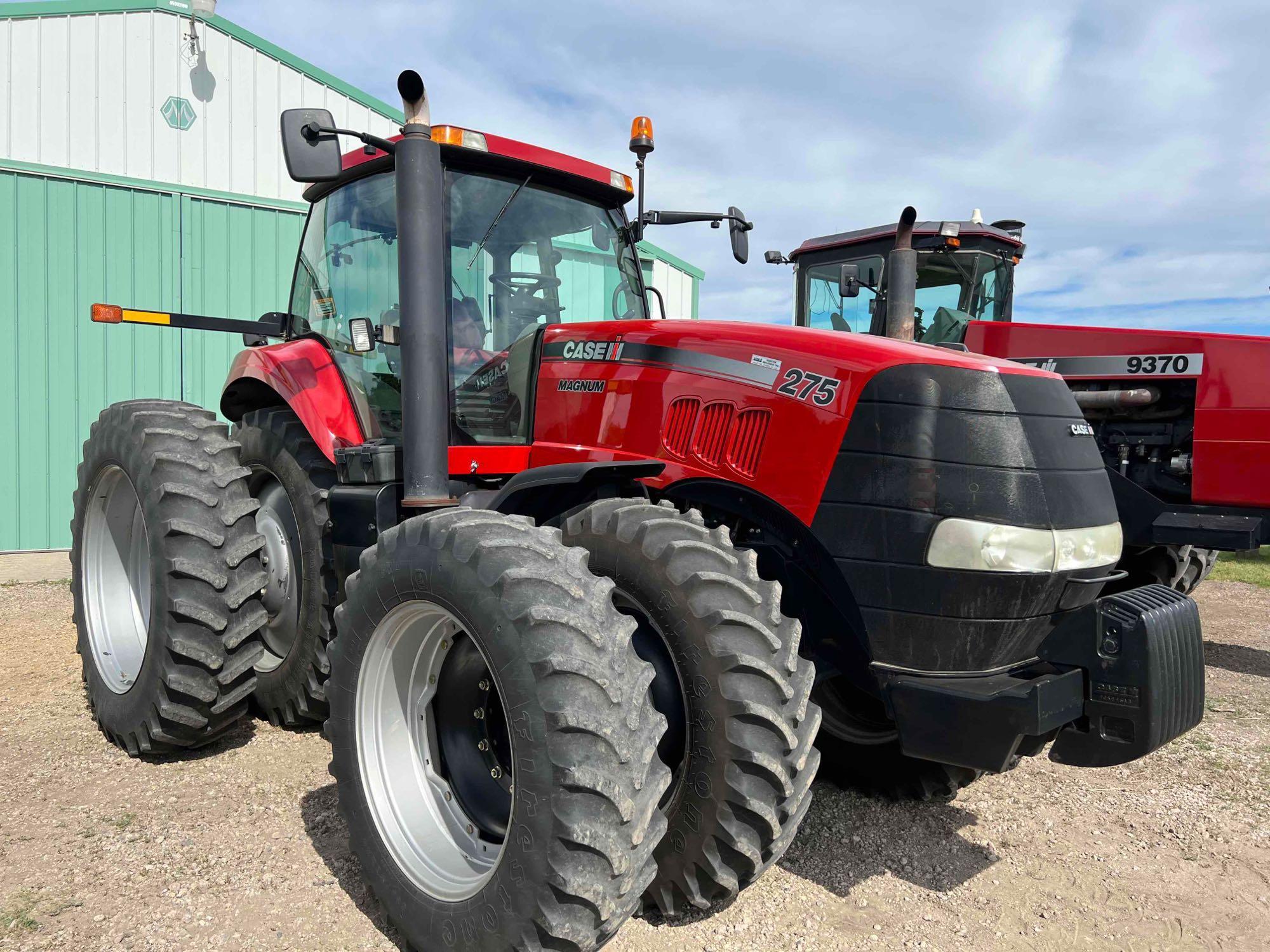 Tractors: 2009 Case IH 275 Magnum FWA Tractor—2nd Owner, SN-Z9RZ01949, shows 2700 hours, 8—49kg front weights, 380/84R34 front tires w/ duals(40-50%), 18.4R46 rear tires w/ duals(Tractor—90%, duals—20-30%), left hand reverser, 3 remotes, quick hitch, 1000 pto, buddy seat, heat, a/c, radio, auto steer ready: Case IH 7120 2wd Tractor-3rd Owner, SN-JJA0031668, shows 7525 hours, rock box, 480/80R42 rear tires w/ hub duals, 3 remotes, 540/1000 pto, heat, a/c, 18/4 powershift, tractor is equipped with a Raven steering wheel and Raven globe (No monitor is included with tractor): 1998 Case IH 9370 Steiger 4WD Tractor—SN-JEE0071913, shows 5465 hours, 4 remotes, bareback, Cummins N14 eng.(tuned to 400 HP), raven steering wheel with monitor: 710/70R38 tires, inside tires—approx. 90%, duals approx. 35%, rock box, heat, a/c, radio, fresh oil change: