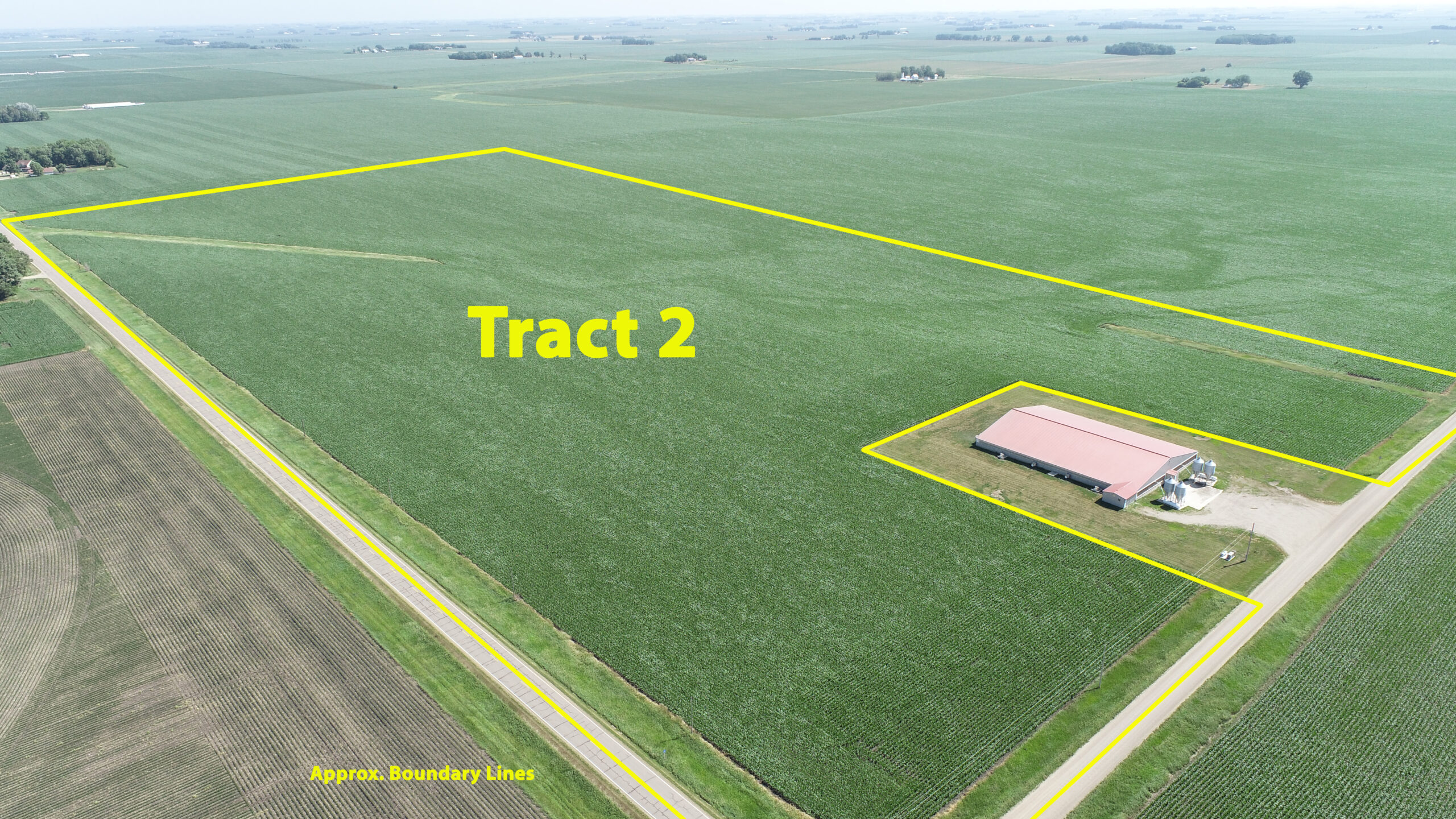 Tract 1 & 2 Location: From NCC in Sheldon, IA go 2 miles West on HWY 18 to Lily Ave. then go 2 miles North on Lily Ave to Tract 2 or from Boyden, IA go 4 miles East on HWY 18 to Lily Ave then go 2 miles North on Lily Ave to Tract 2. Tract 1 is located directly East of Tract 2 and is accessed from 300th St. Auction will be held at the site of the farmland. Watch zomercompany.com for inclement weather.