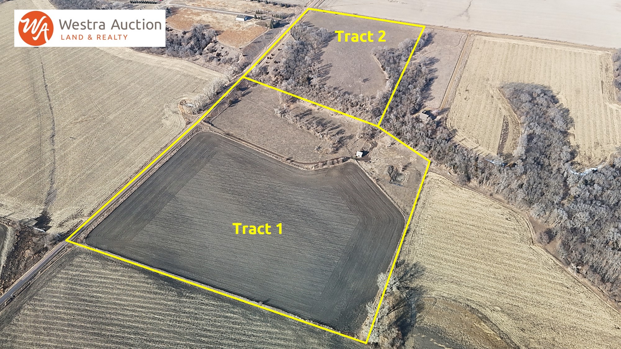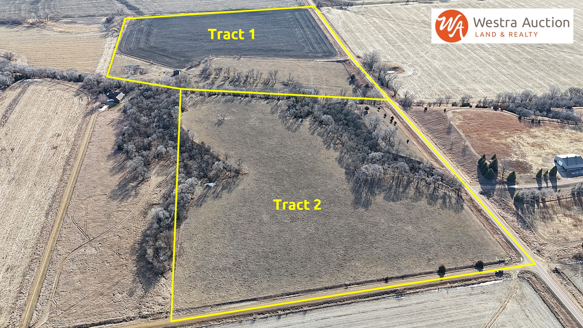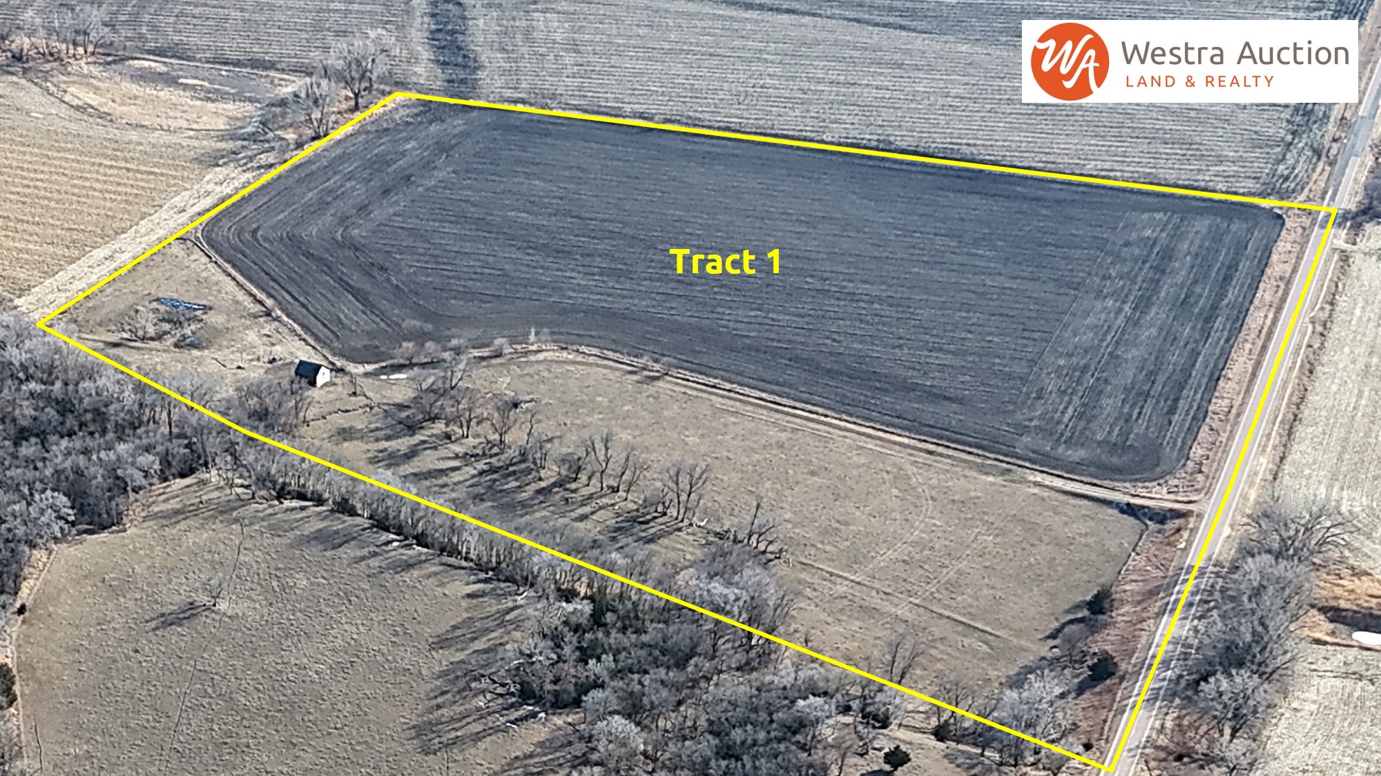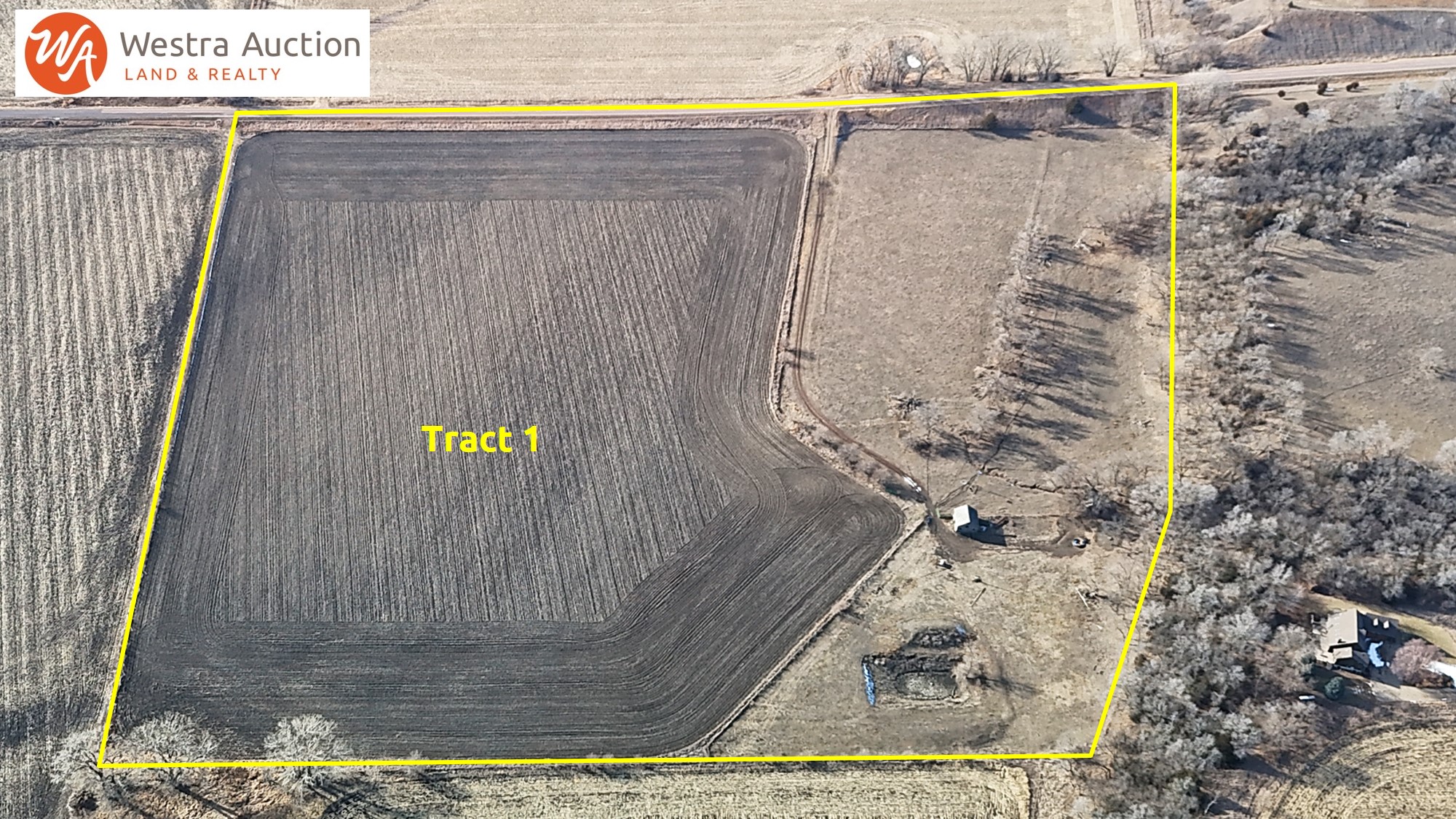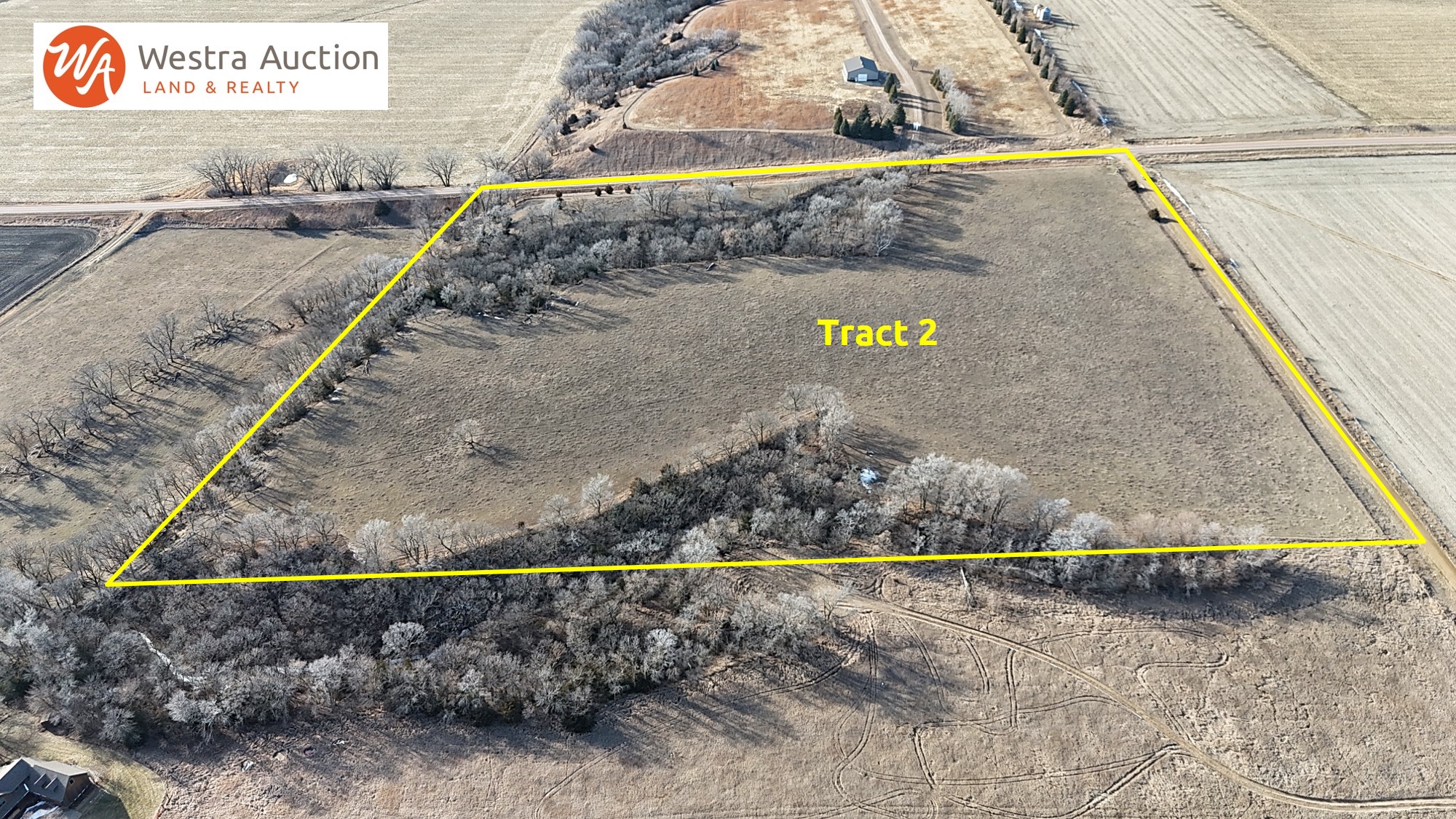 Tract 1:  39.43 +/- acres, 1 building eligibility.  The land includes approximately 25 acres cropland with the balance of the land in pasture, trees, dugout, well and older outbuildings.  According to Surety-AgriData, the land has a productivity index of 82.2. The cropland is leased for the 2025 crop year and the buyer will be credited the 2025 crop lease payment.