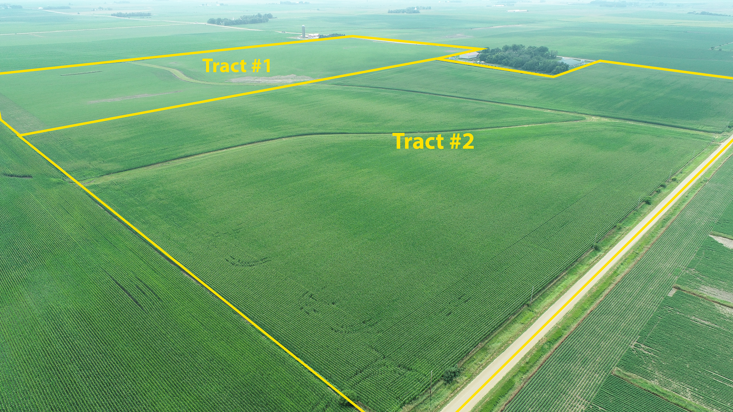 Location: From Ashton, IA at HWY 60 go 1 mile East on 230th St. to Olive Ave. then go North on Olive Ave for 1 mile to 220th St. then go East on 220th St. for 2 miles to Pierce Ave then go 1/2 mile North to the Farmland The two tracts are adjoining and Tract 1 lies on the East side of Pierce Ave and Tract 2 is directly adjoining Tract 1 to the North and adjoins Pierce Ave and 210th St. on the North side. Watch zomercompany.com in case of inclement weather!