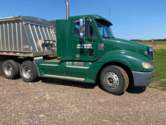 Semi/Trailer: 2007 Freightliner, Columbia, C-13 engine, 10 speed, Jake, 188’’ WB, 429,282 miles; 2003 Freightliner, C12 engine, 10 speed, 188’’ WB, 584,547 miles; 2014 Dakota 40’ grain trailer, aluminum, air ride, tarp, 24.5 tires; 2007 Dakota grain trailer, 40’, aluminum, air ride, roll tarp, 24.5 tires, both trailers have been updated with support kits.