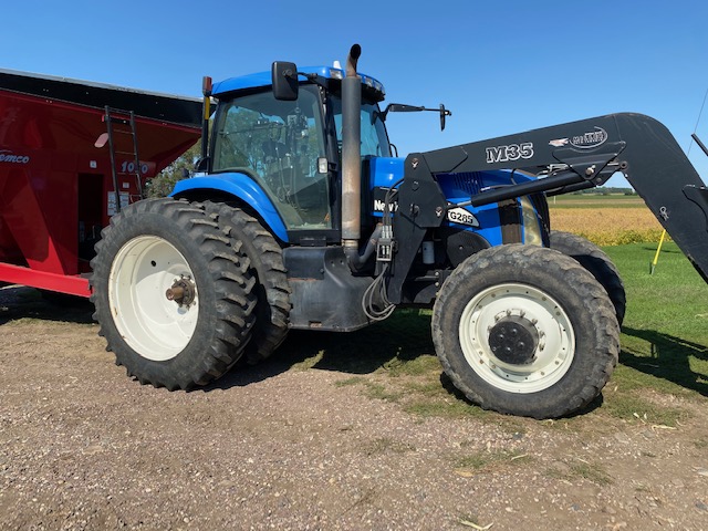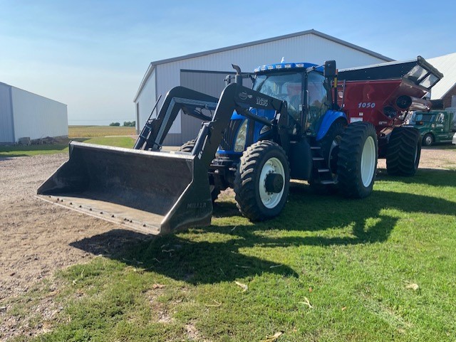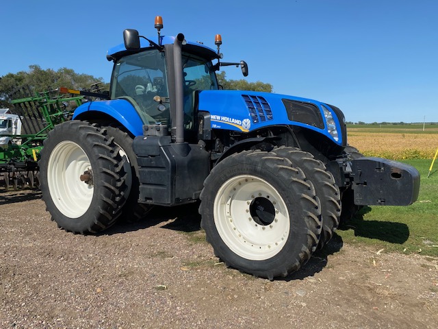 Tractors: 2011 NH T8.390 tractor, 1,955 hours, front duals with suspension, 50’’ rear tires, 380/80/R38, Mega Flow hyd. with 6 outlets HD drawbar, rear weights, 19 speed powershift (30 MPH), 200 lb. front weights; 2008 T8050 tractor, front duals and fenders, 50’’ rear tires, deluxe cab, 2,217 hours, Mega flow hyd. with 5 outlets, 18 speed, rock box; 2003 NH TG285, 2,742 hours, 46’’ tires, 4 hyd., 40 gpm pump, brand new 34’’ front tires, super steer, foot throttle, sold with Miller M35 loader (2016), loader is slightly sprung, 8.5’ bucket, single point hook-up, pallet forks sold separate.