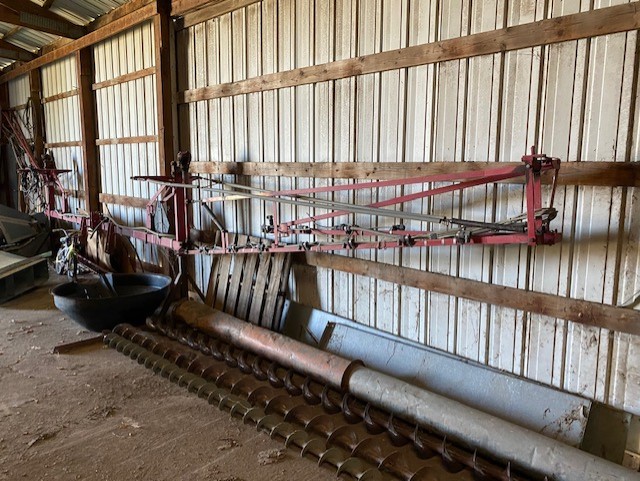 Grain Bin Equipment: 10’’ upright 16’ bin unload auger,10 hp single phase motor, off 27’ bin; 2-6’’ auger heads with flighting, 3hp and 5 hp; auger flighting for 1-24’ bin (new); auger flighting for 27’ bin; auger flighting for 21’ bin.