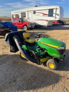 Lawn mowers: John Deere X300 Mower with Bagger-42” Deck, 18.5 hp, Hydro, 147 hrs, new battery: New Altoz XE ZTR Mower-61” Deck, Kawasaki FX 850 Engine, Hydro, SS suspension system: Demo Altoz XP 610 HD ZTR Mower-61” Deck, Fuel Injected 33 hp Kohler Command Pro, 35 hrs, hydro: John Deere LTR166 riding lawn mower–42″ deck, rear discharge, dump bagger, 16HP eng: John Deere X534 riding lawn mower–413 hours, 54″ deck, all wheel steering, power lift deck