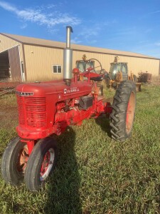 Tractors: John Deere 3010 Tractor–1961, hours unknown, new water pump, new battery, sn3010 11T11775, runs, Year Round cab: 1957 350 Farmall- Power Steering, Fast Hitch, TA and Clutch good, new battery, new front seal, cam shaft right hand thread gear 48 tooth, new rear seal, new plugs and points, all serviced ready to go, Tach shows 2615 hrs: 1953 Farmall Super M-New rear rims, good tires, live Hydraulics, 540 PTO, 6:00 x 16 Fronts, 14.9 x 38 Rears, # 47635 J , Runs and drives good: 1946 Farmall H-600 x 16 Fronts, 12.4 – 38 Rears, 12 Volt system, runs/drives good: