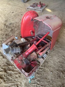Tractor Parts: International Harvester Parts-M Parts. misc IH A and B Parts, Radiator, Starters, Fuel Tank, Hood: IH parts and Misc-IH weights, muffler, seat, cultivator cranks, H narrow front: Westendorf WL30 Brackets: 6- Hydraulic Cylinders: IH 686 front fenders: 18.4 x 34 duals
