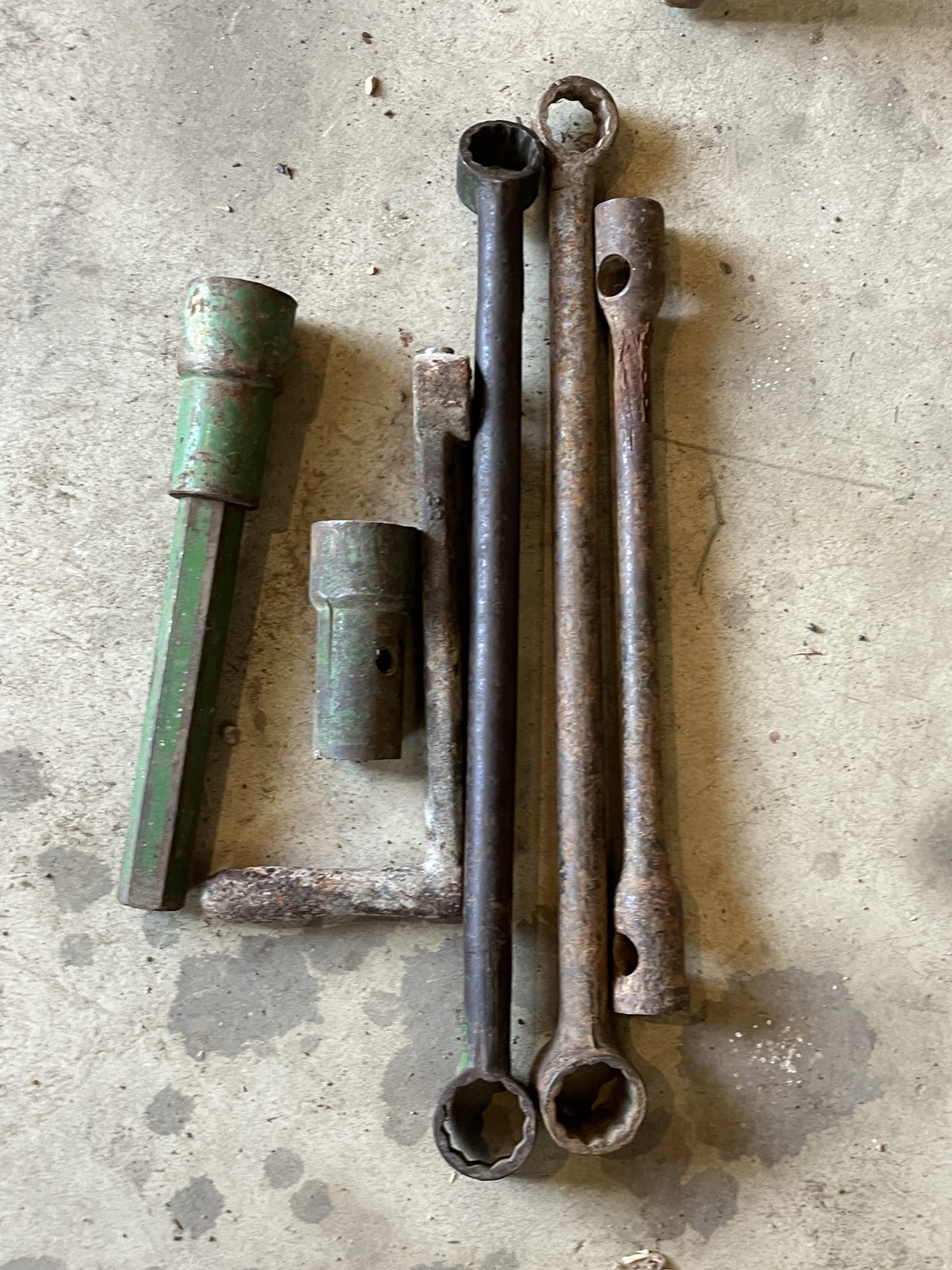 Tractor Parts: JD single front wheel, fits 10-20 series; JD front rims, off 730; M&W turbo fan, off 3020; JD 3020 side screens; JD 3020 nose cone; JD step; JD clamshell fenders, unpainted, new; JD 20 series battery boxes, unpainted, new; JD front picker screens; 2- JD 10”x38” rims; JD B muffler; JD 620/630 muffler; JD 60/G/A muffler; JD seat cushions; JD 3020 hitch; JD 3020 side panel; JD misc. wrenches; Case 580K hyd. pump; 5- 18” plow shares for IH 710 plow; IH 200-400 front emblem; Farmall M hitch; AC WD Engine, disassembled, complete; Propane 90o propane fill.