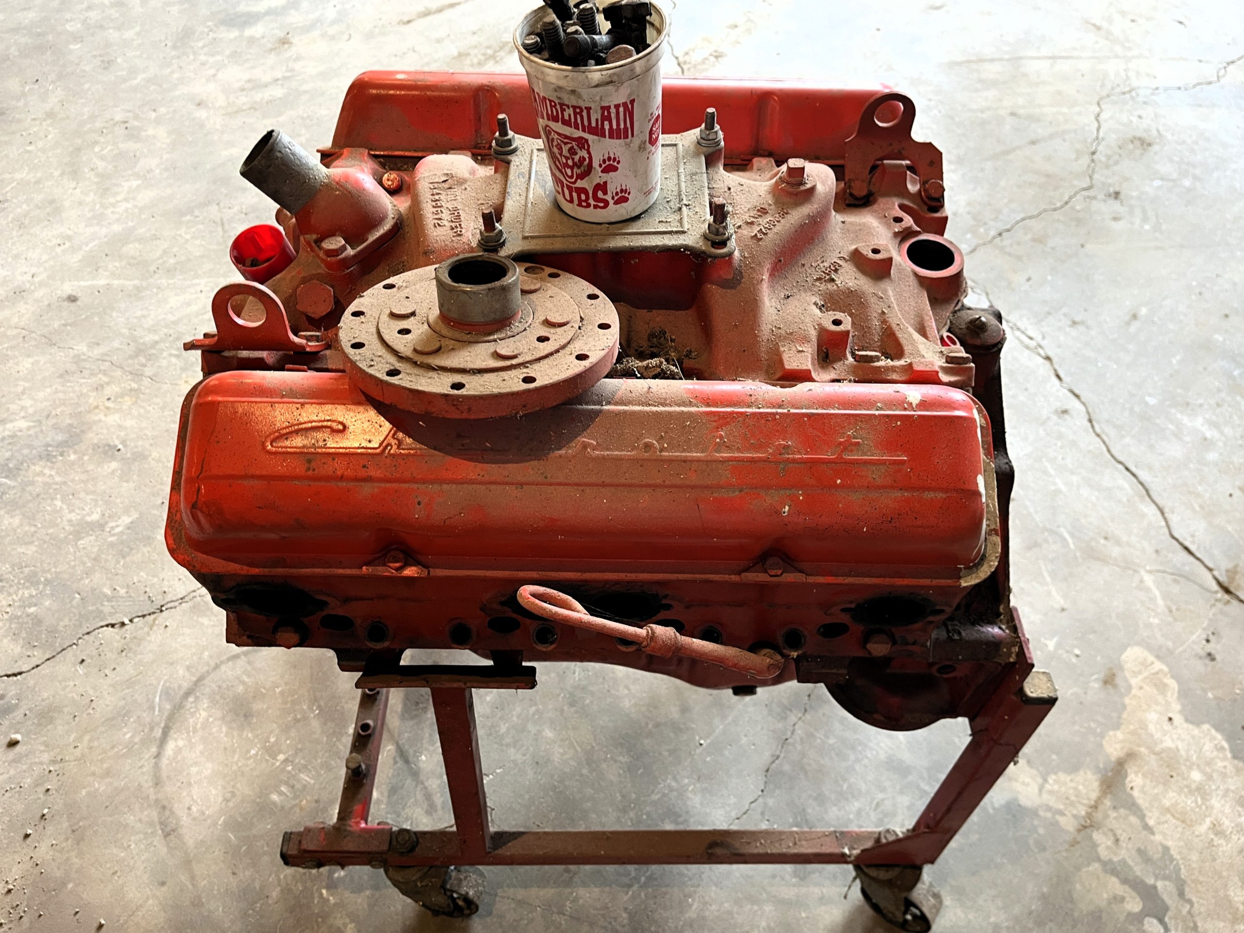 Car Parts: Ford 352 FE motor; GM 327 motor, 1965-67 yr, 2-bolt main, camel back heads; 1965 Ford Galaxy front clip; Ford Model T floorboard; Set of 4 rims, off 1992 Pontiac Grand AM; Misc tires, 13’s, 14’s, 15’s; 4- chrome rim rings.