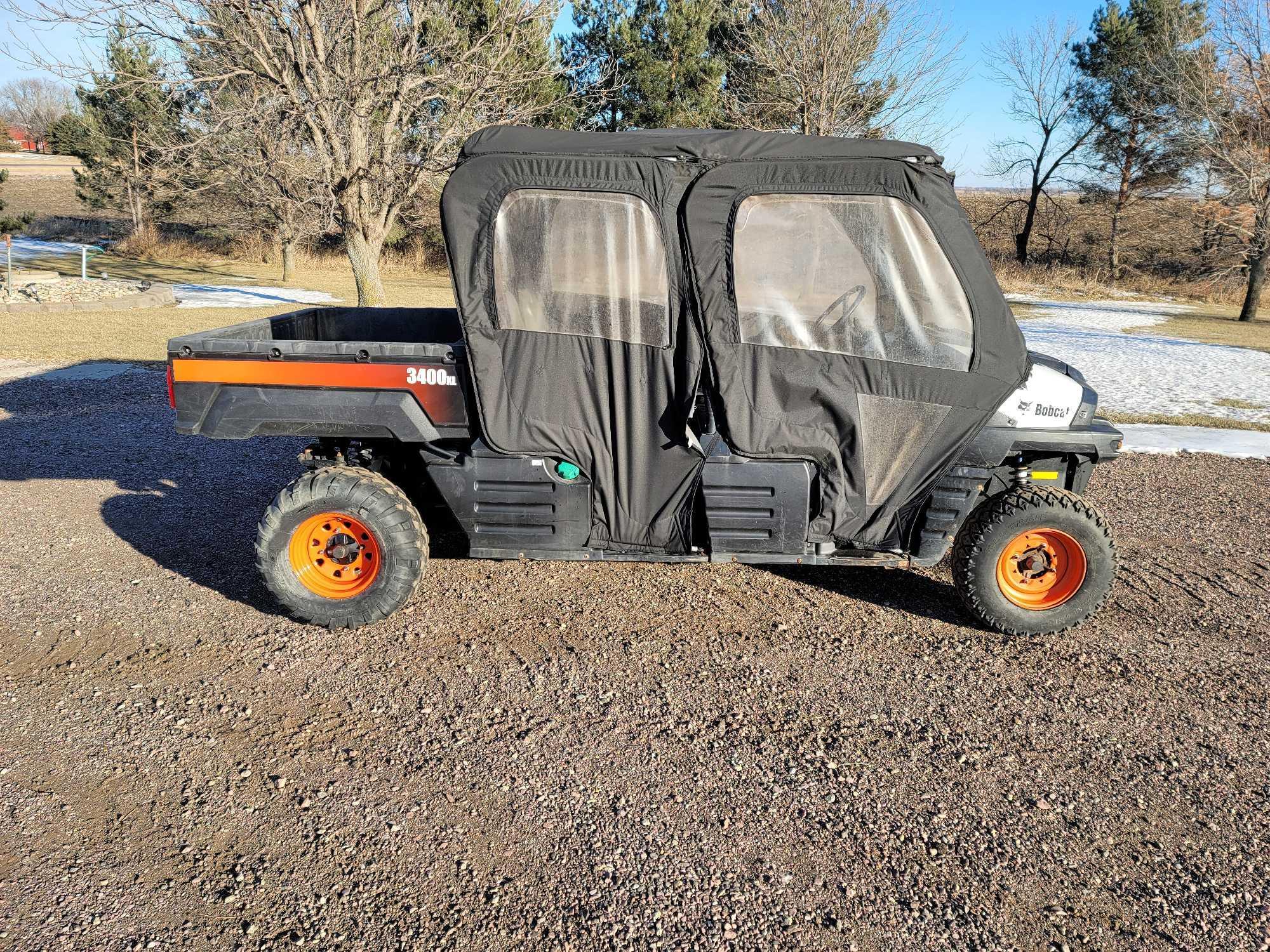 2015 Bobcat 3400XL side x side UTV: diesel, enclosed cab with heater, 4×4, tilt box, 2332 hrs., 25×11-12 rear tires, 25×8-12 front tires, blinkers, has vin number, but no title, runs good, drives good, BUT ENGINE DOES GET HOT. Had new head, and water pump installed (have paperwork), sold AS IS!