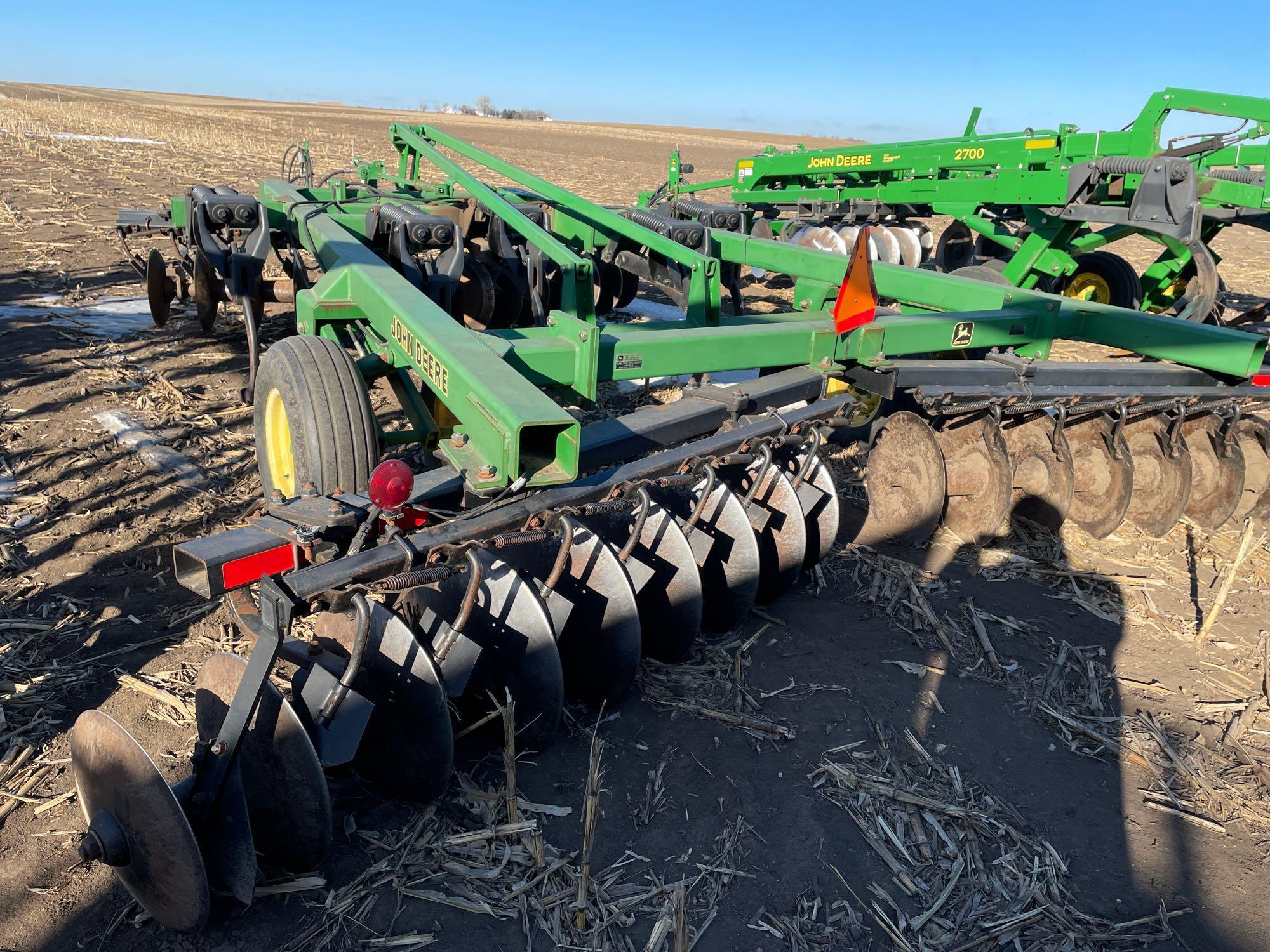 White 271 17 1/2ft Disk-1 Owner: 19 3/4 front blades, 20 1/2 inch rear blades, 3 bar Summers harrow-main section has one bar that is bent