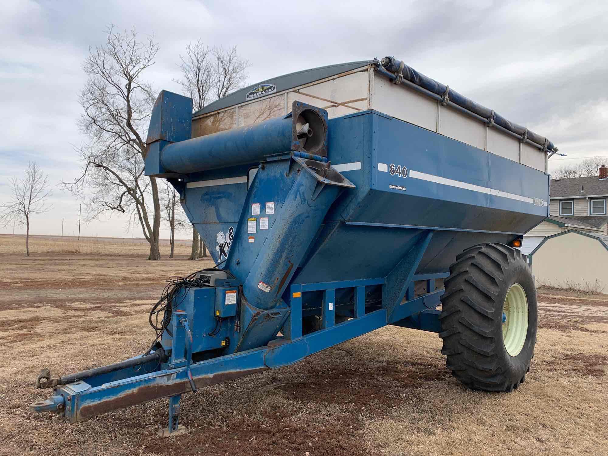 Kinze 640 Grain Cart: has a 200bu. ext installed (800bu. total with ext), shurco tarp, 1000 pto, 14 inch unload auger, has a scale however current owner has never used scale(scale is sold as is), sn-501227, J star EZ150, mis match tires, 24.5-32 Firestone tires, self oiler
