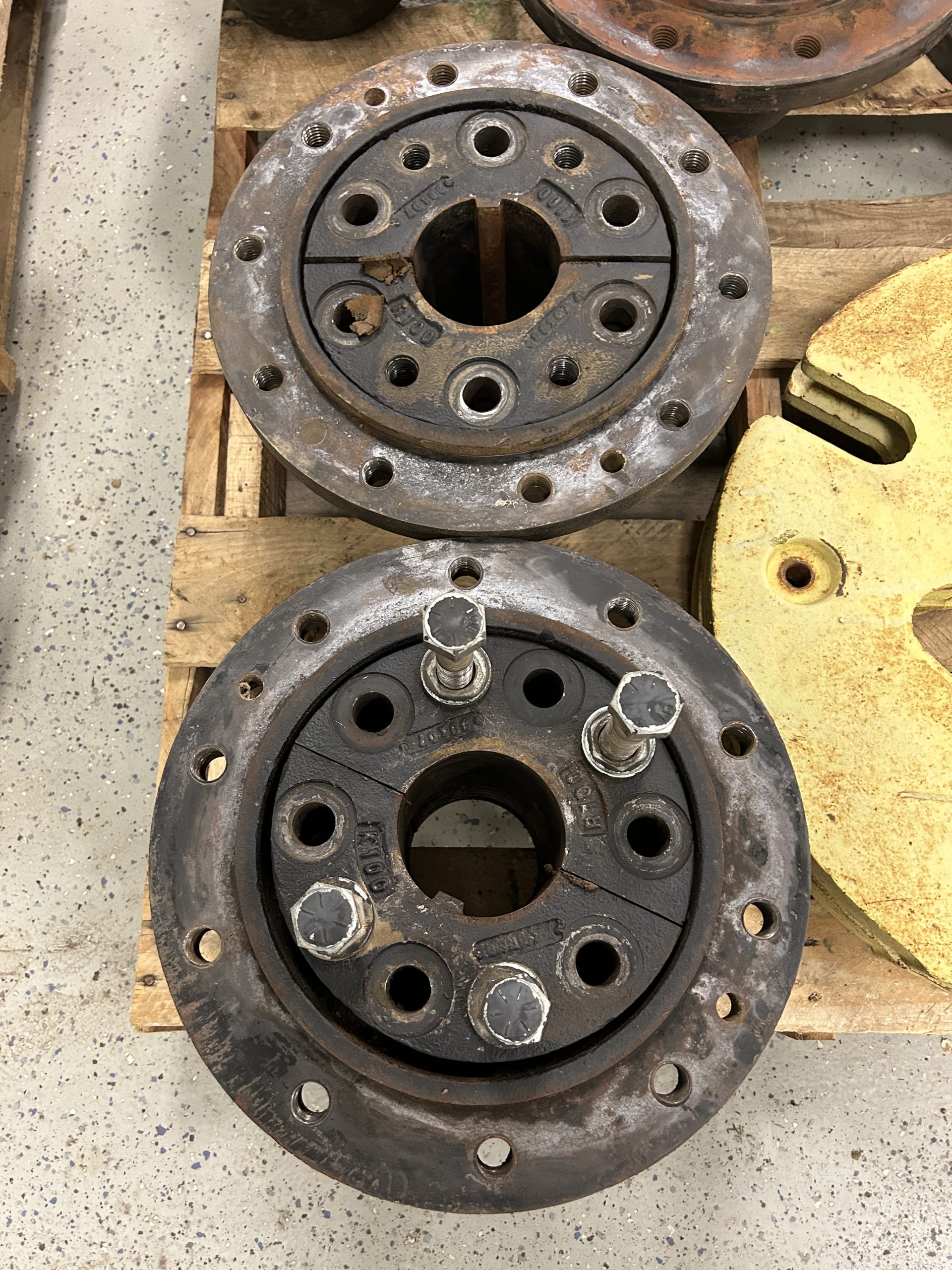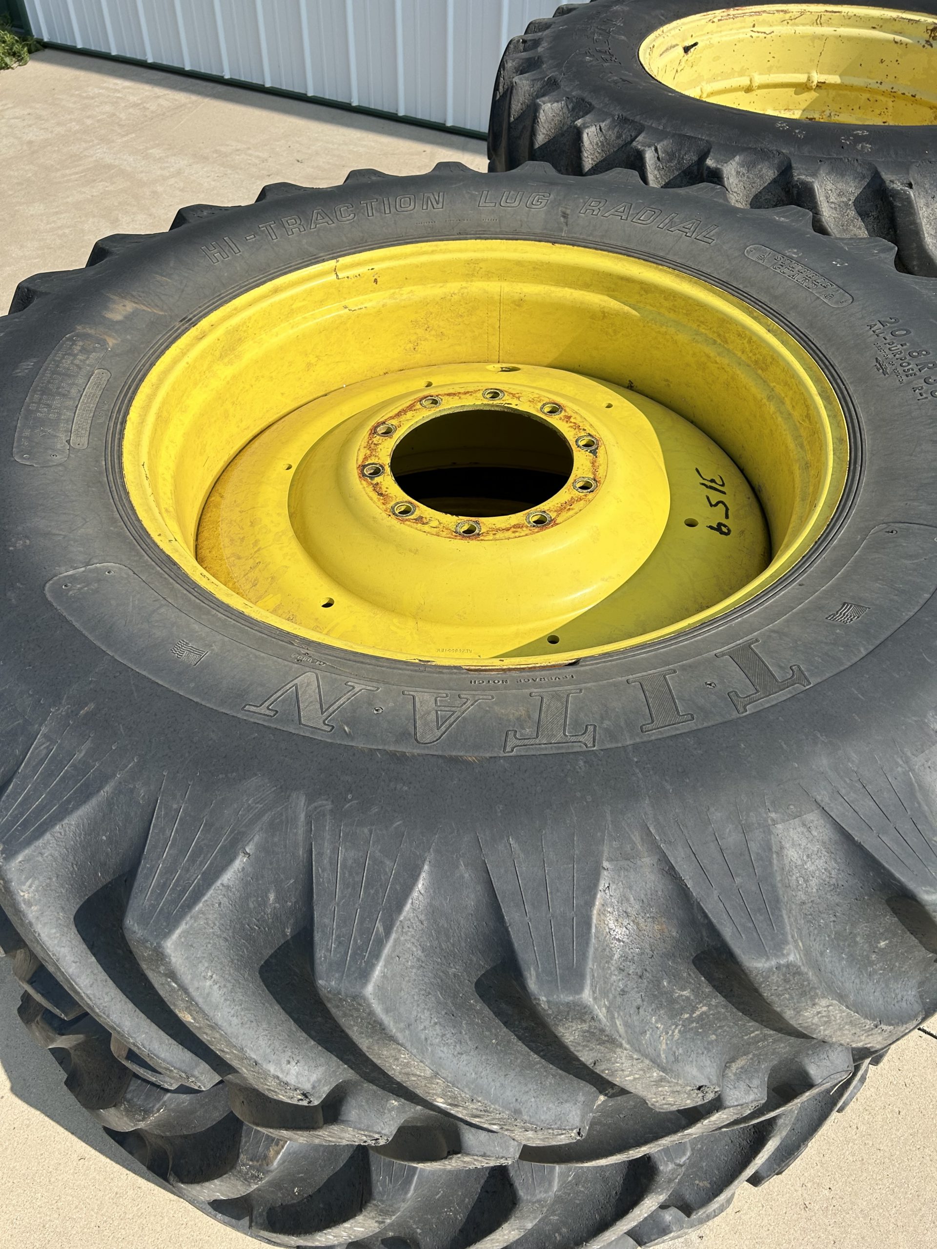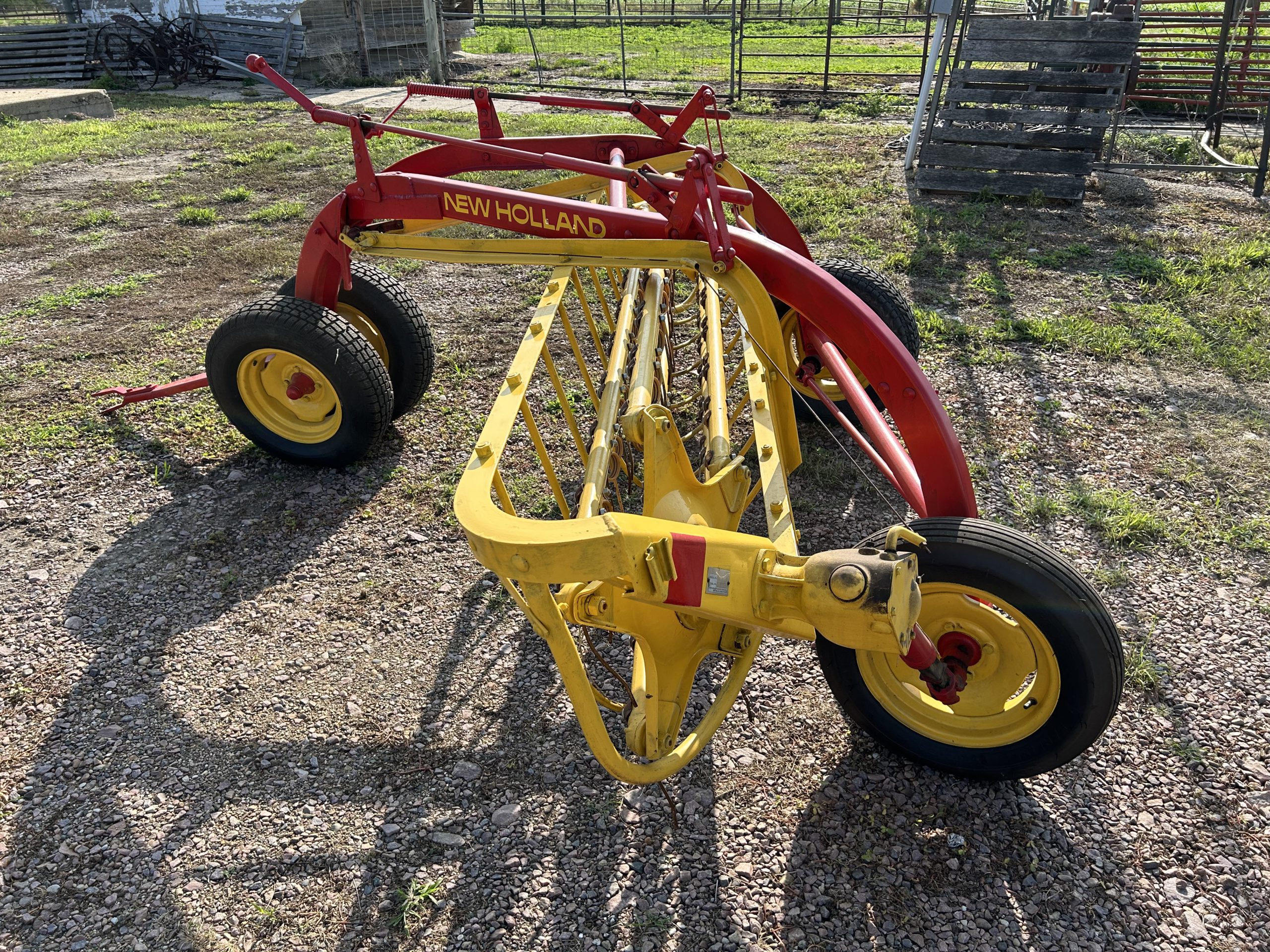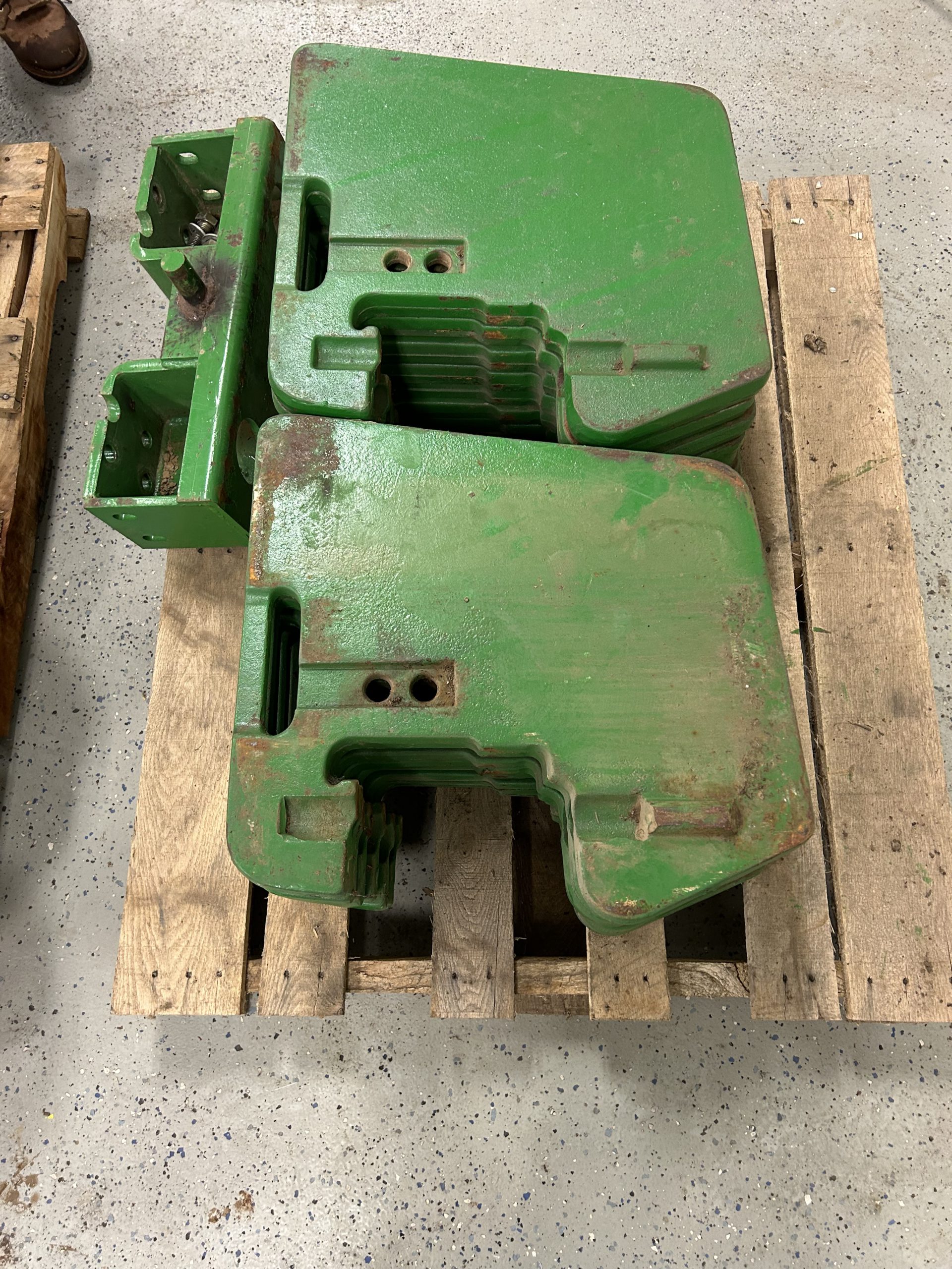 Misc.: Dressen 7’X16’ car trailer, ramps, 3500lb. axles, nice; MDS 7’ rock bucket with grapple, like new! JD 7’ bucket and grapple; 2- set 20.8-38 duals; 1 set JD wheel weights; 2-10 bolt JD dual hubs, off 4640; 2-JD Cat II/III cast quick hitches; 5’’ 10 bolt dual spacers; 76-gallon JD front diesel tank; brand new 22.5 10 bolt rim and tire for Brent 640 wagon; new 12.5-15 tire and rim.