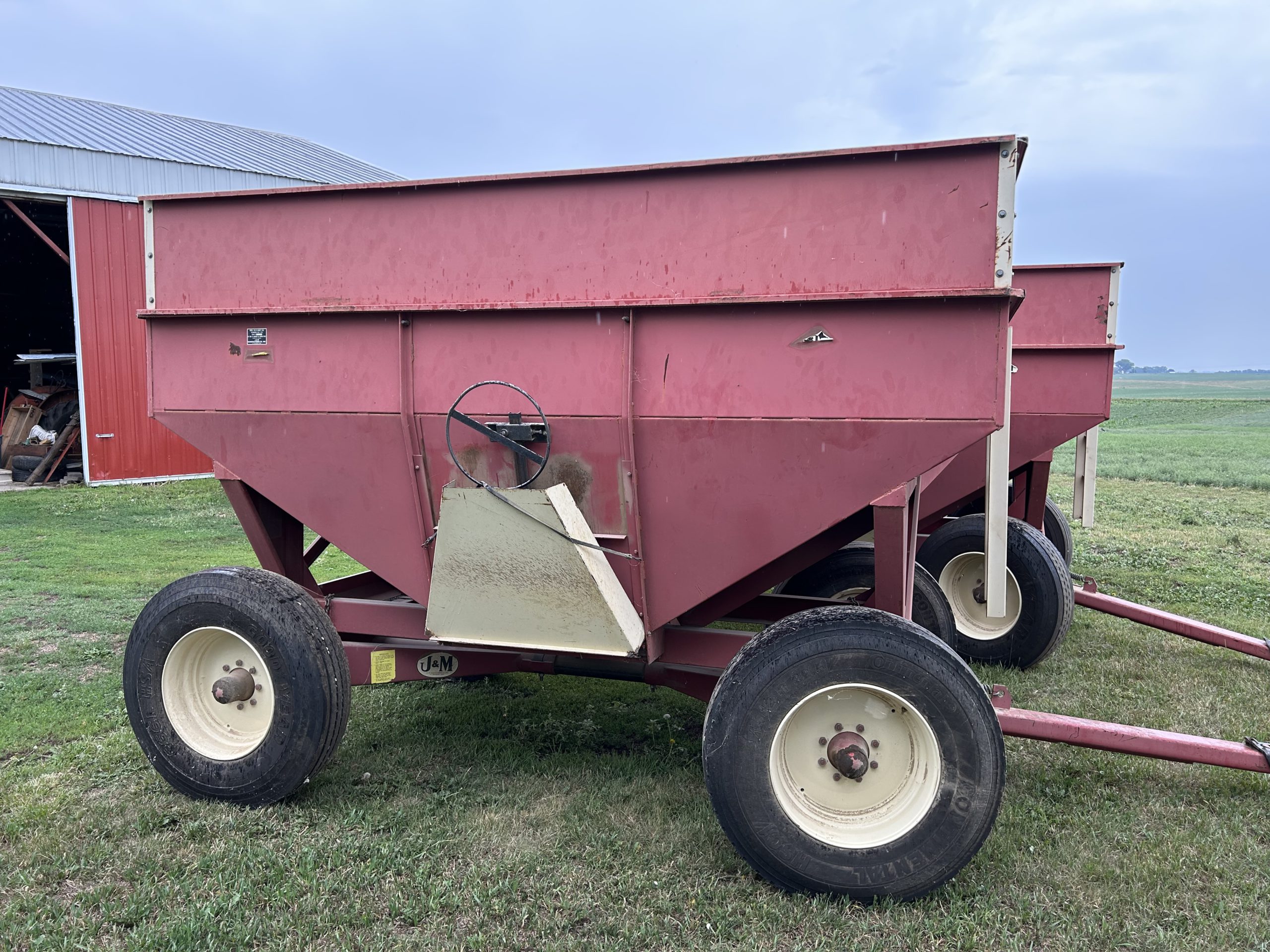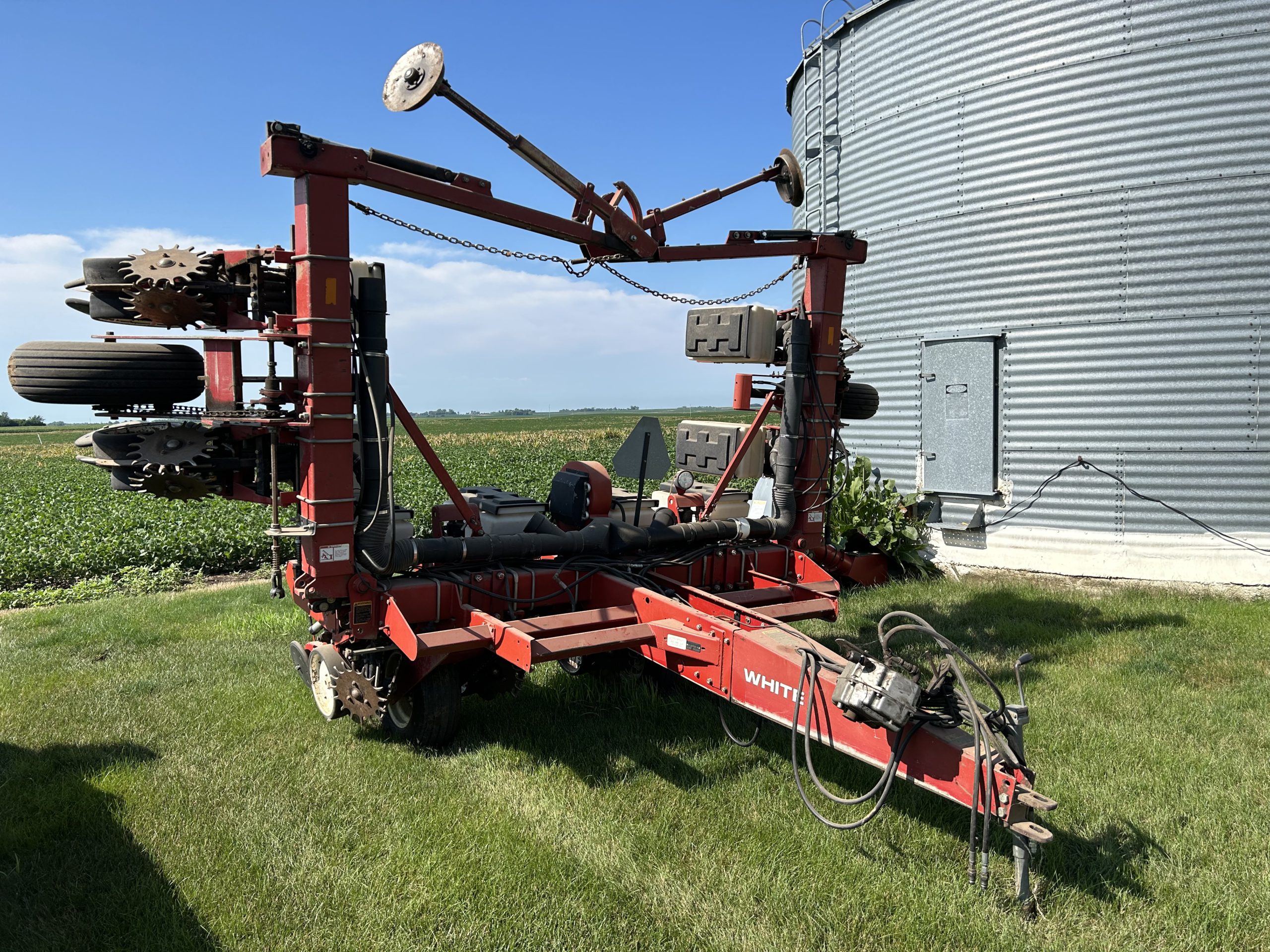 Equipment: CIH 4800 24’ FC, harrow; Sunflower 1232 21’ disk, harrow; White 6128 8 row planter, pto pump, monitor; 2-Demco 365 wagons; 2-J&M 350 bu. gravity wagons; 2 sets of wheels and tires for J&M wagon; Dakon 19’ 3pt. FC, harrow; Kohen 11 shank chisel; Sudenga 8’’x70’ auger, hopper, hyd., drive; Dakon 22’ 3pt. FC, harrow; 500 gallon pull type sprayer; flare box, hyd. hoist; 1969 GMC truck, bare chassis, 14′ & 16′ livestock gates.