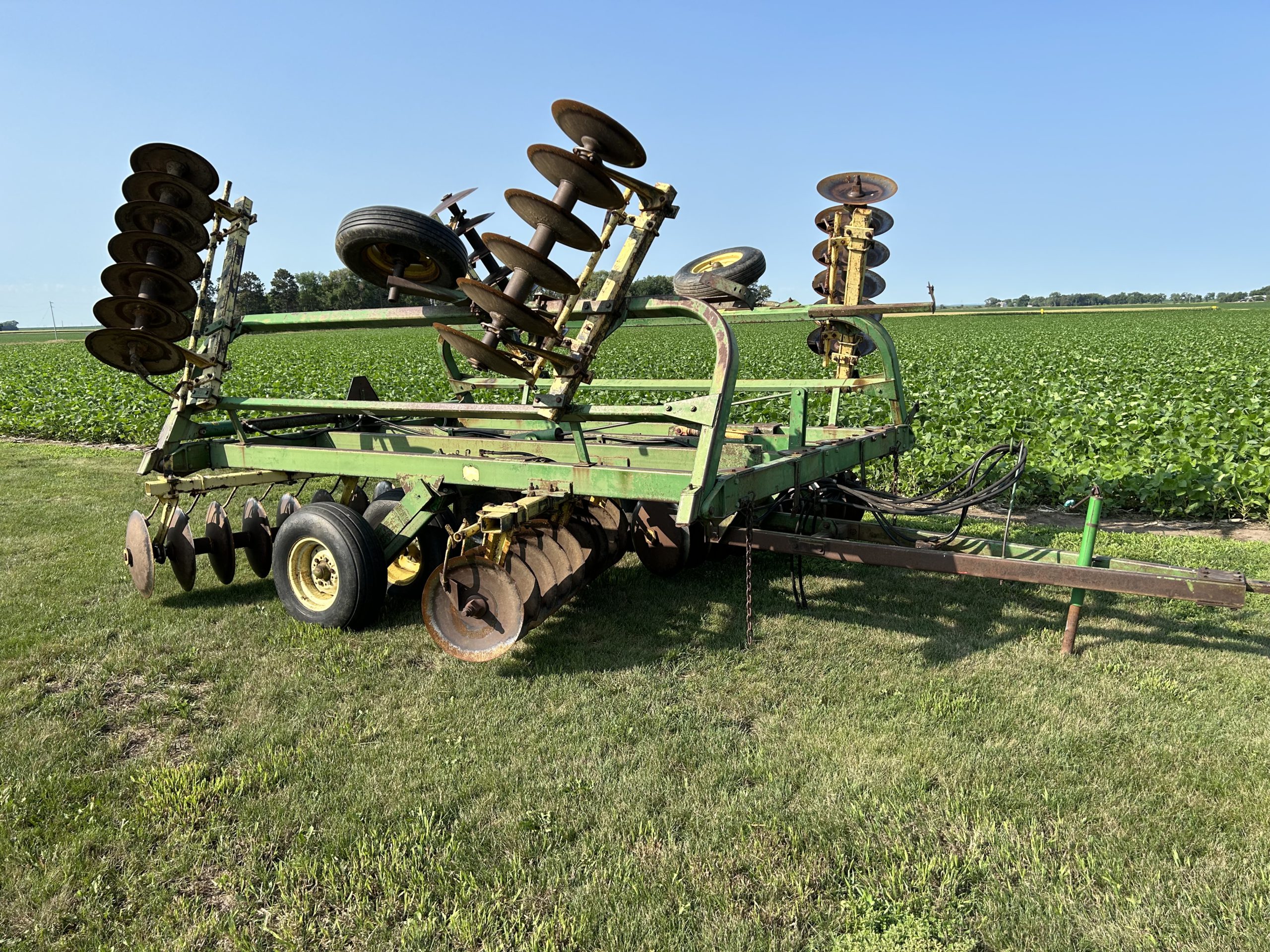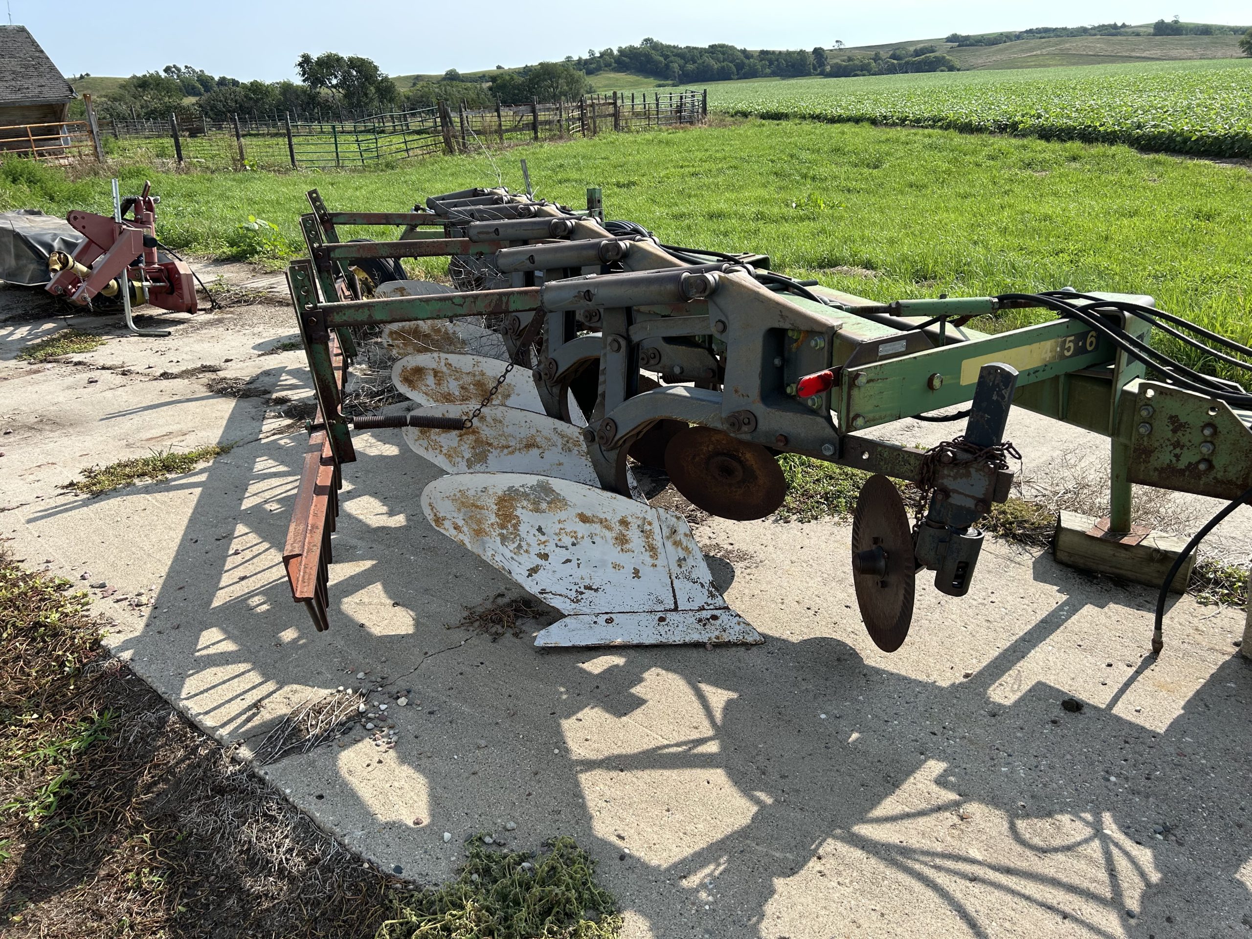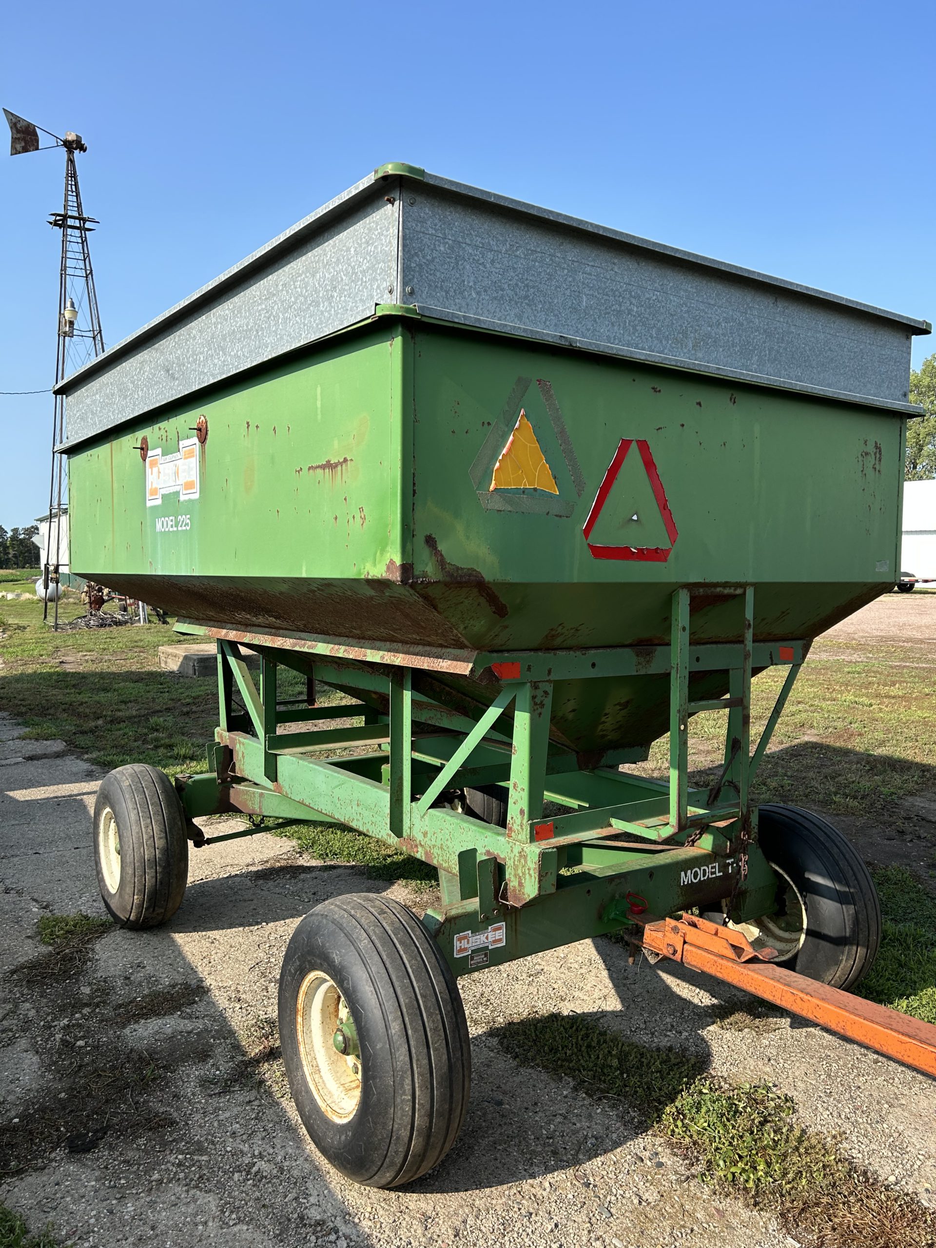 Equipment: Brent 640 gravity wagon, tarp, brakes; Harvest Ind. 10’’x72’ auger, pto, 15’ hopper reach, very nice; Mayrath 10’’x30’ auger, hopper, pto; JD 230 disk, 21’, bought new; Sitrex 10-wheel rake, hyd. fold; JD 2600 plow, 6B varwidth, AR, buster bar; NH 56 side delivery rake, restored, new bu/bearings/tires, 5 bar; NH 256 side deliver rake, 5 bar; BushHog HMG8 disc mower, 8’; Spray pup, 500 gal. tank, 60’ demco boom, Big Butch 500 gal pull type sprayer, hyd. pump; 2-Huskee 225bu. gravity wagons, 8 bolt gears; 230 bu. gravity wagon, tarp; Livestock loading chute, 30’’Wx12’L, rebuilt, nice.