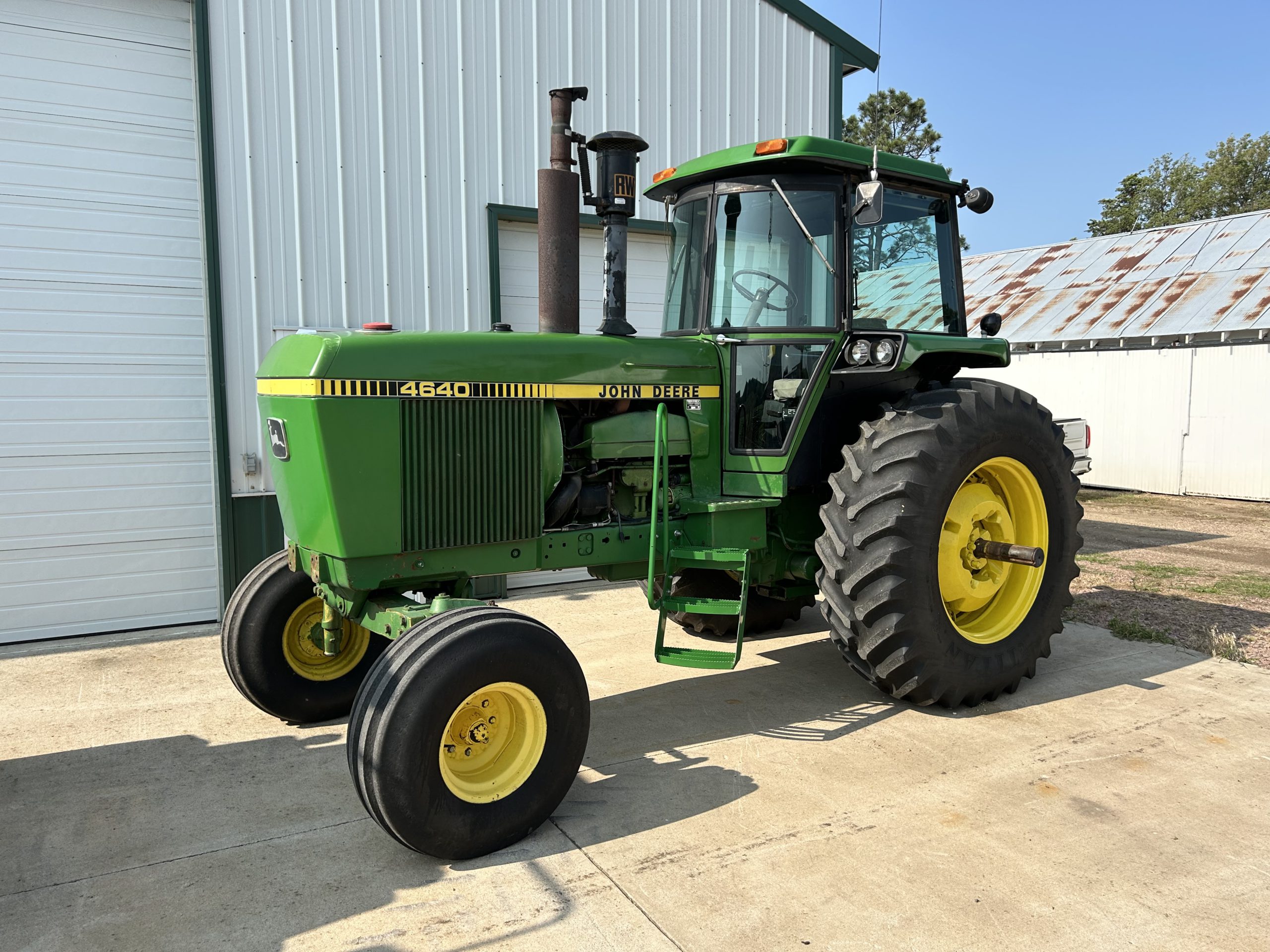 Ron Dreeszen Retirement (items location Spink, SD): 1981 JD 4640, 7,982 hrs., 20.8-R38 tires, 14L-16.1 fronts, 500lb weights, 3 hyd., powershift, AC, hammer strap, 2nd owner; 1979 JD 4640, 8,434 hrs., 20.8-R38 tires, 11.00-16 fronts, Complete OH at 6,200 hours (turbo/injection pump), 3 hyd., powershift, AC, bought new; 1964 JD 3020 gas, powershift, nf, 3pt., fenders, 18-1900 hrs. on overhaul, 2 hyd.