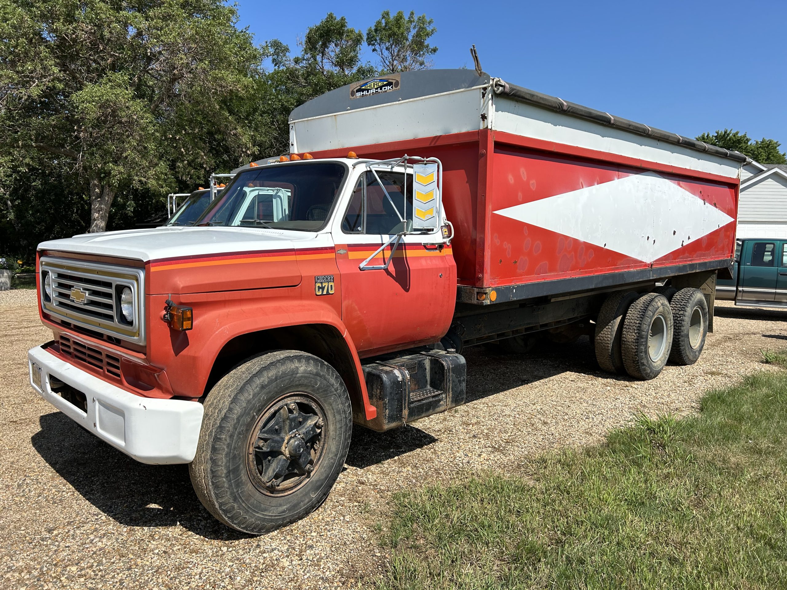 Grain Trucks: 1979 Chevy C70 grain truck, 21’ steel box, tarp, 5+2, 427 engine, 44K miles; 1973 Chevy C65, 366 engine, 18’ steel box, tag, tarp, 79K miles; 1955 Chevy G400 truck, sold with water tank and transfer pumps.