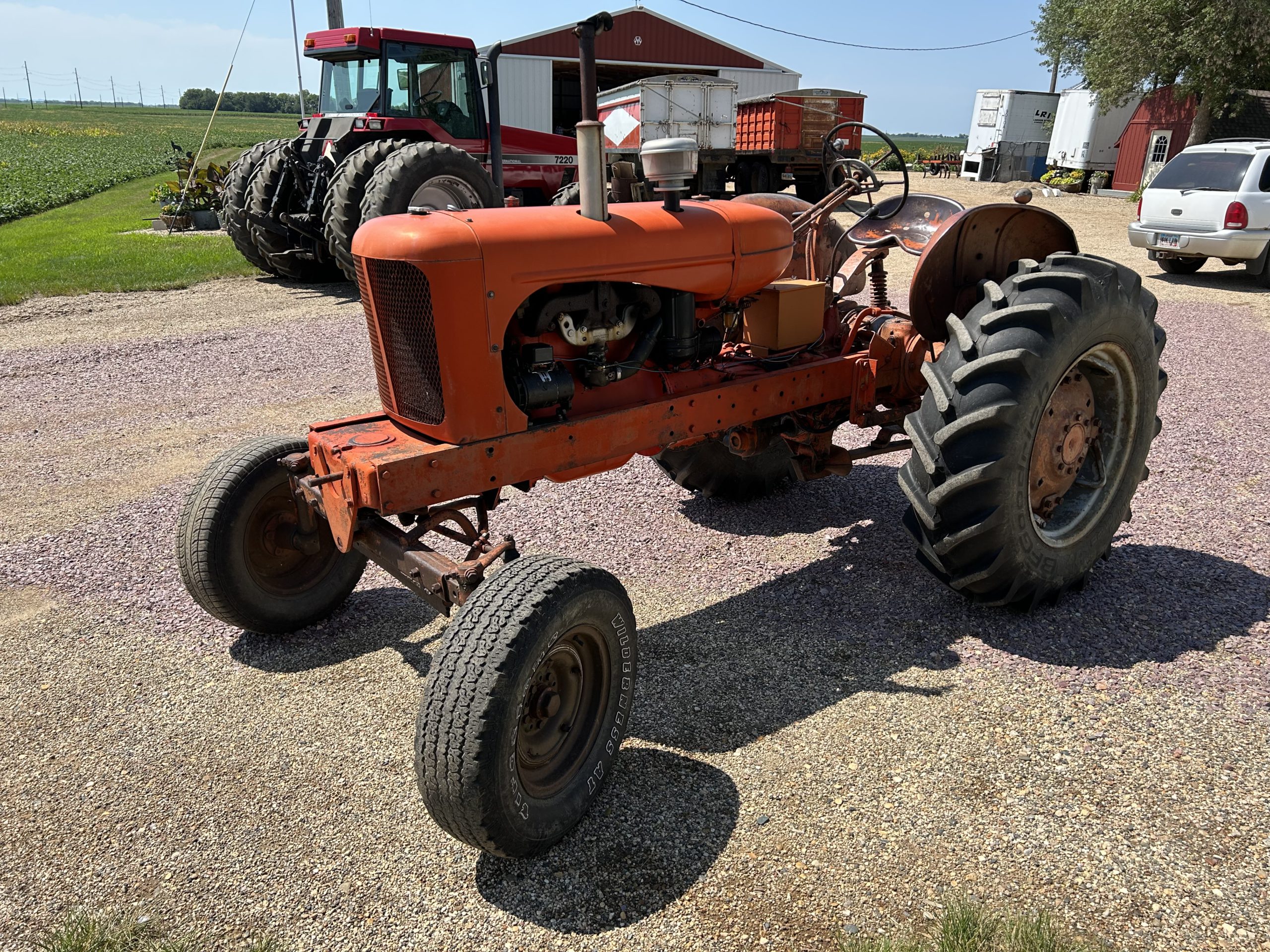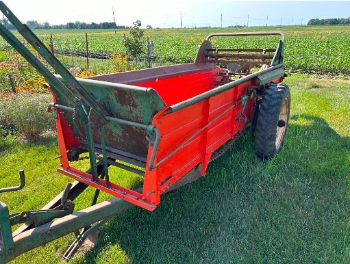 Larry Burma Estate (items location Tea, SD): CIH 7220 Magnum, 42’’ rear tires (like new), 14.9-28 front tires (like new) MFD, duals, 5,794 hrs., 3 hyd., dual PTO, nice; Woods Dual 355 loader (fits 7220 sold separate) qt, good bucket; Woods pallet fork; CIH front weights & bracket; CIH QH; AC WD 45 tractor, wf, runs good; Bush Hog BH17 3pt. mower; Spreader grade 3pt. grader; Kewanee 78 3pt. blade, gauge wheels; New Idea manure spreader, ground drive, nice! wood flatbed; 500 gallon pull type sprayer; chemical tote, pump, meter.
