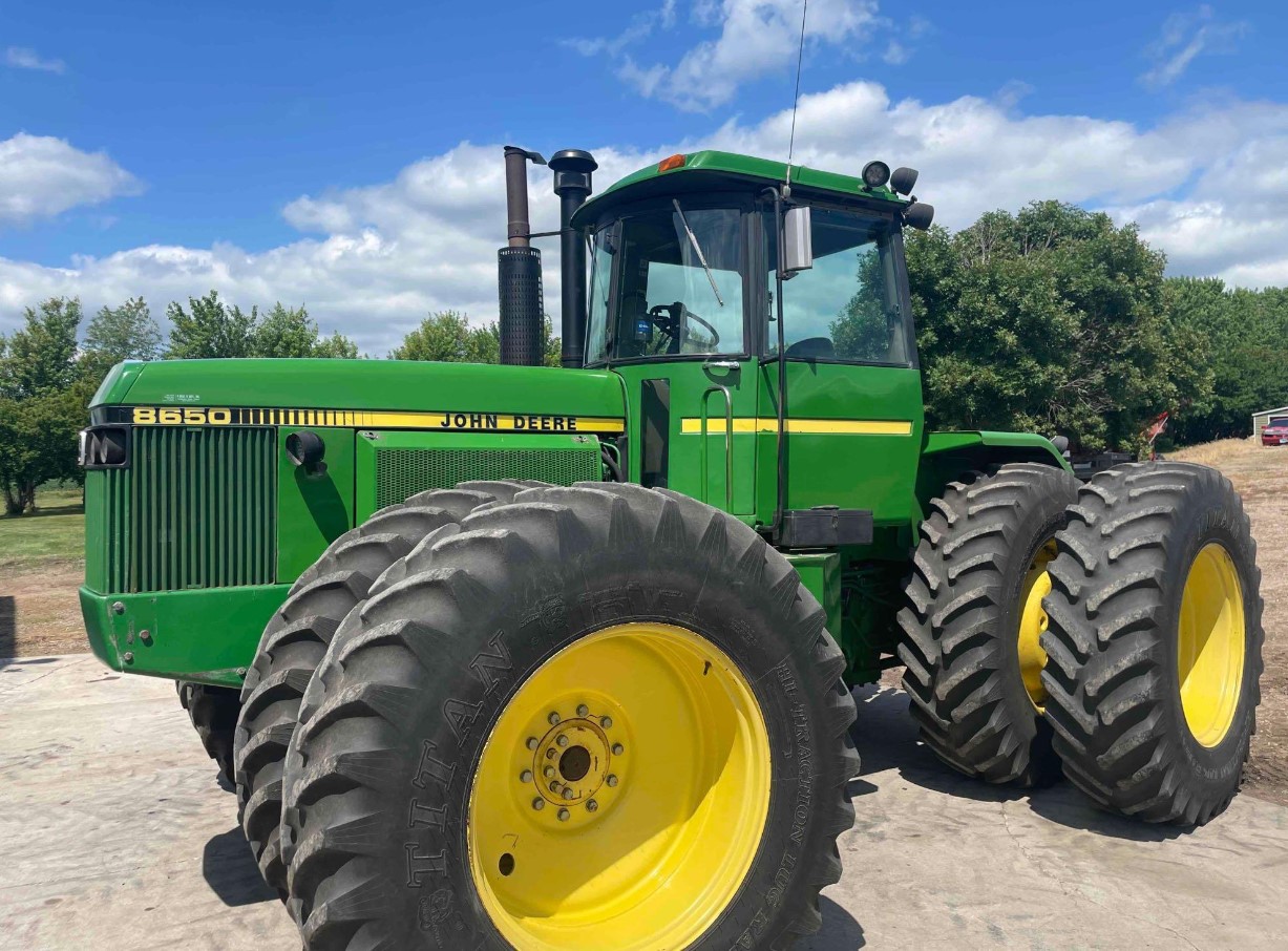 Rick Jandl Equipment (items location Canton, SD): JD 8650 4wd, 10,800 hrs., complete OH, injection pump, 2 speed, PTO rebuilt at 7,500 hrs., LED lights, newer cab kit, 4 hyd., heat/AC, 3 pt., PTO, excellent tires; Mobility 800 fertilizer spreader, Raven 660 monitor, Ag leader spinner control, 8-ton, 60’ spread, 2-camera’s, loaded with options; 24’ GN trailer, triple axle water trailer, 1600 gallon tank, 3 induction cones, toolbox, hose reels, 12V pump, 25’ boom, must see to appreciate; Krause 30’ disk, 21’’ FB/21.5’’RB; Balzer 2000 stalk chopper; Farm Fans AB-8B grain dryer, auto-batch; 7.5hp pto cart.
