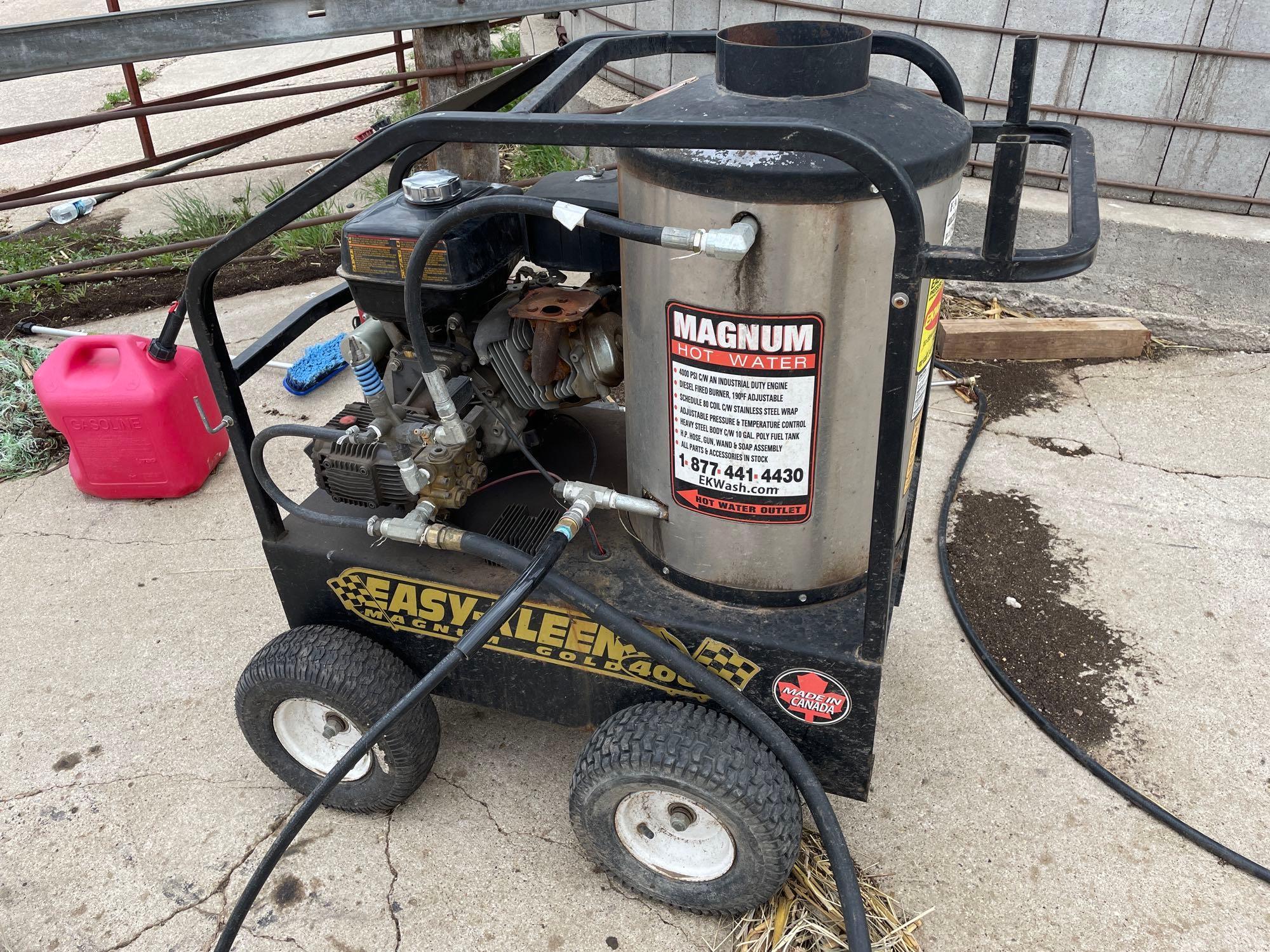 Tools: Lincoln Powermig 255XT welder: Campbell Hausfield 60 gallon upright air compressor: HVY duty log chains: handy man jacks: Milwaukee 8” metal cutting saw: ratchet straps: socket sets: hammers: wrenches: 3/4” Sioux drill: 10” table saw: impact sockets: cotter pins: diamond connector links: Stihl MS310 chainsaw: Craftsman 1/2HP bench grinder: Easy Kleen Hot Water 4000 PSI gas pressure washer—elec start, hot water runs off diesel: Karcher 3500 PSI gas pressure washer