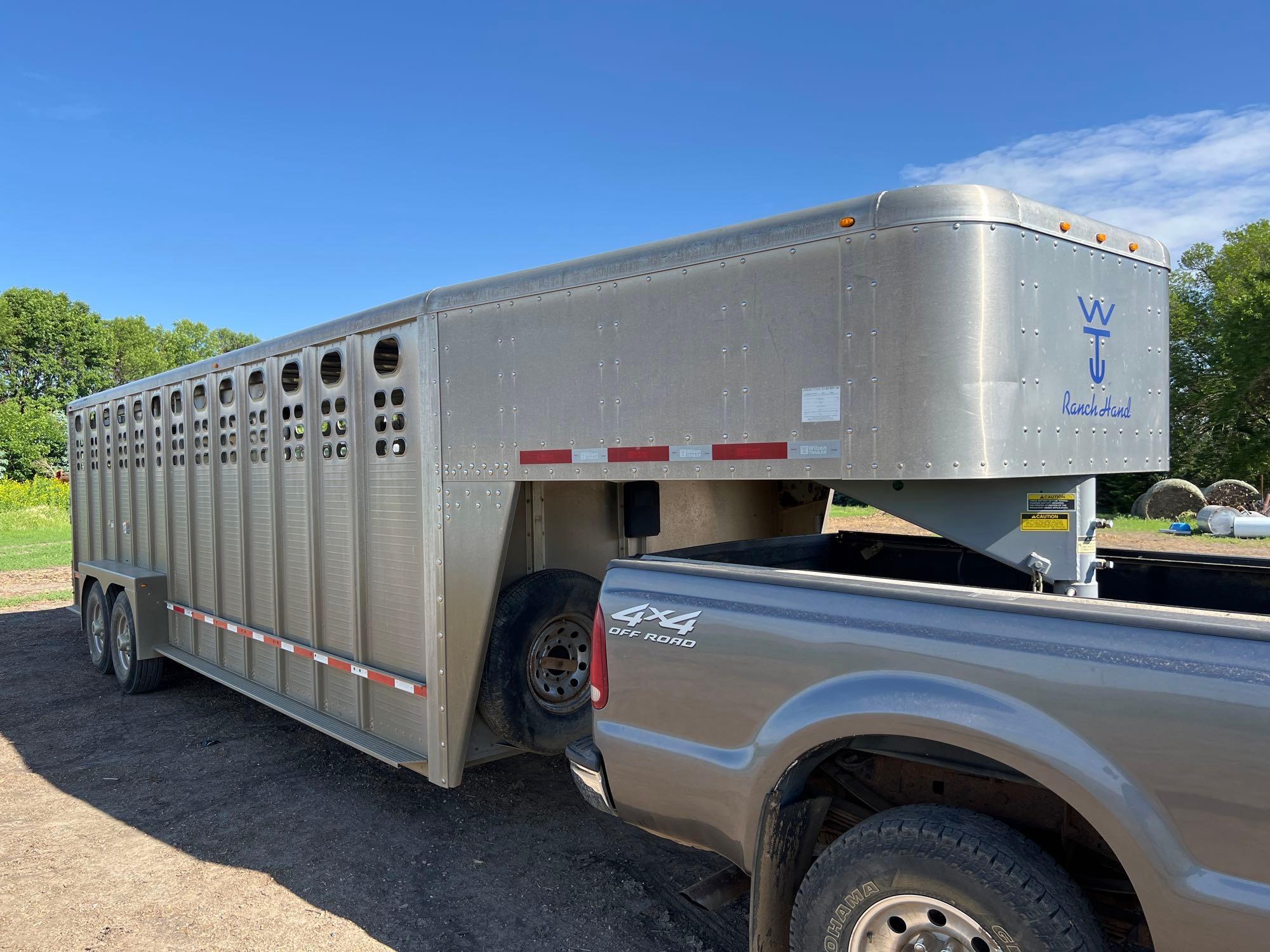 Livestock Trailer: 2011 7ft x 24ft Wilson Ranch Hand Aluminum Gooseneck Livestock Trailer—VIN-1W1B4BJC4BH539734, 2 center gates, like new 235/85R16 14 ply tires
