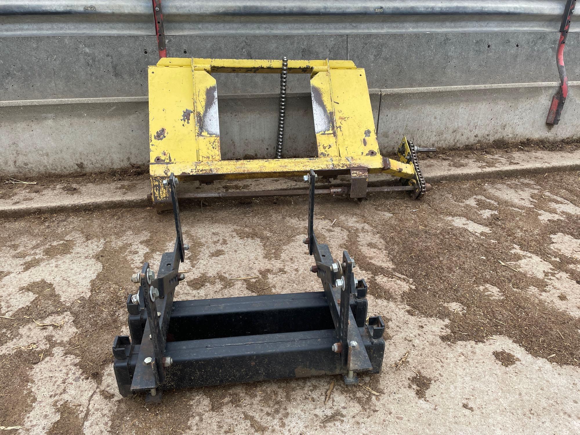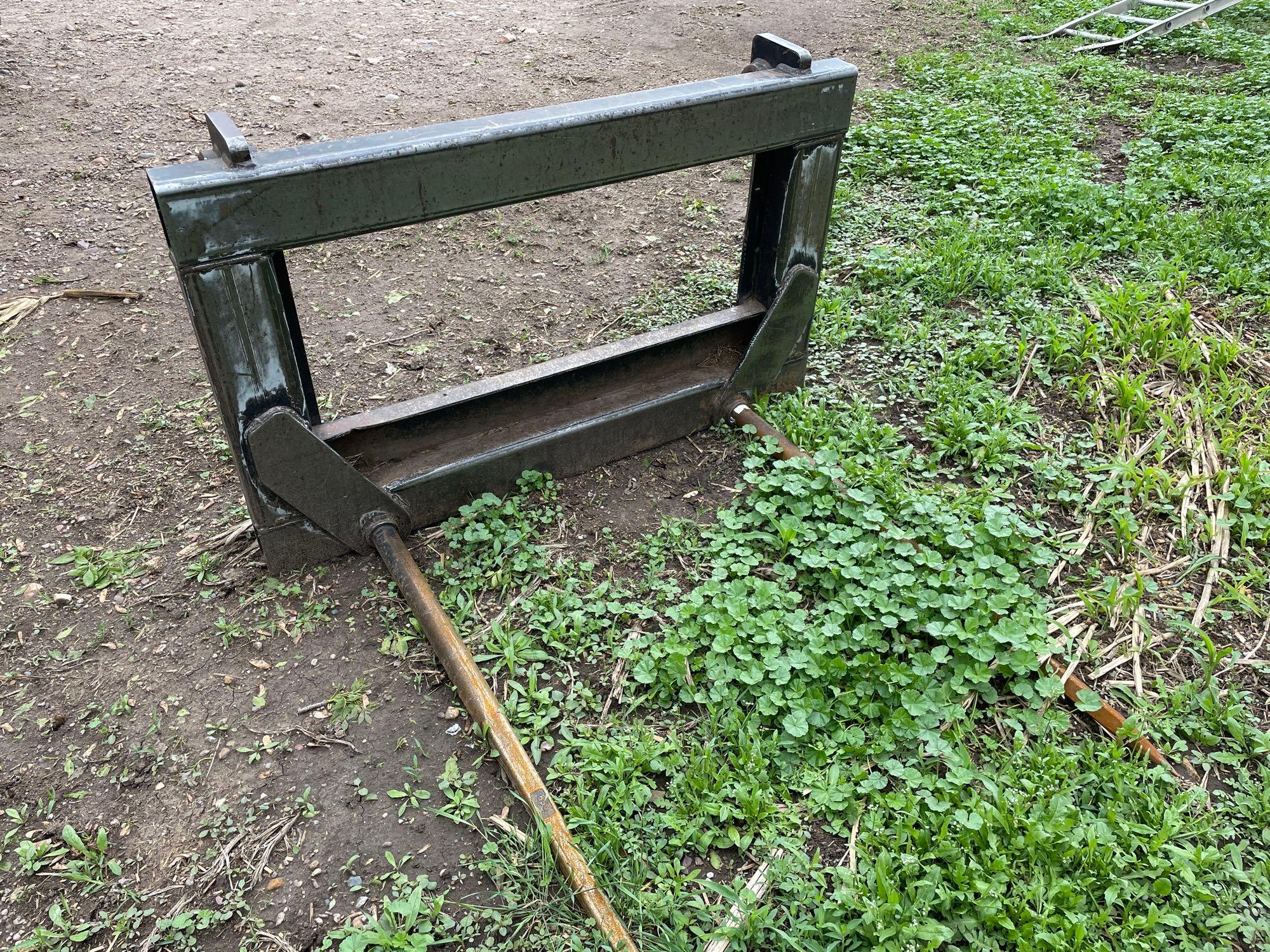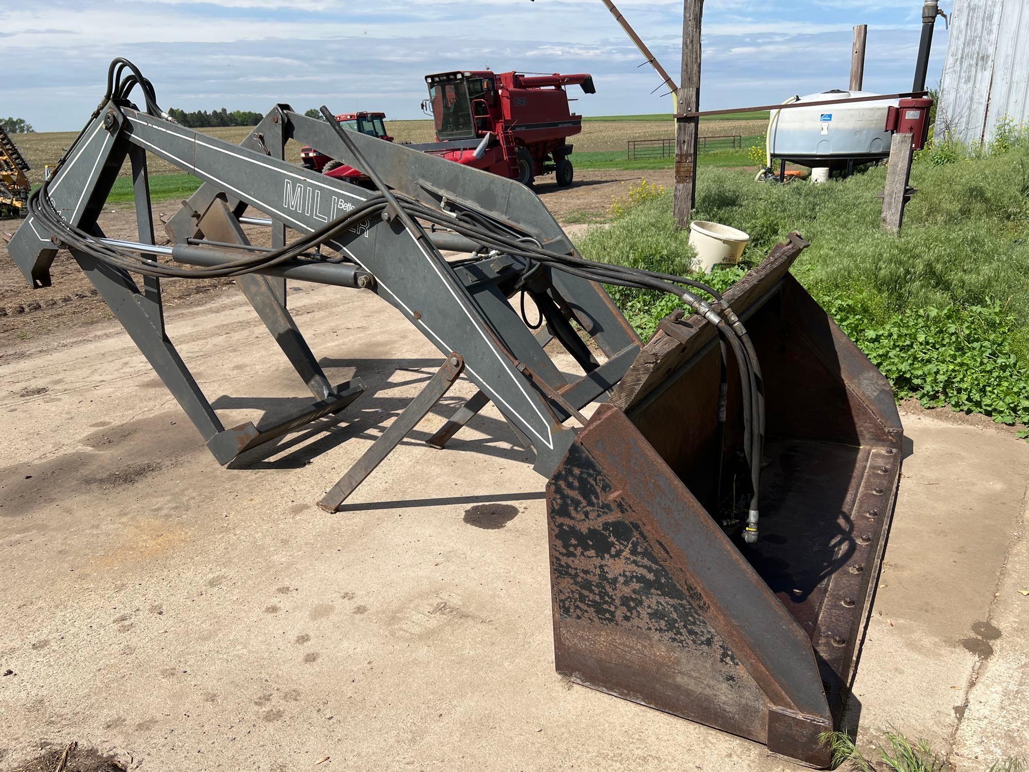 Loader/attachments: Miller P12 Loader—7ft bucket, IH 1086 mounts: Miller single prong bale spear-fits P12: 2 prong loader bale spear—fits P12: Westendorf single prong bale spear: 30” x 148” steel pallet fork construction platform-Westendorf loader mount: