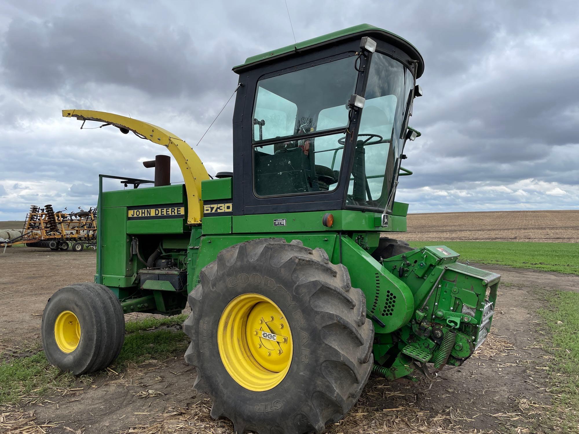 Self Propelled Forage Harvester: 1990 John Deere 5730 SFP chopper-SN-505730X851970, tach shows 799 hours (tach has been replaced, owner believes there are approx. 4400 hours on the chopper), chopper has had approx. $10,350.000 spent on the machine since 2017(chopper had a new upper front feed roll w/ detector, feed roll shaft, upper rear feed roll, lower front feed roll w/ detector, lift arms, bearings, shearbar kit (all since 2020) and a complete OH approx. 230 hours ago (OH completed in 2017), paperwork is available for all work performed). heat, a/c, radio, 23.1R26 front tires, 16.5-16.1 rear tires, Agri speed hitch sold separate: truck spout —sold separate: