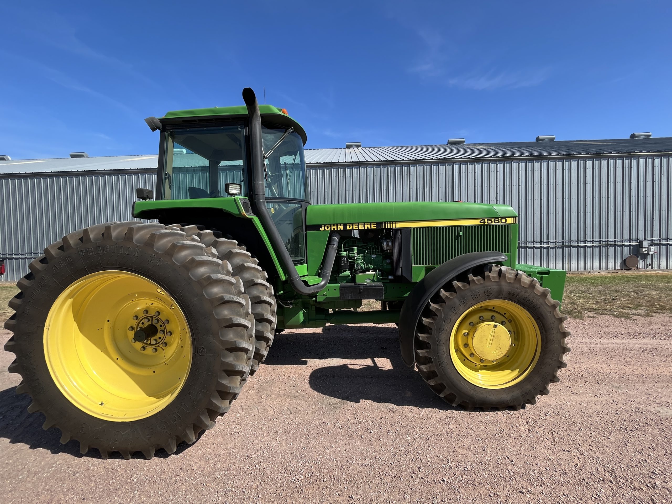 1994 John Deere 4560, SN: RW4560P004776, MFWD, front fenders, powershift, tach shows 9,348 hours, 18.4-42 rear tires, 14.9-30 front tires, duals, toolbox, factory radar option, long axles, 3 hydraulics, 20 front weights, quick hitch, hammer strap.