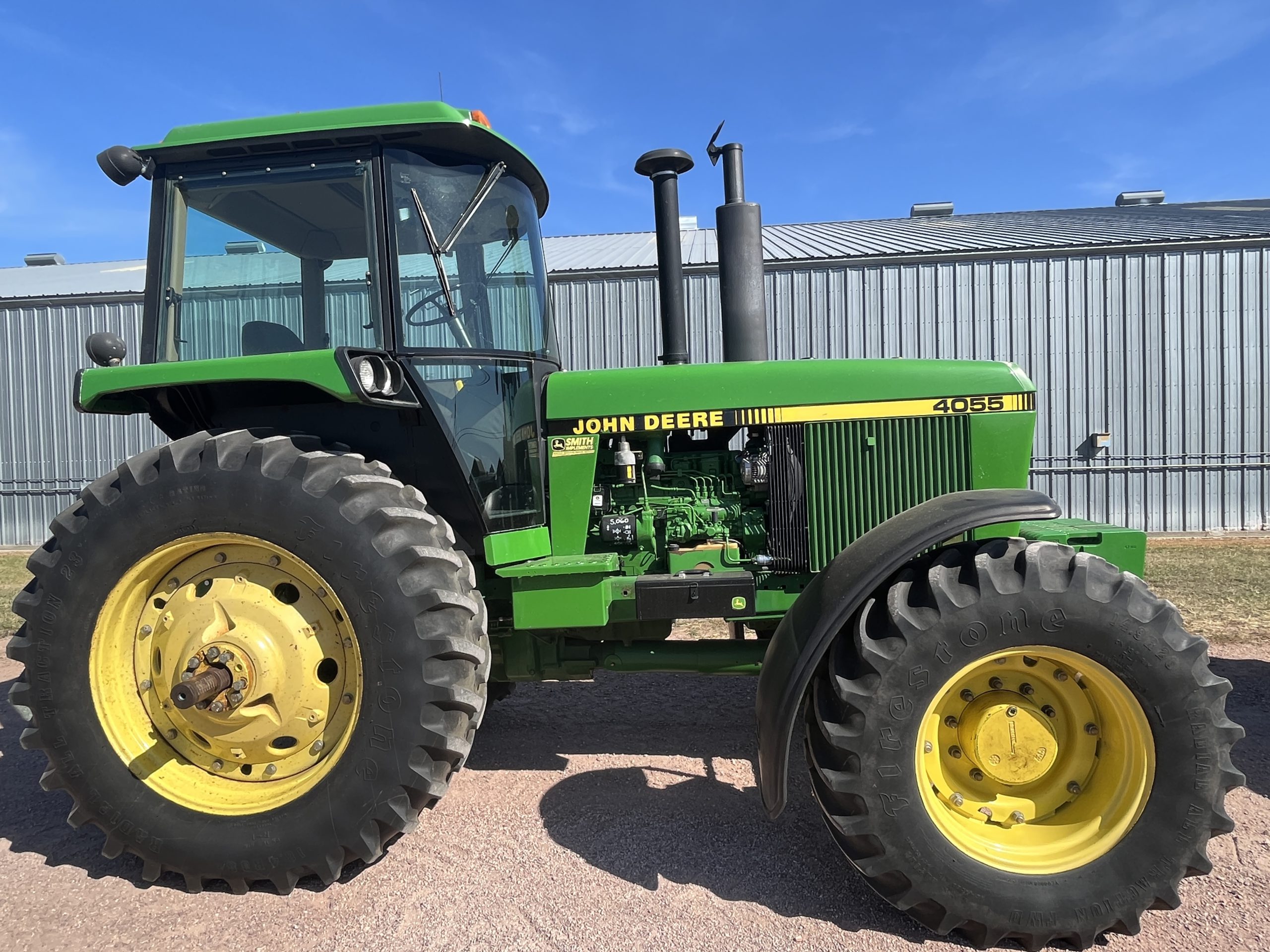1992 John Deere 4055, SN: RW4055P010157, powershift, 2wd, tach shows 4,840 hours, 18.4-38 rear tires, 14L-16.1 front tires, 3 hydraulics, factory radar option, long axles, toolbox, 14 front weights, quick hitch, hammer strap.
