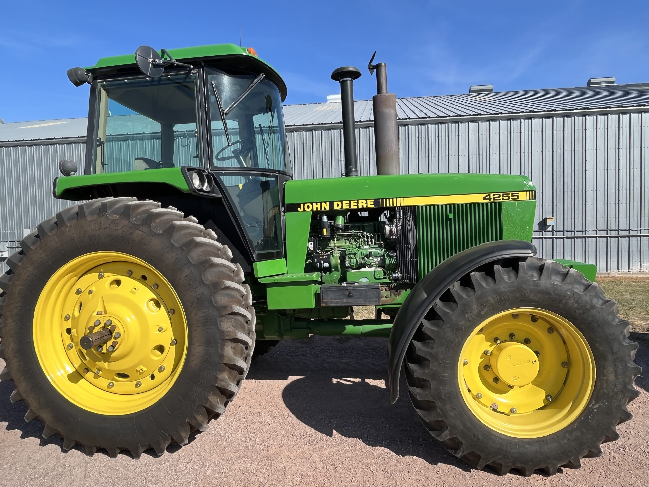 1992 John Deere 4255, SN: RW4255P011844, last 4255 made, 2wd, powershift, new 18.4-42 rear tires, 11.00-16 front tires, tach shows 3,555 hours, toolbox, 3 hydraulics, 14 front weights, quick hitch, hammer strap, the original set of factory ordered wheels and 420/80/46 rear tires will come with the tractor.