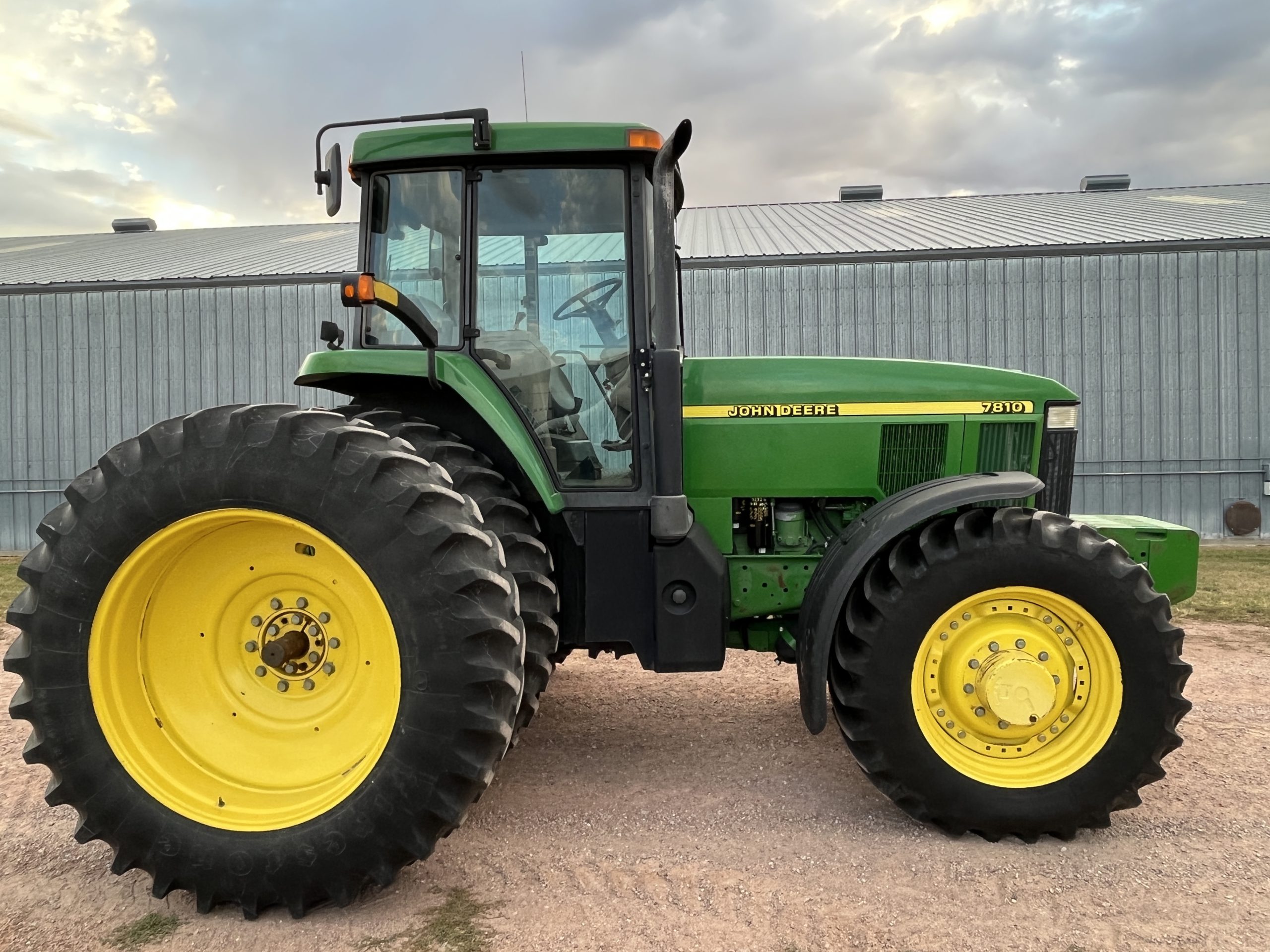 2003 John Deere 7810, SN: RW7810A091124, MFWD, front fenders, 20 speed auto-quad with E range, field office, left hand reverser, tach shows 5,537 hours, 18.4-42 rear tires, 16.9-28 front tires, 3 hydraulics, toolbox, 14 front weights, 450 lb. rear weights, quick hitch, hammer strap.