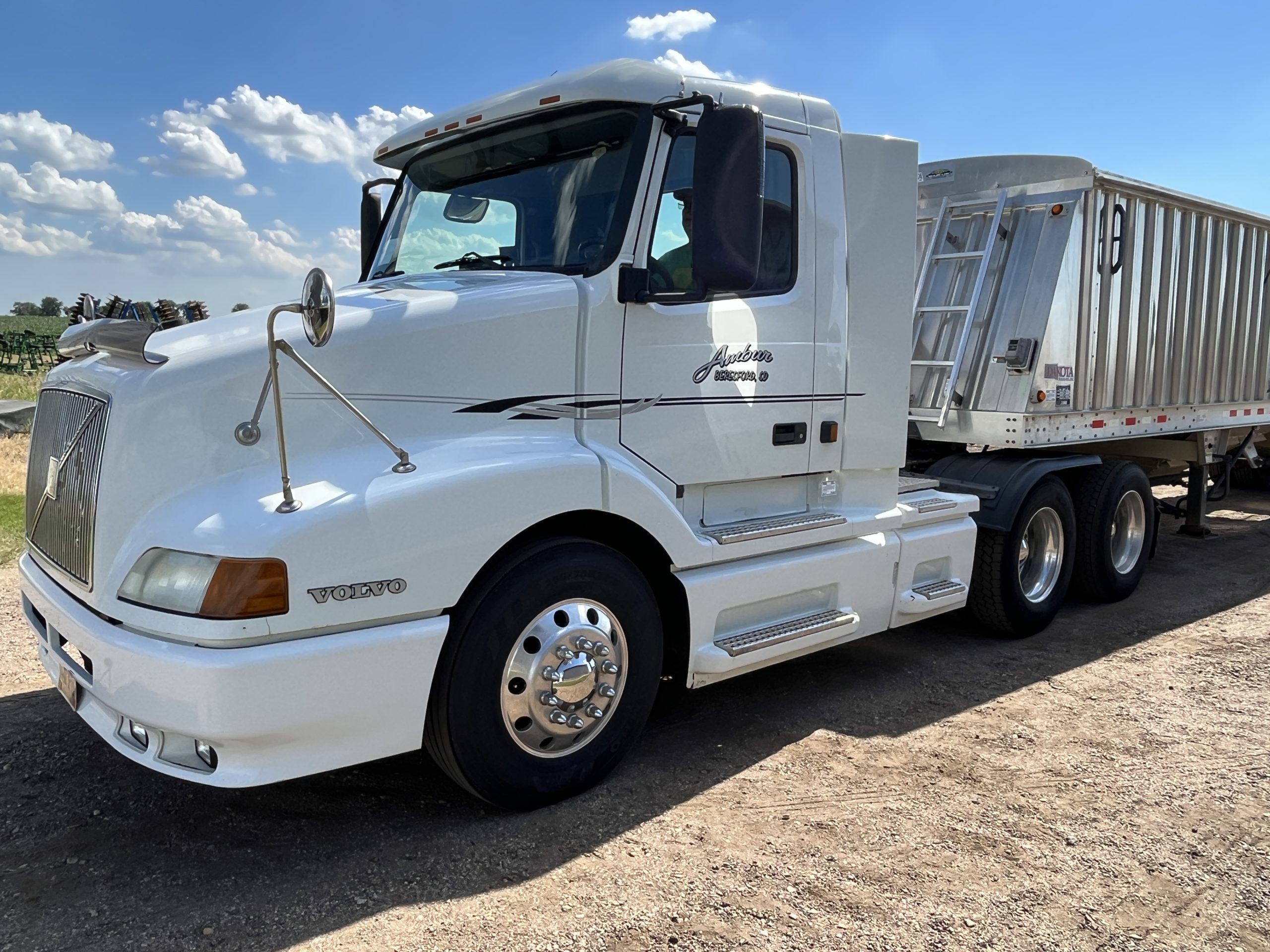 Semi-Trucks/Trailers: 2005 IH 9400I semi, 740,120 miles, ISX Cummins, 3 pedal auto, AC, 234’’WB; 2001 Volvo semi, N14 engine, 748,958 miles, 3 pedal auto, new steer tires, new front axle rear tires, AC; 2012 Dakota 38’ aluminum grain trailer, 24.5 tires, electric tarp, spring ride; 2004 Merrit 38’ grain trailer, aluminum, electric tarp/traps, spring ride; 16′ bumper hitch trailer.