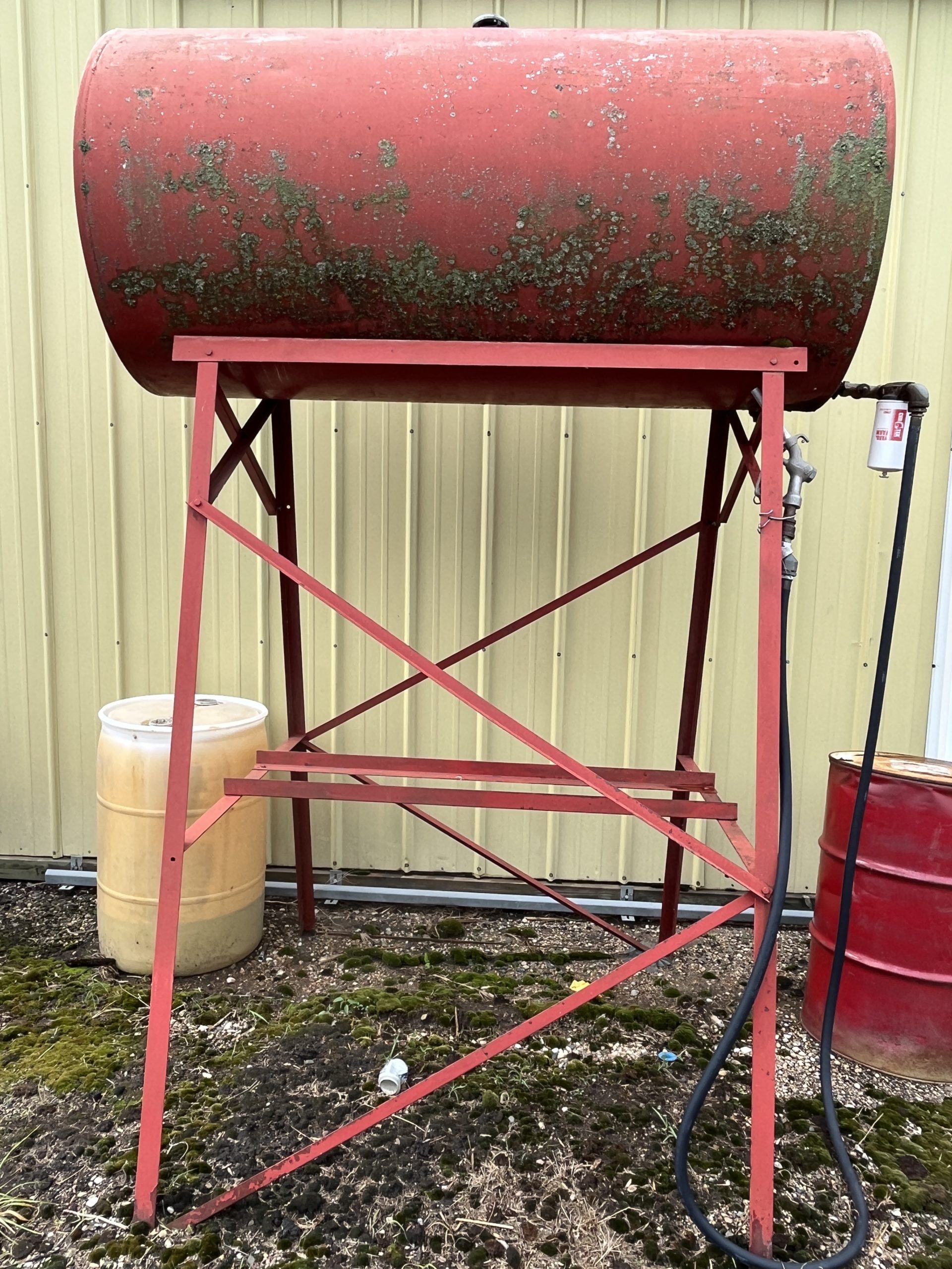 Fuel Tanks/Misc.: 1,000-gallon diesel tank, electric pump; 500-gallon diesel tank, electric pump; 300-gallon gas tank, on stand; 1000-gallon water tank, 500-gallon propane tank, engine/trans. bulk tanks.