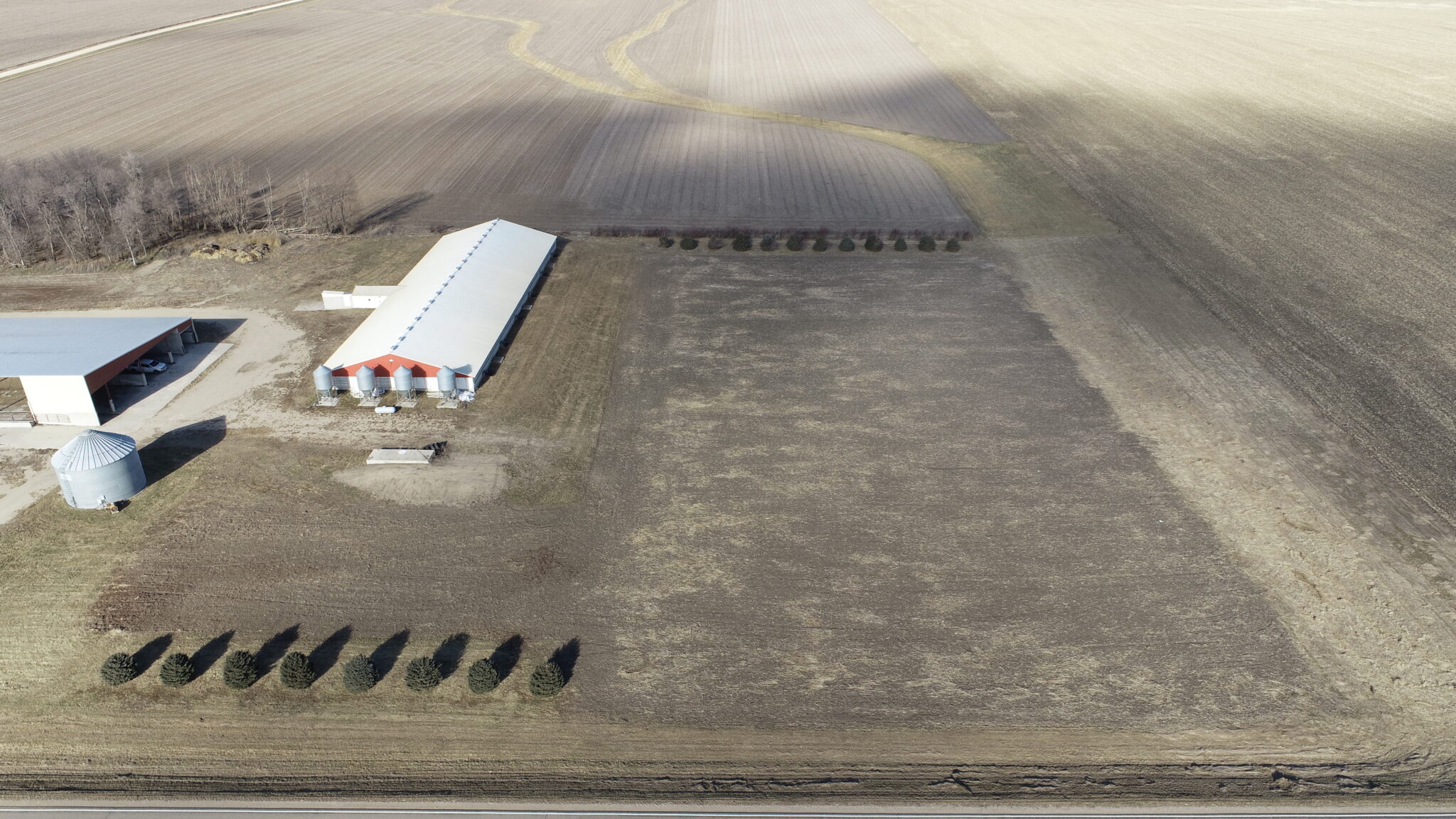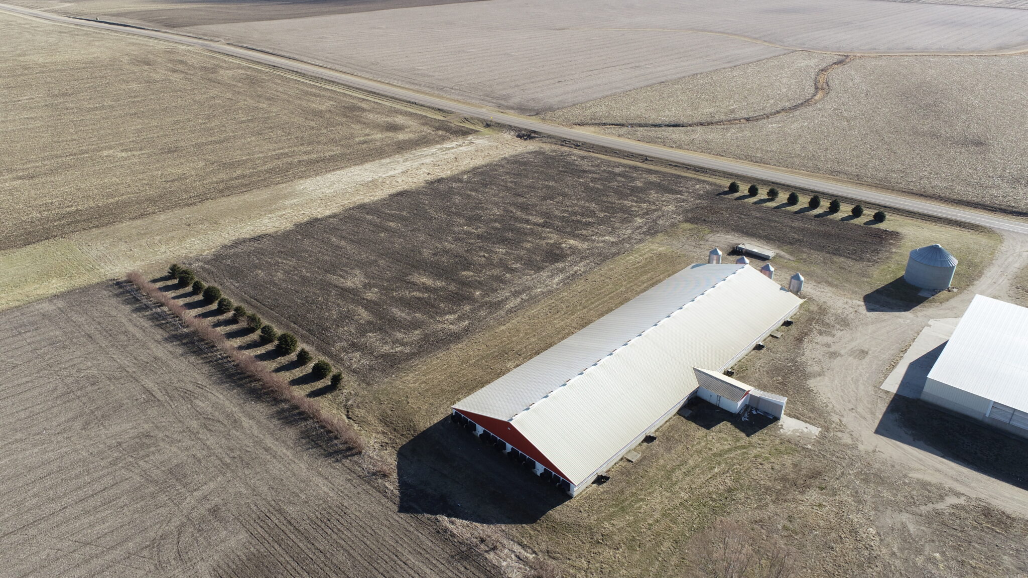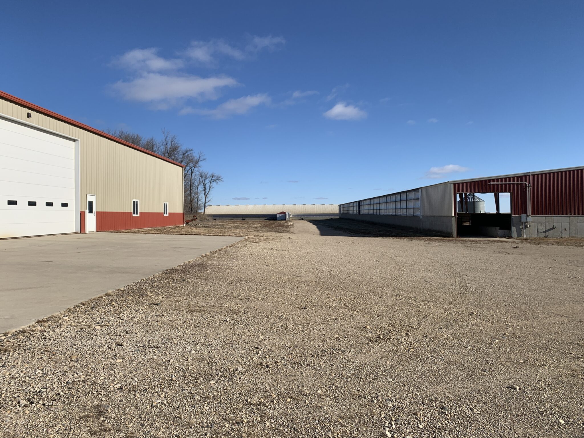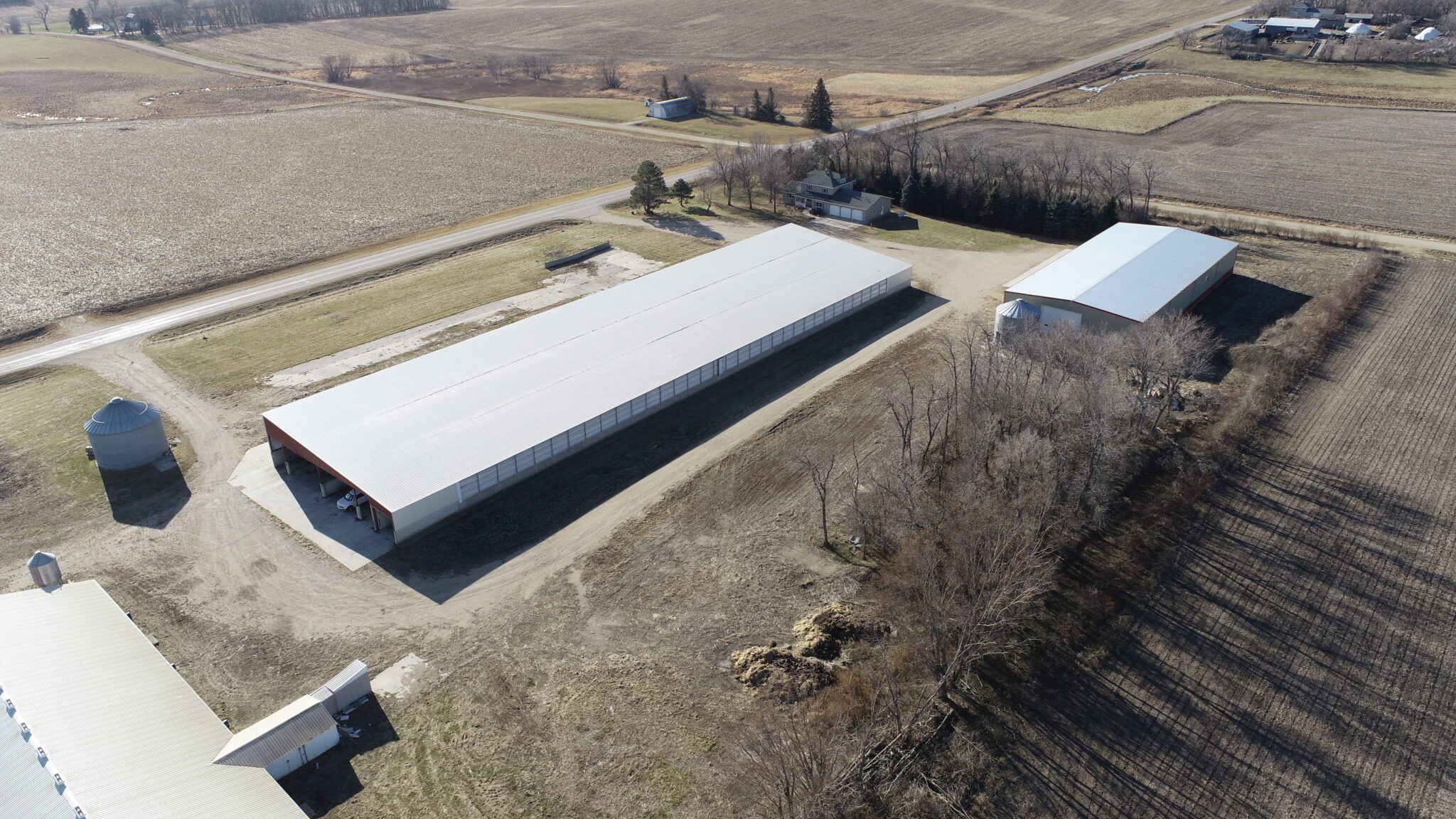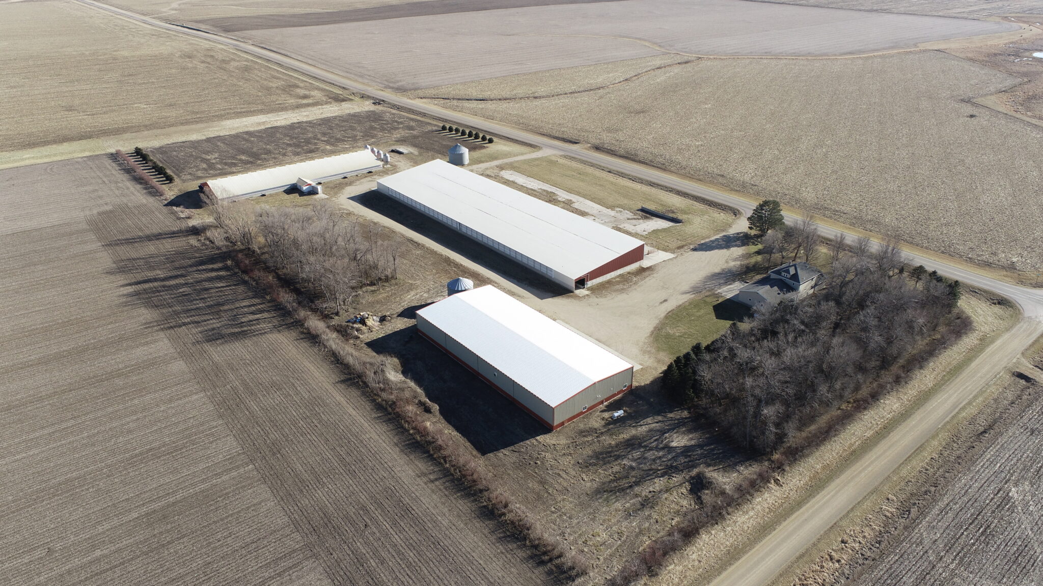 This Acreage Features a 2 Story Home, a 100 x 390 Monoslope Cattle Building With Attached Commodity Bays Built In 2006, A 2400 Head Hog Finisher Built In 2001, A 80 x 180 Machine Shed With Shop Area & Cold Storage Built In 2014 & This Acreage Is Located Adjacent To A Hard Surface Road!