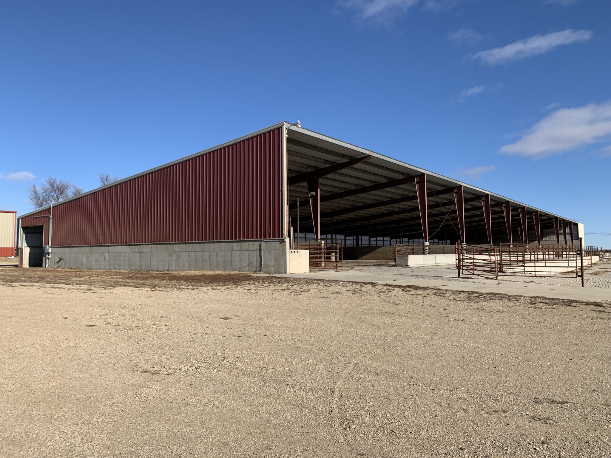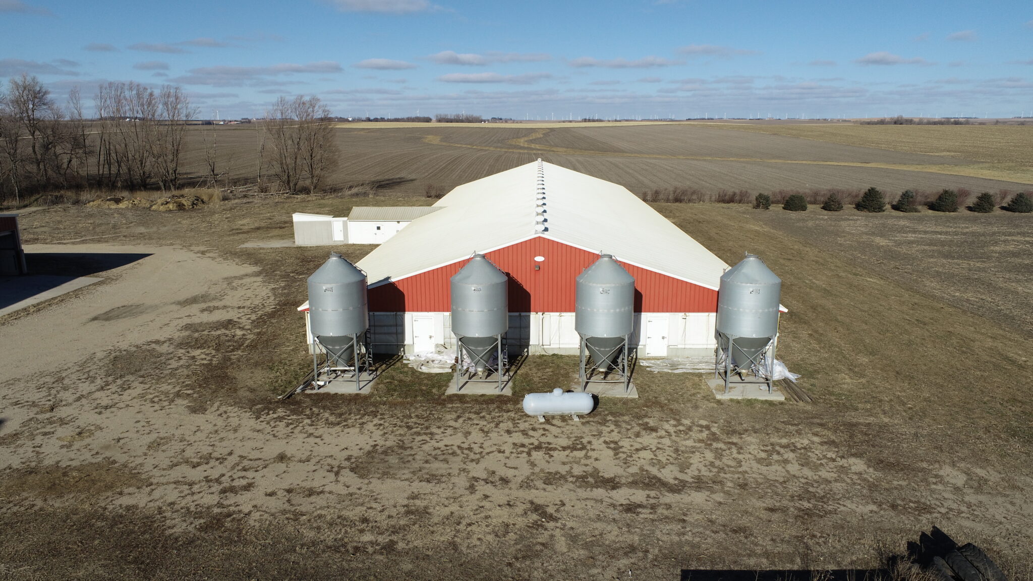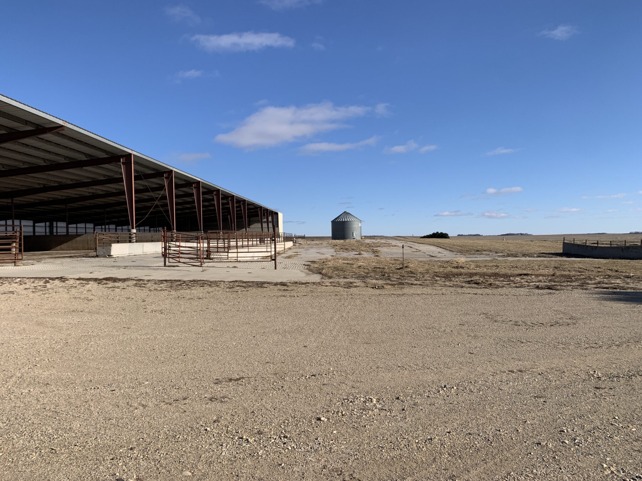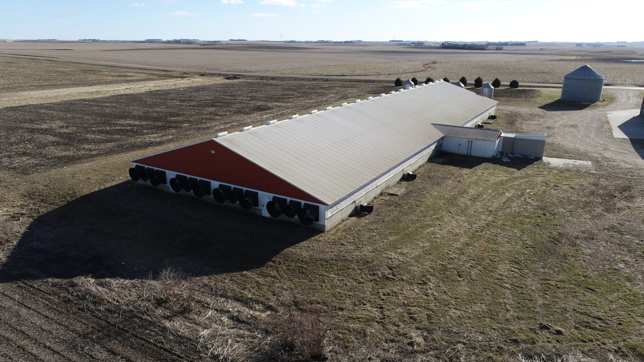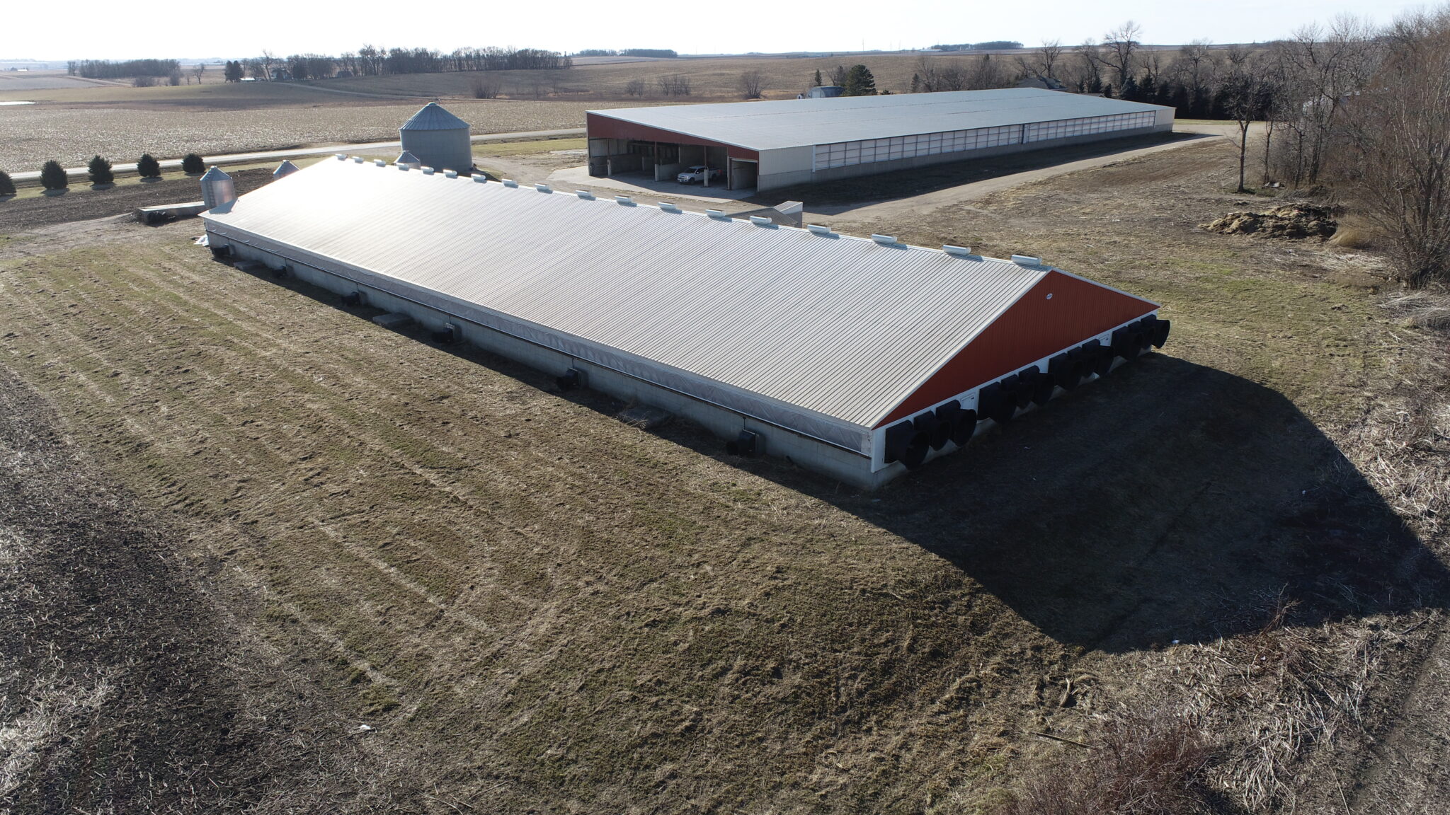 This Acreage Features a 2 Story Home, a 100 x 390 Monoslope Cattle Building With Attached Commodity Bays Built In 2006, A 2400 Head Hog Finisher Built In 2001, A 80 x 180 Machine Shed With Shop Area & Cold Storage Built In 2014 & This Acreage Is Located Adjacent To A Hard Surface Road!