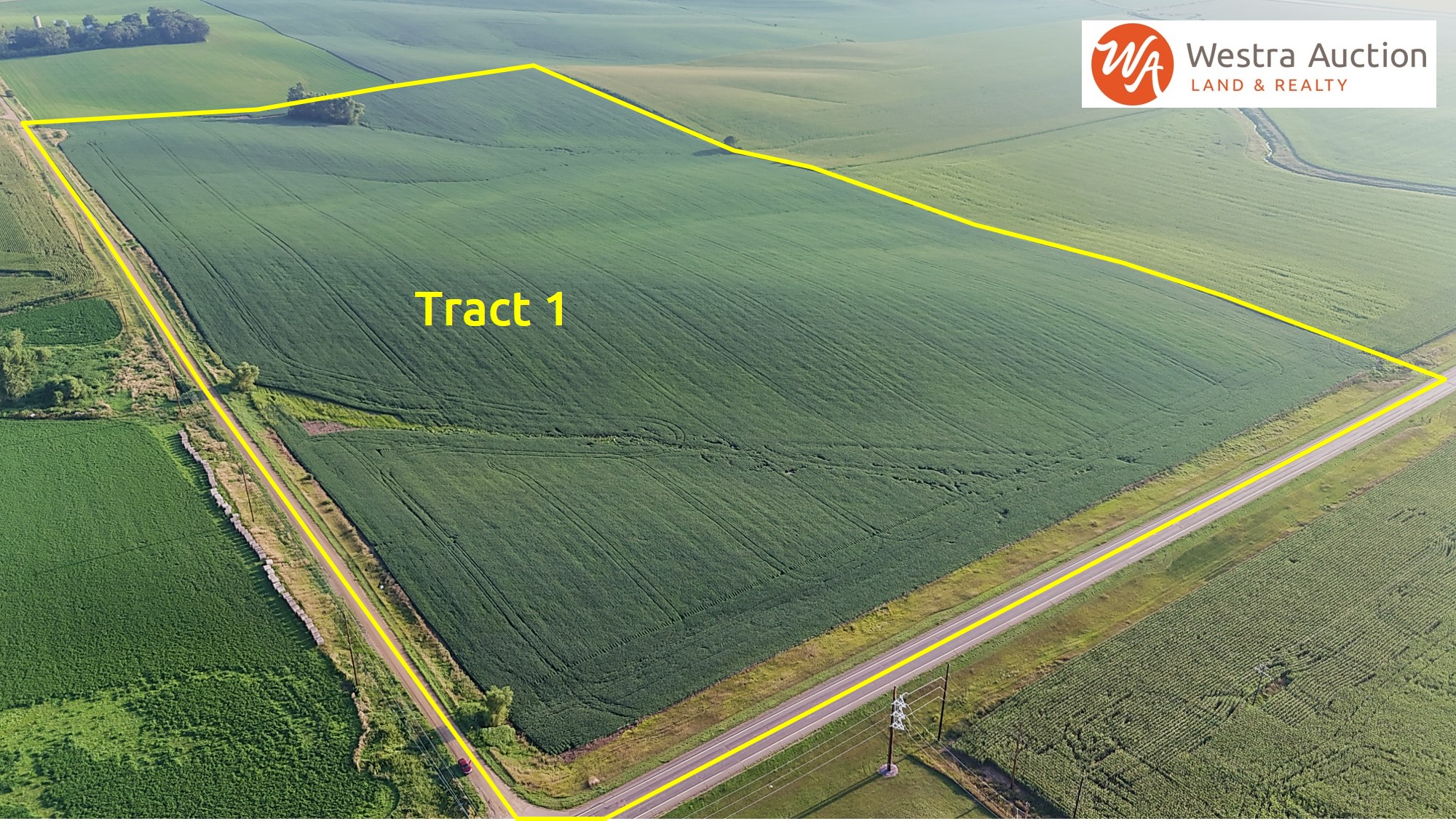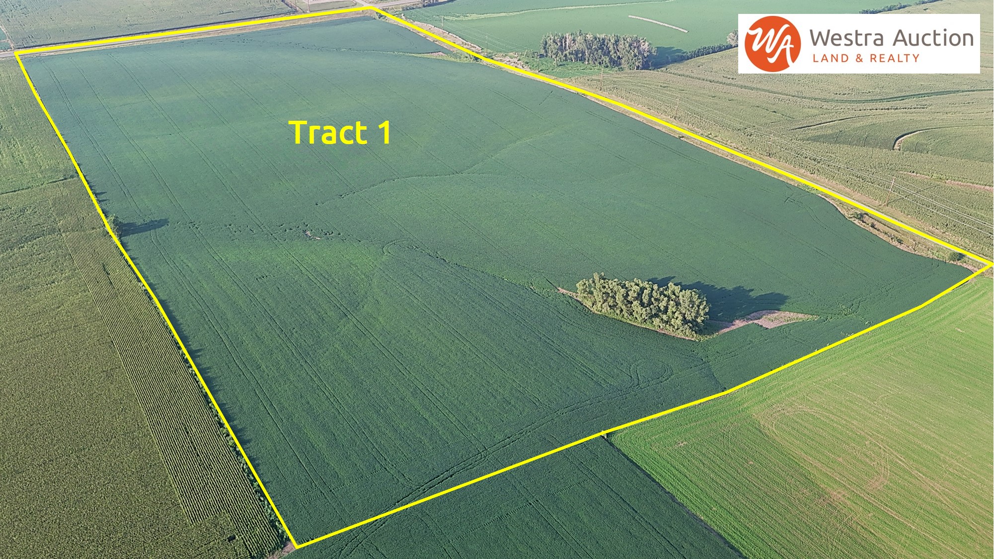 Tract 1: 77.61 +/- acres, From Alcester, SD, 3 miles north on SD Hwy 11, 1 mile east on 298th St, and ½ mile north on 480th Ave. The land is located on the west side of the road. Legal Summary: E1/2 NE1/4 *Less Lot H-1* 3-95N-49W, Union County, SD. Actual acres sold based on survey results. Predominate soils: Crofton-Nora Complex, 6-11% slopes, eroded, Alcester Silty Clay Loam, 2-6% slopes, and Moody Silty Clay Loam, 2-6% slopes. The topography of the land is rolling and includes some drain tile. According to Surety/AgriData, the land has a productivity index of 66.8.