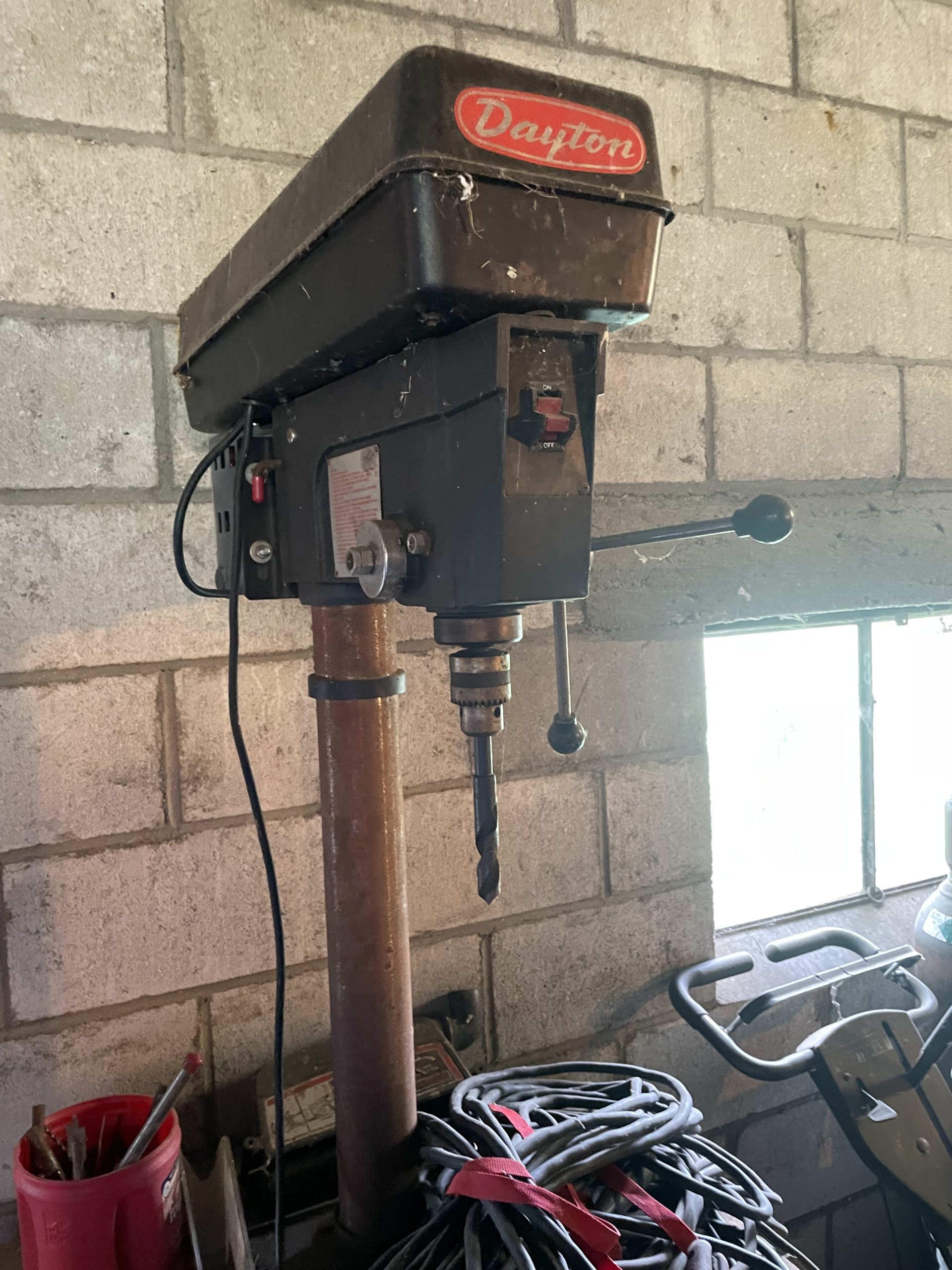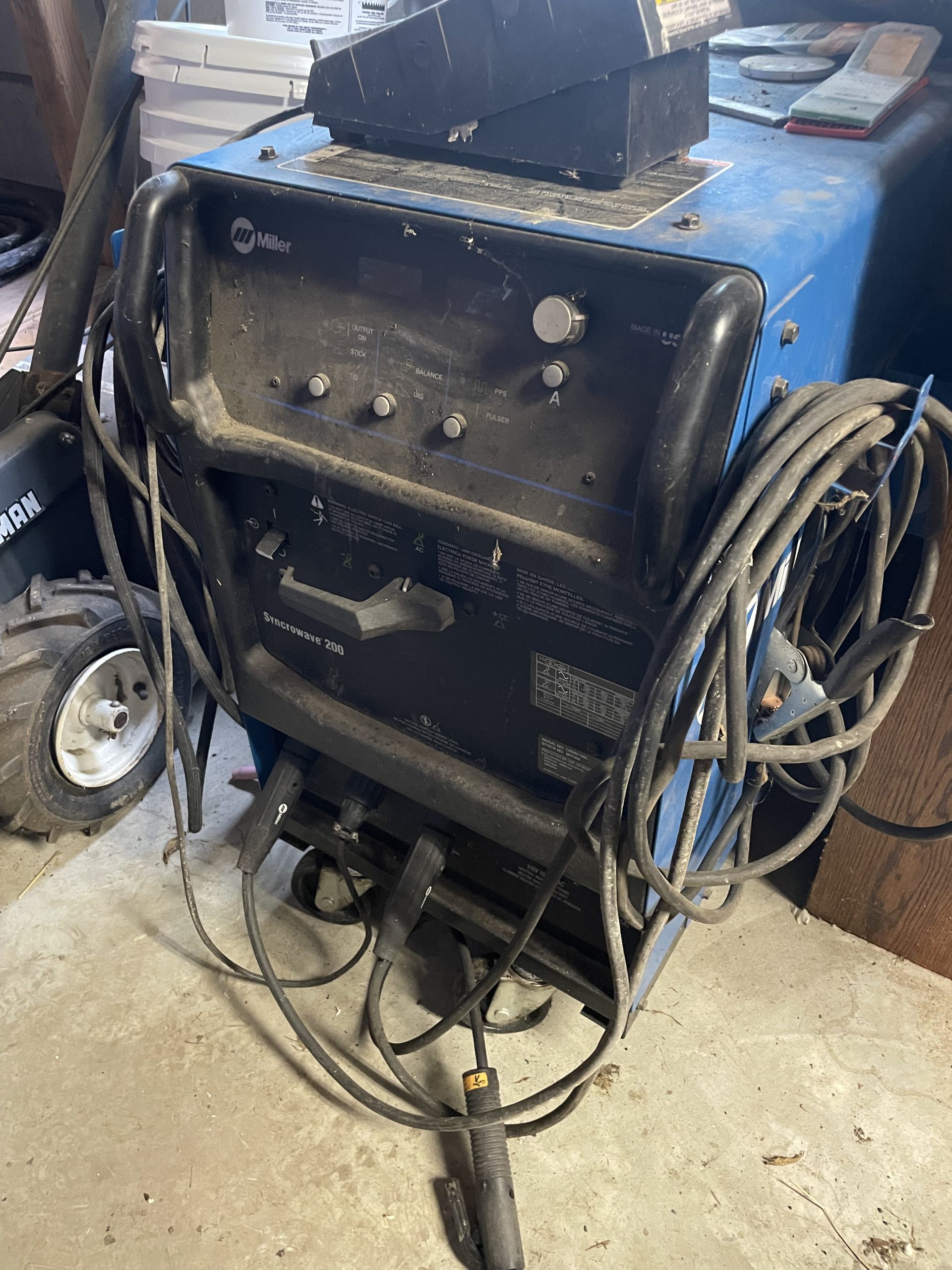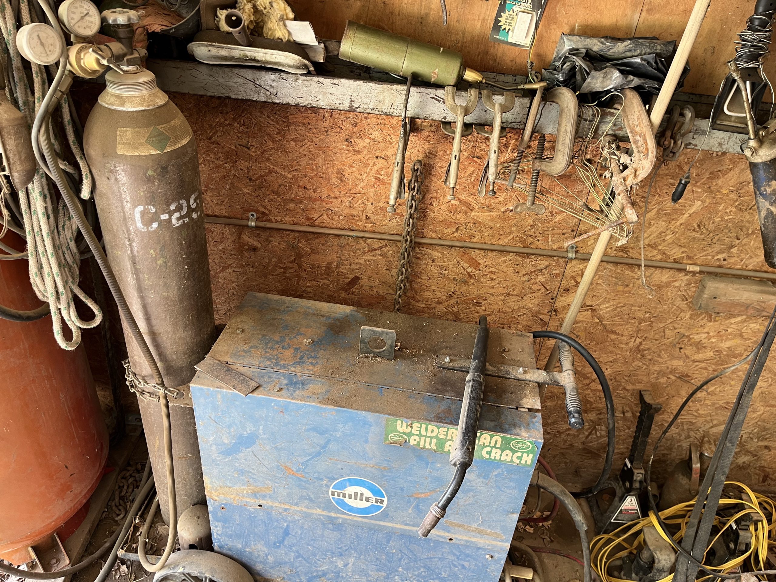Misc: Lincoln electric 10,000 plus welder/Kohler engine; Miller Syncrowave 200 welder; cutting torch/tanks; livestock gates and panels; lumber; saddles; Dayton drill press; Dewalt tools; Craftsman riding lawn mower; Werner ladder; air compressor; tie downs/straps; deer stand; hunting and fishing equipment; boat/trailer; trolling motor; wood flooring; tools; bucket mount bale fork attachment; tree shredder; Milwaukee portable band saw; vise; canning equipment; household; toys; desks; dressers; only partial listing, many tools.