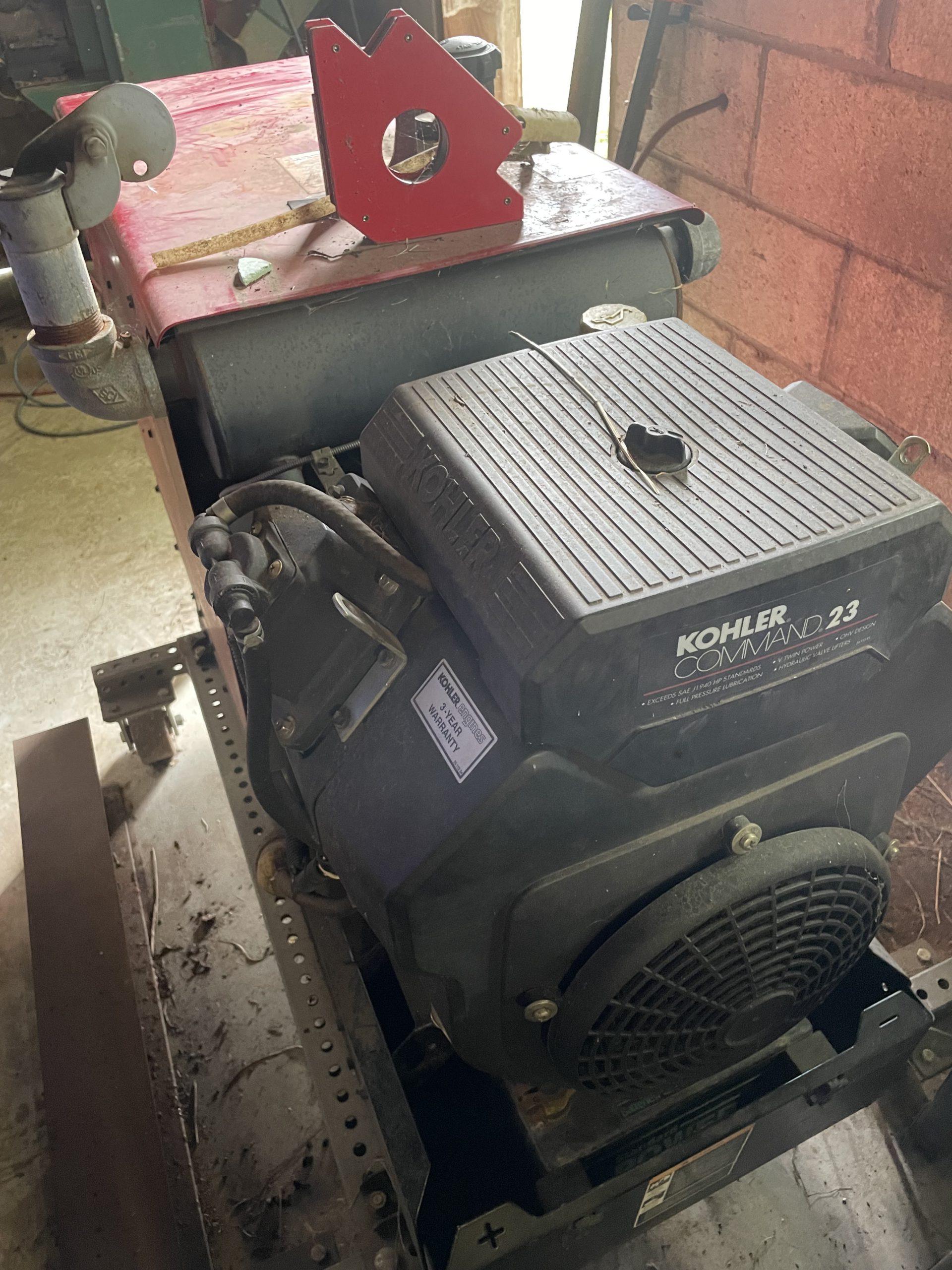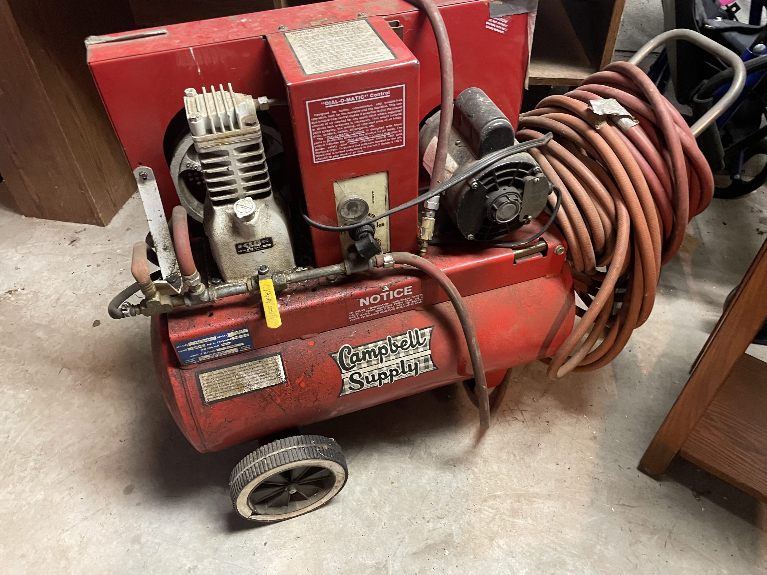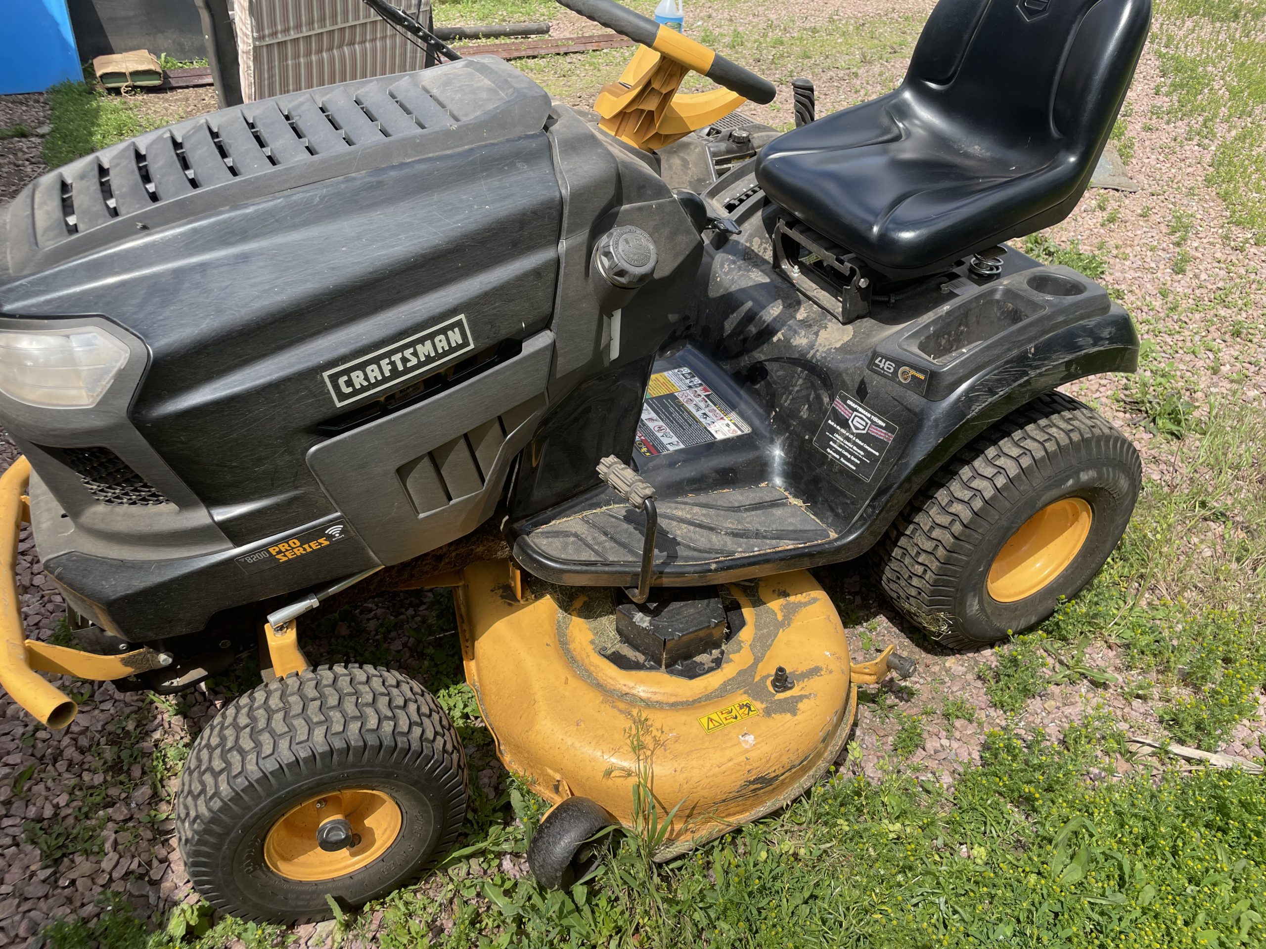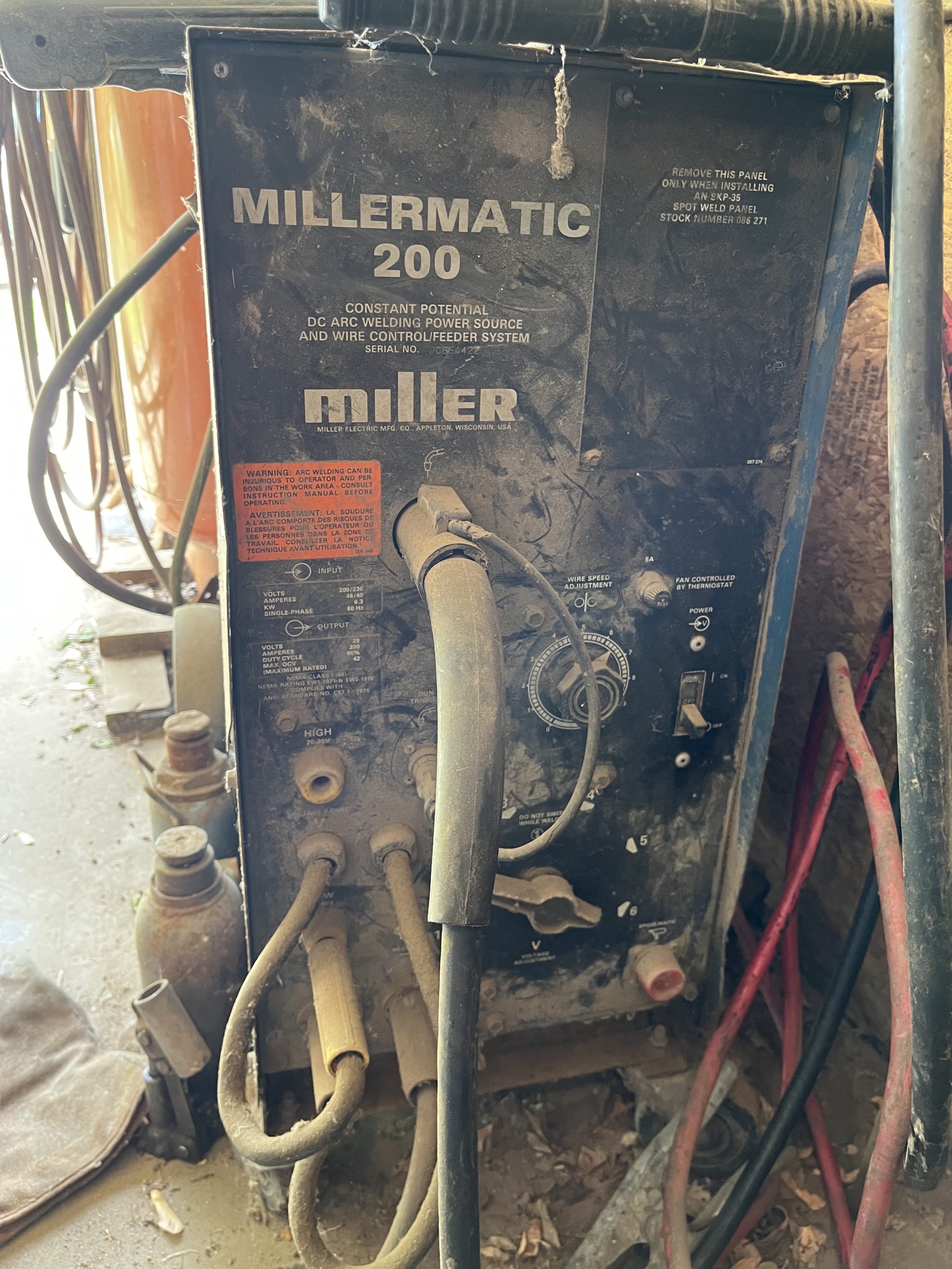 Misc: Lincoln electric 10,000 plus welder/Kohler engine; Miller Syncrowave 200 welder; cutting torch/tanks; livestock gates and panels; lumber; saddles; Dayton drill press; Dewalt tools; Craftsman riding lawn mower; Werner ladder; air compressor; tie downs/straps; deer stand; hunting and fishing equipment; boat/trailer; trolling motor; wood flooring; tools; bucket mount bale fork attachment; tree shredder; Milwaukee portable band saw; vise; canning equipment; household; toys; desks; dressers; only partial listing, many tools.